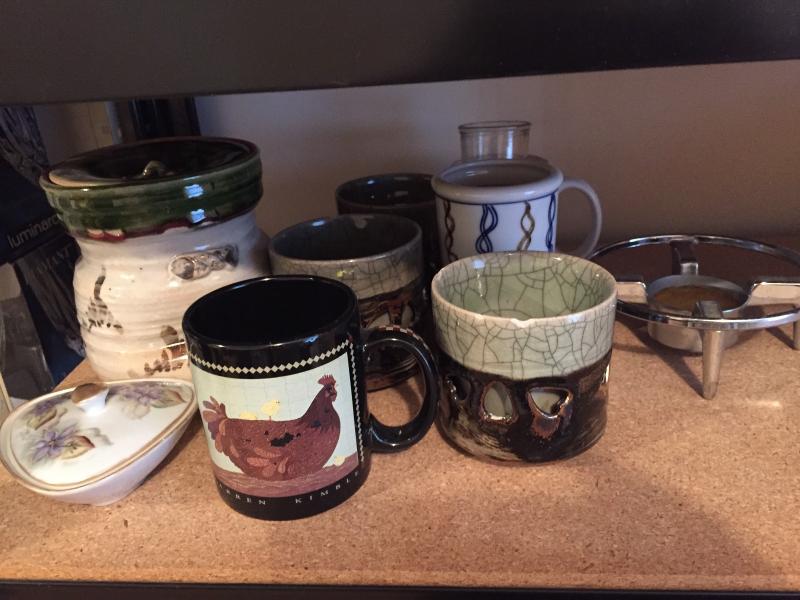Lot inlcudes various wine glasses, mugs, tumblers, cake plate, etc.