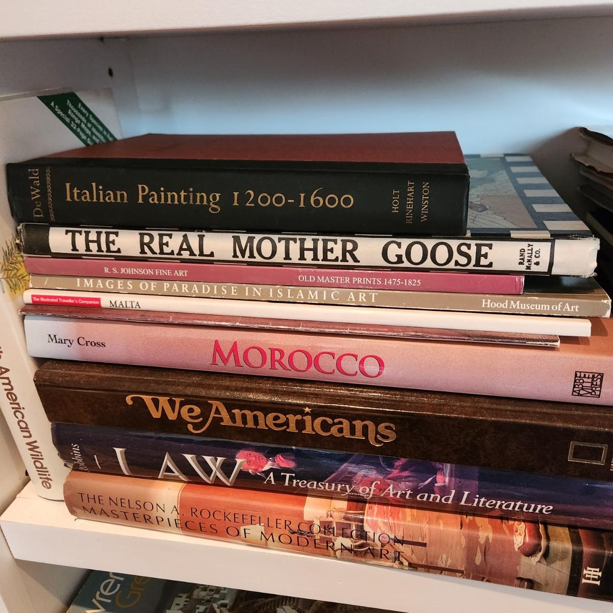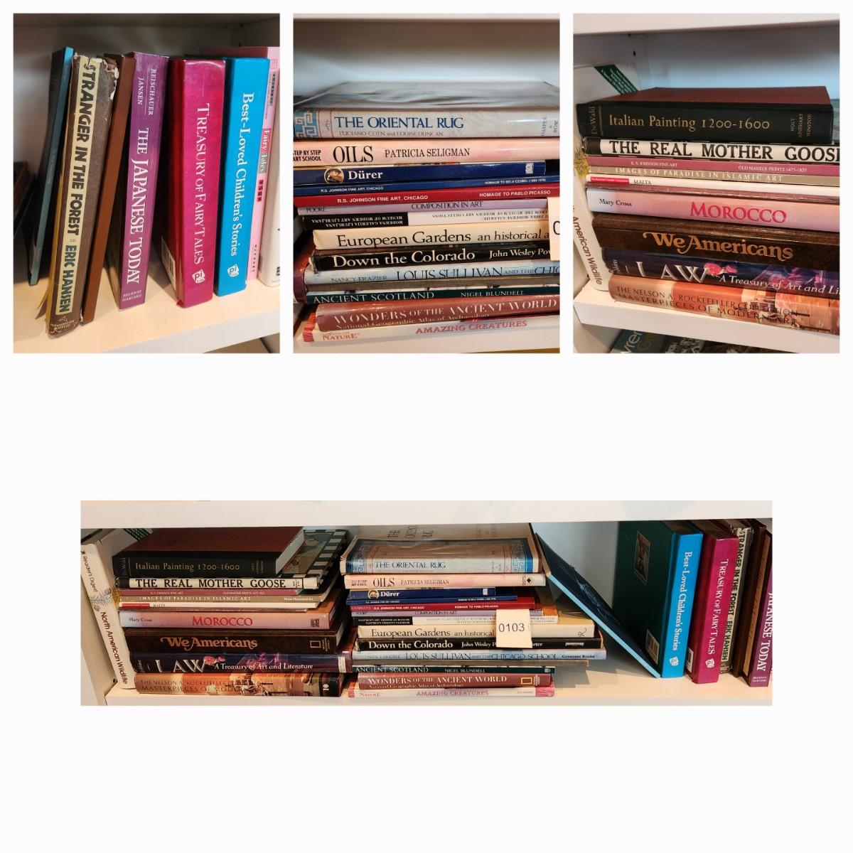 Shelf of Books Art ,Oriental Rug , Fairy Tails Children's Stories