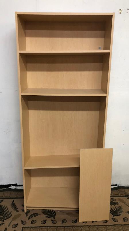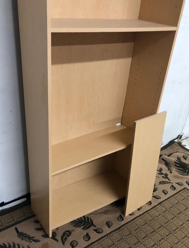 Offered as is this wooden shelf unit..missing a few parts...support hardware...approx 3 x 12 x 72"h...as shown..needs light refurbishment...