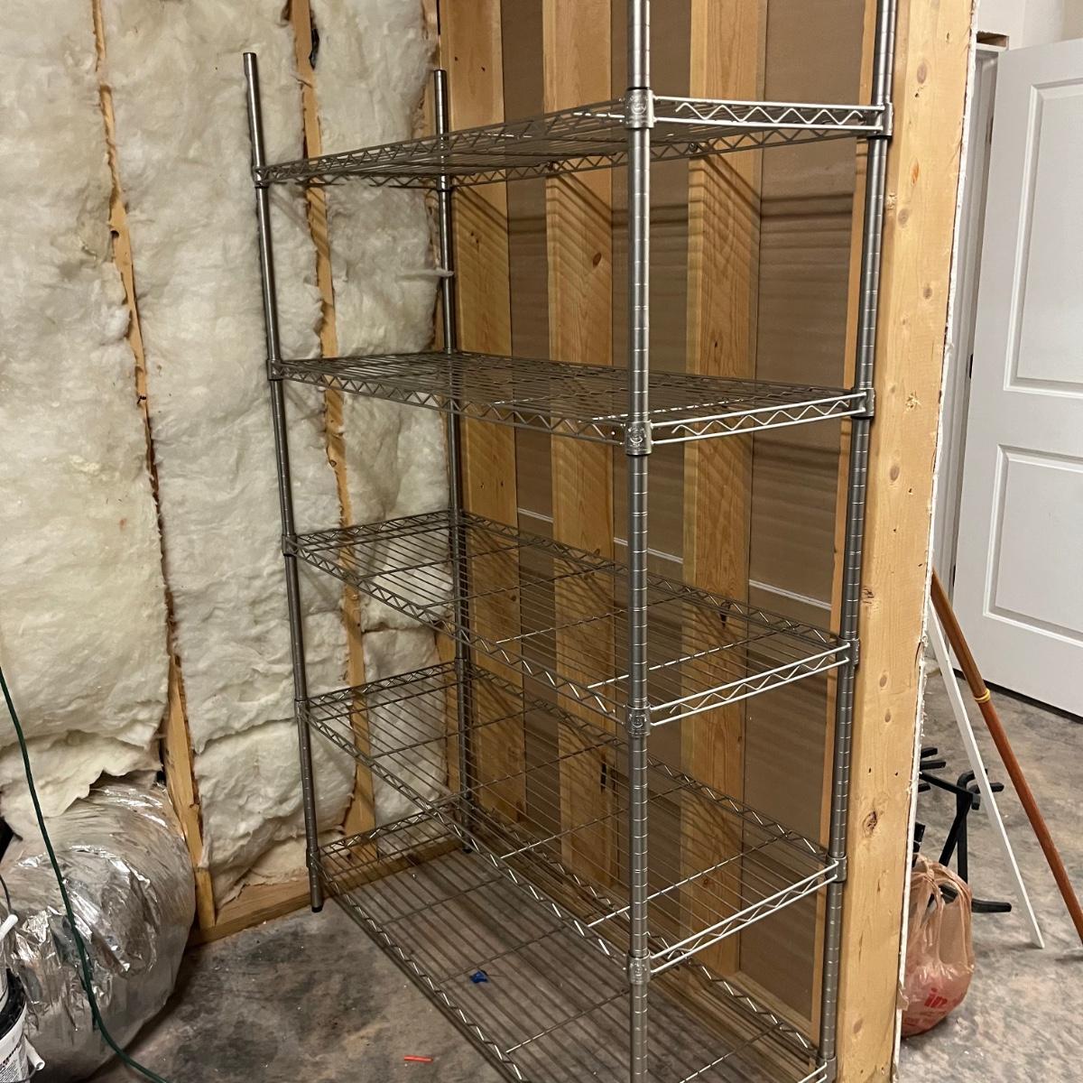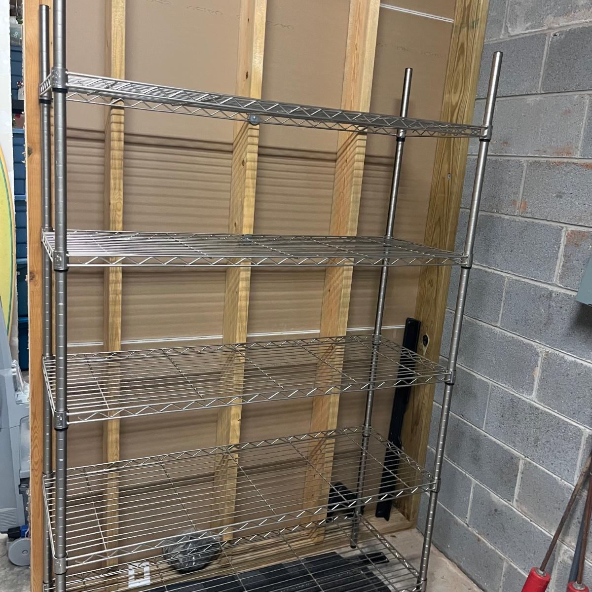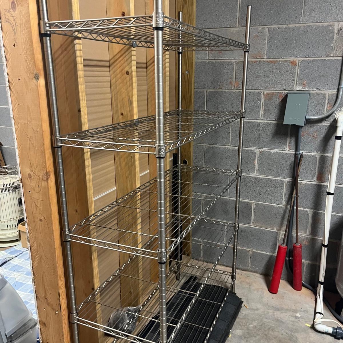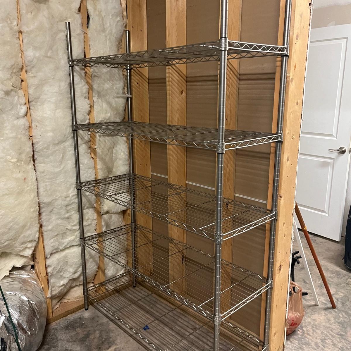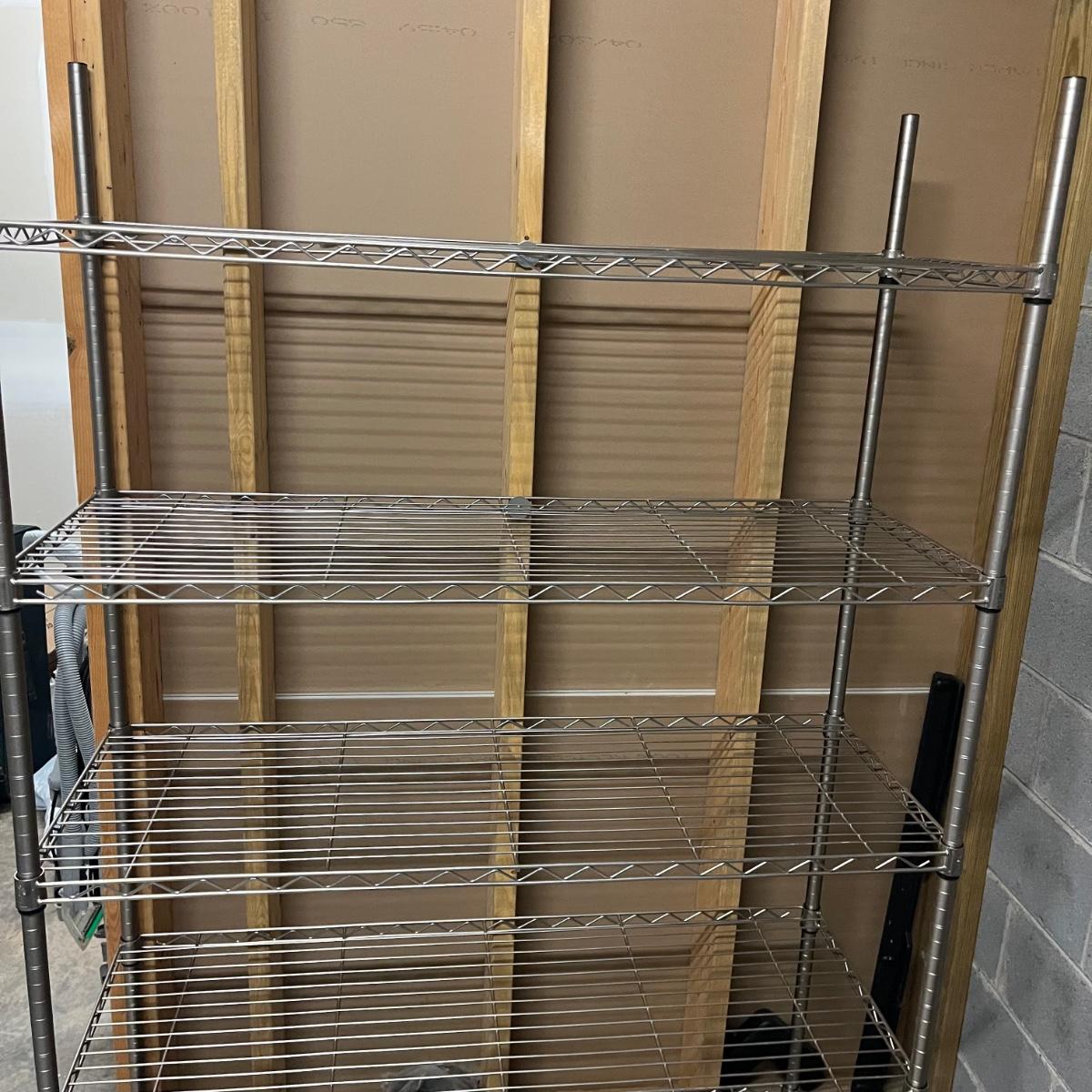 Lot includes two metal wire Shelving units by ShelfTech Protrend. Both units have five shelves and measure 18” x 48” x 72”.