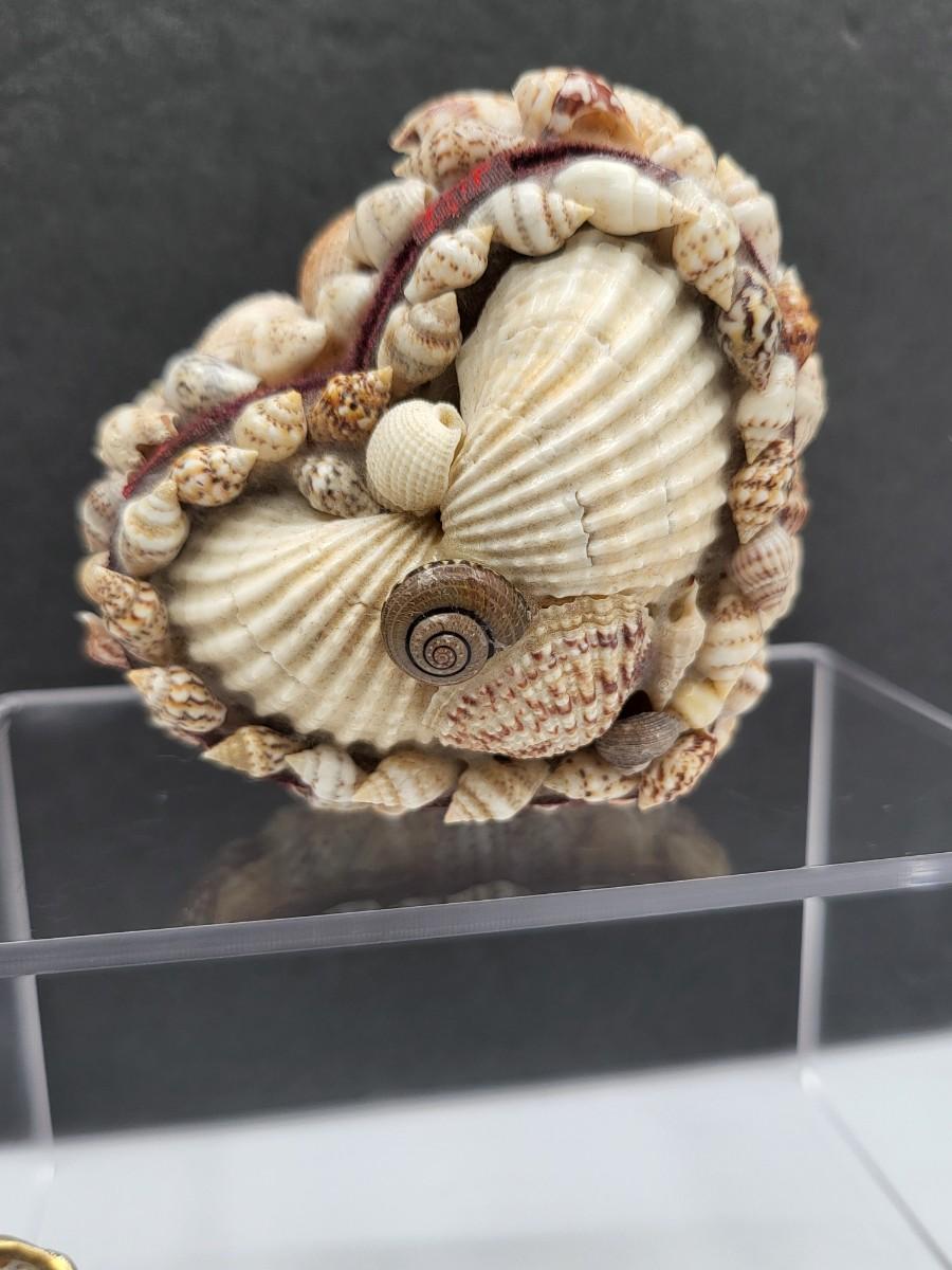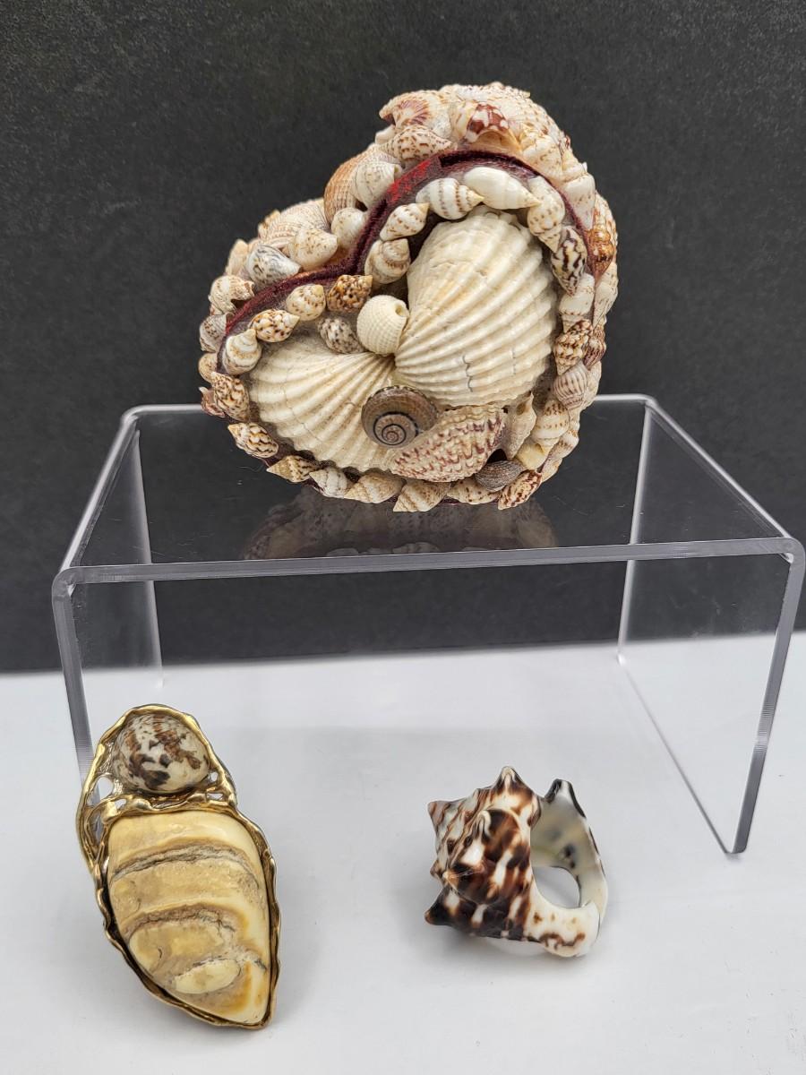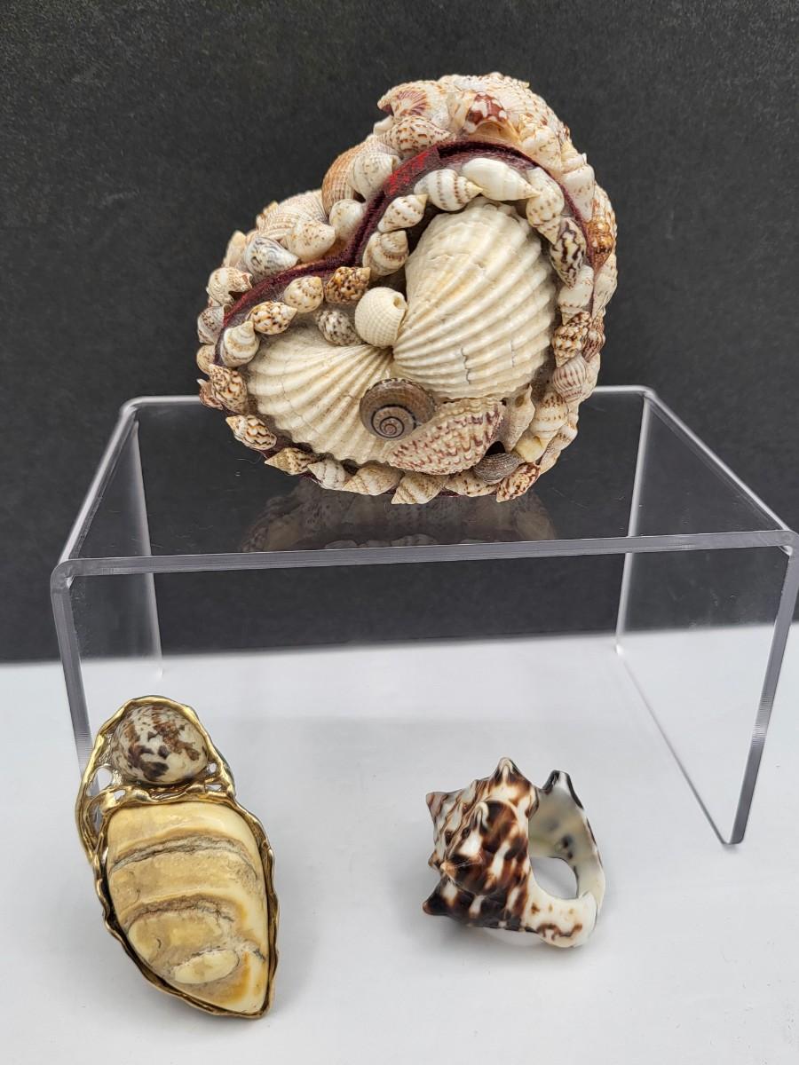 Shell Encrusted Heart Box & Two Large Shell Rings