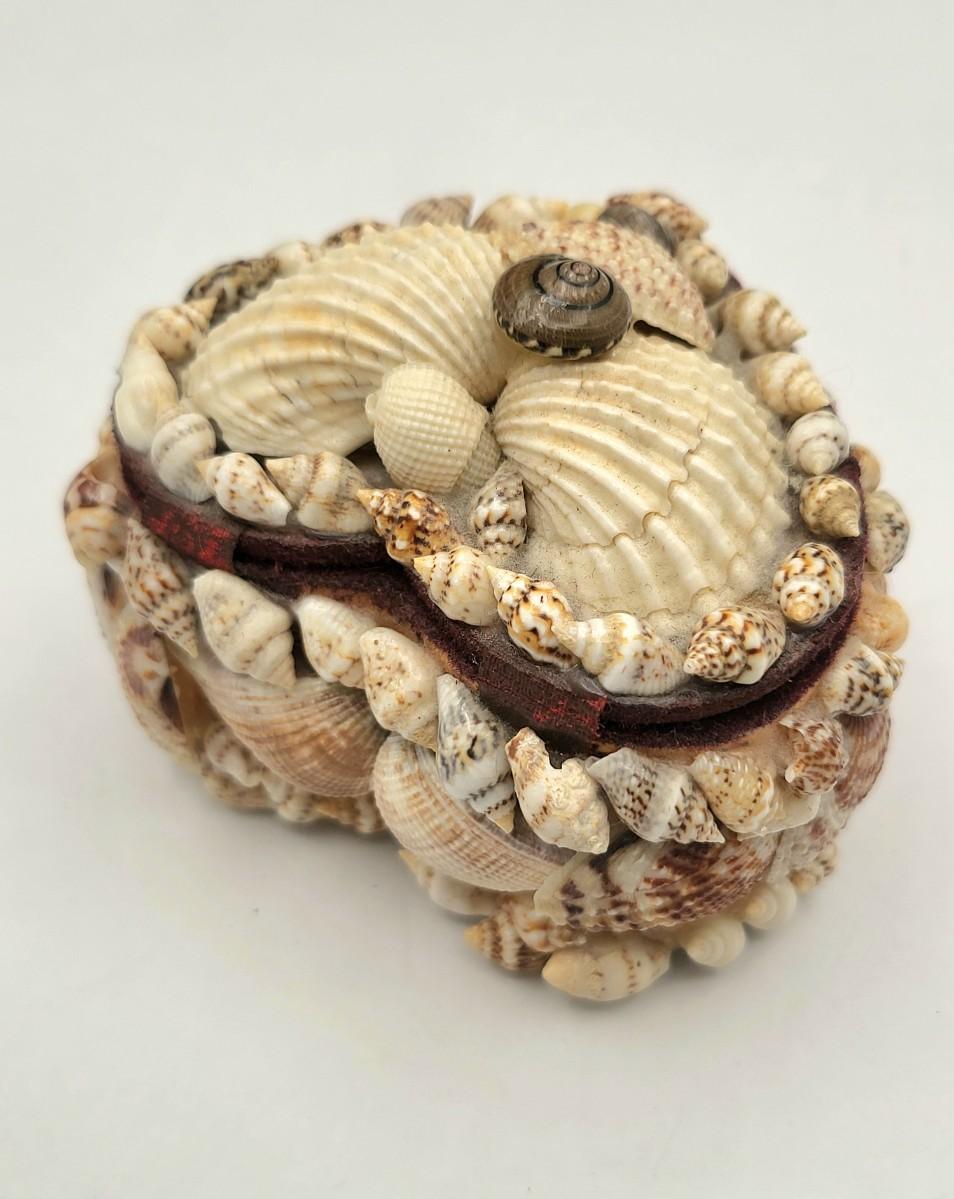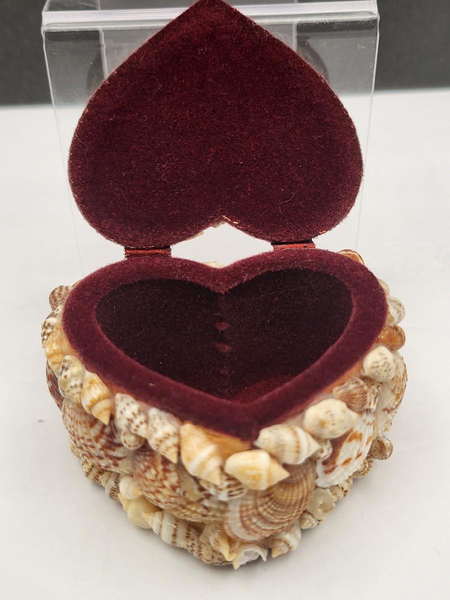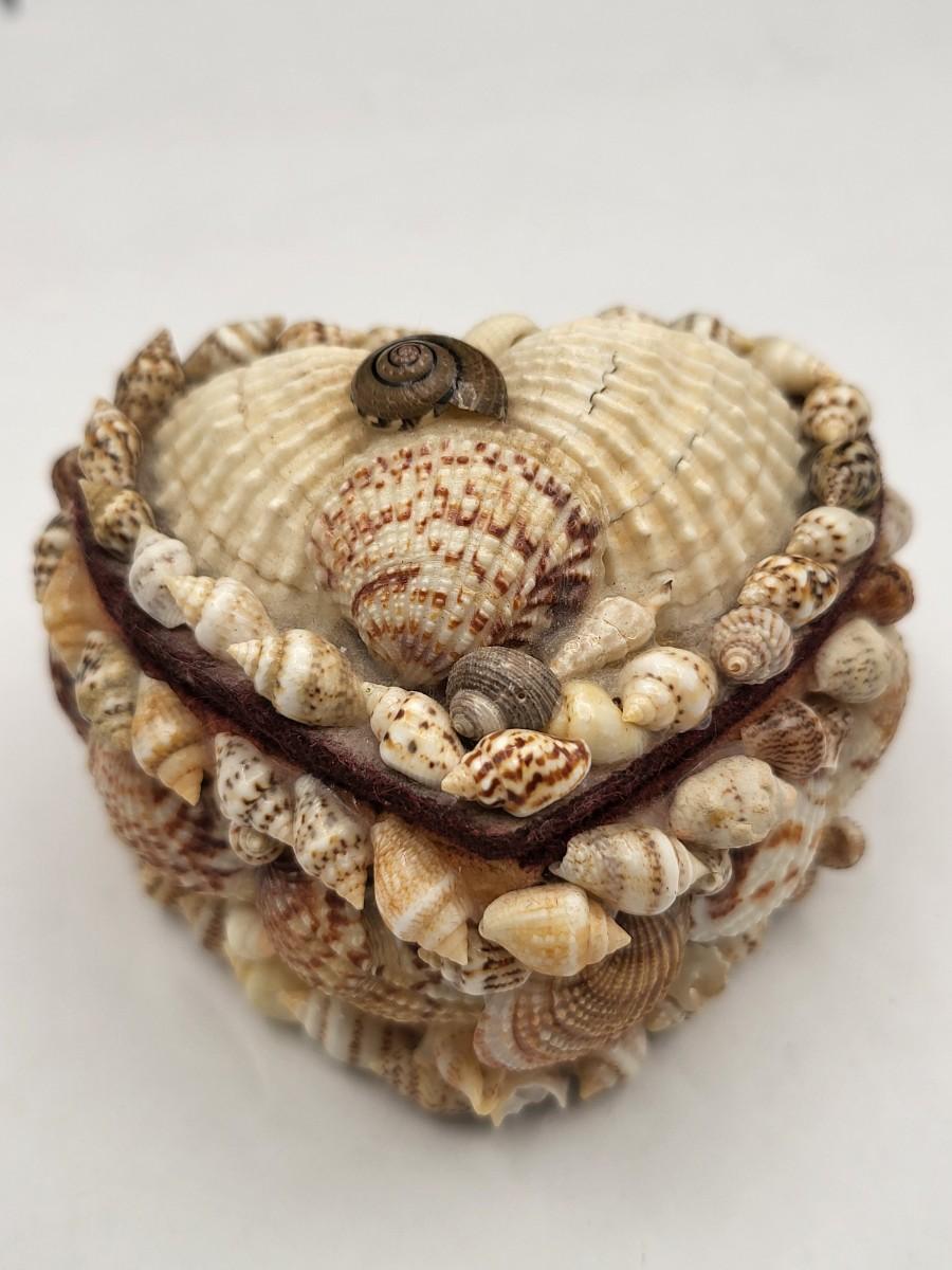 Shell Encrusted Heart Box & Two Large Shell Rings