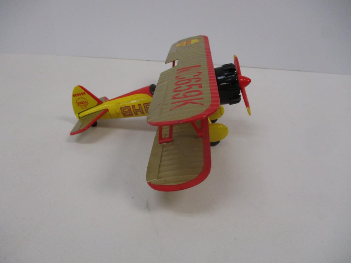 Shell Gas & Oil 1930's Modified Stearman Biplane Airplane Die Cast No Box