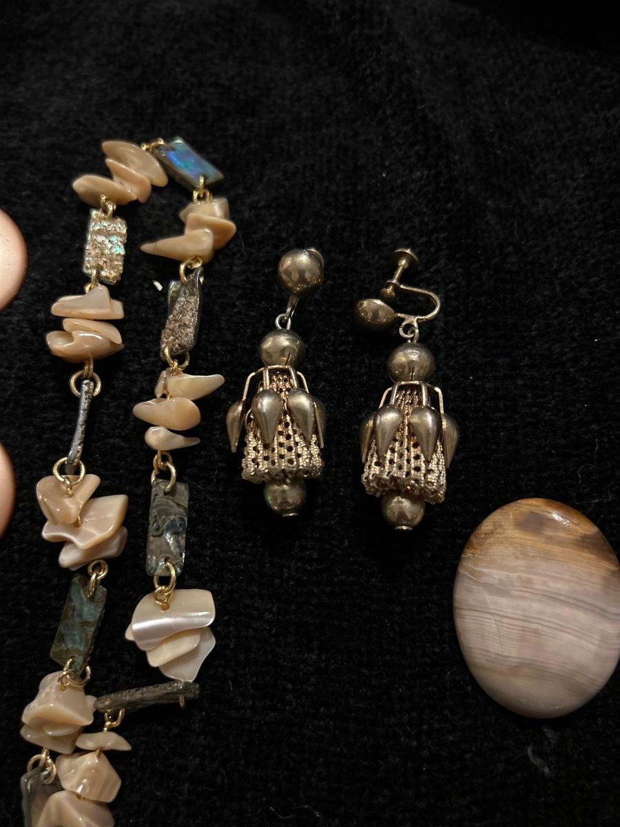 The round earrings & pair next to the brooch are clip ons, other 2 are pierced