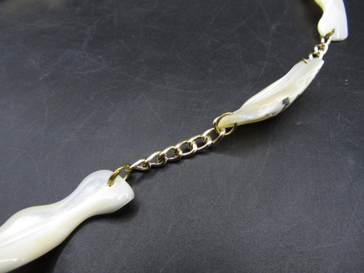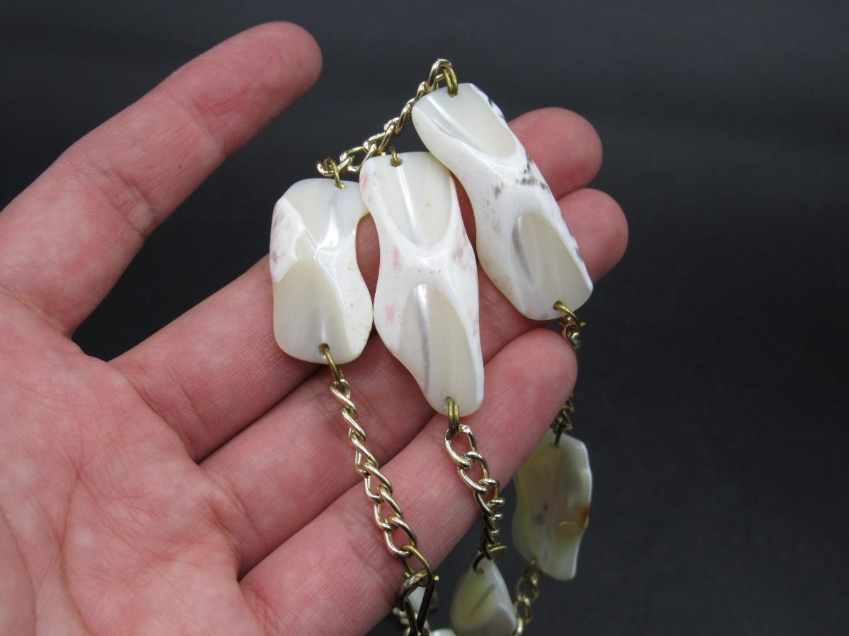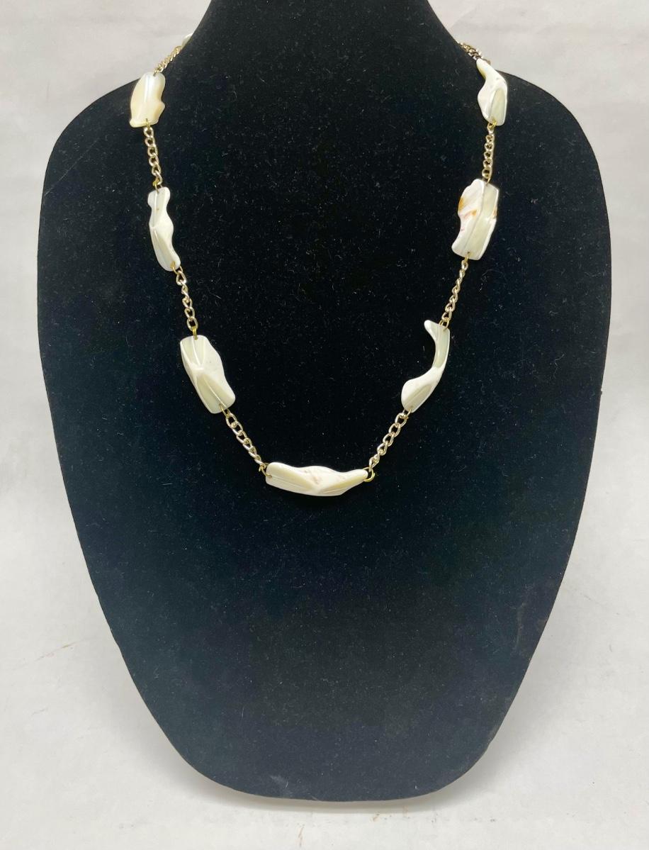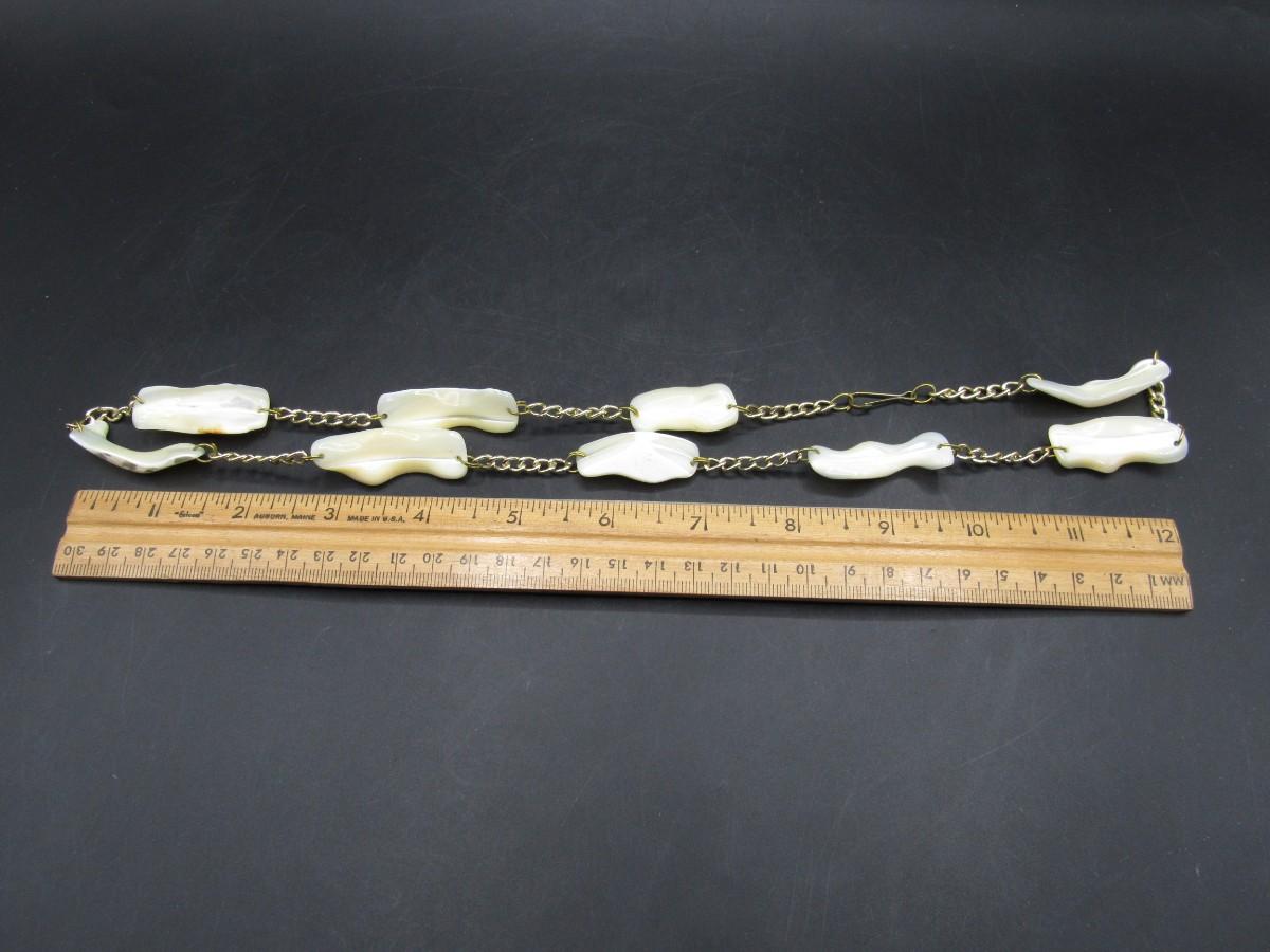Vintage Gold Tone Chain and Polished Shell Necklace Costume Jewelry