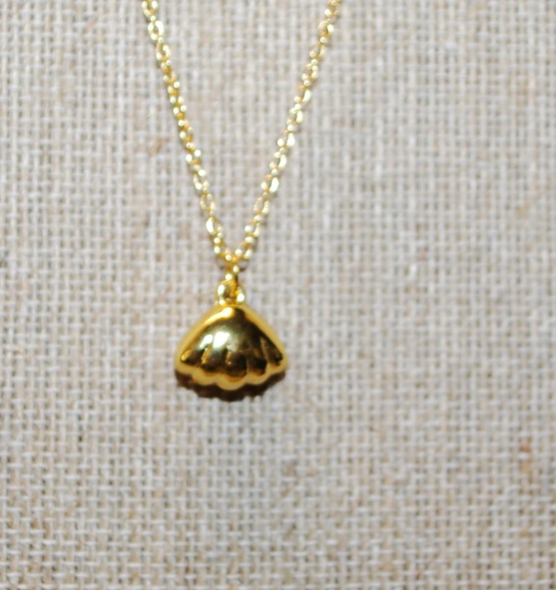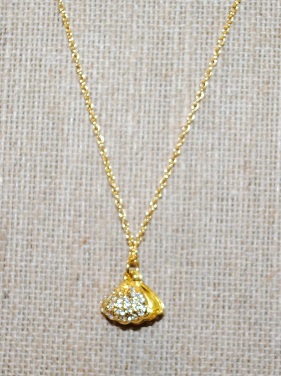 "Shell & Pearl" PENDANT (¼" x ¼") on a Gold Tone Necklace Chain Marked .925 18" L