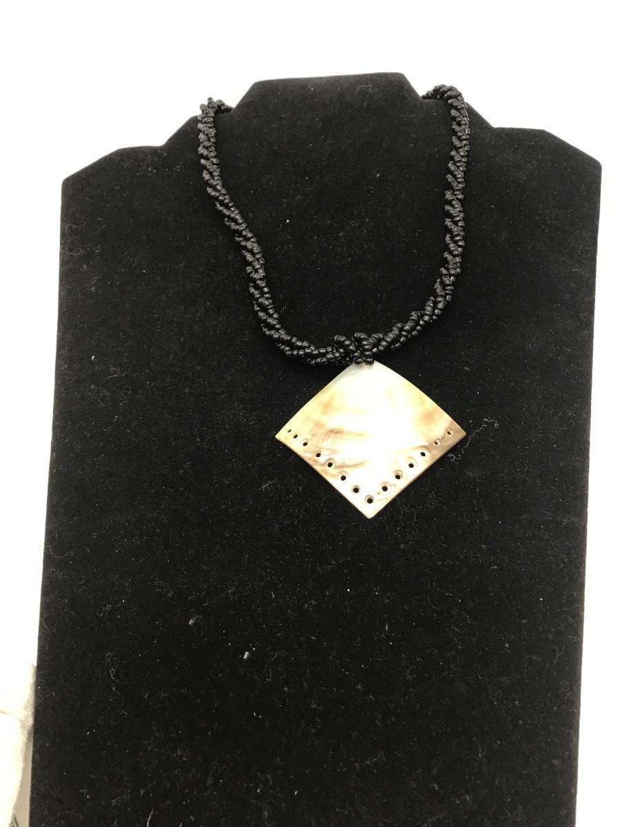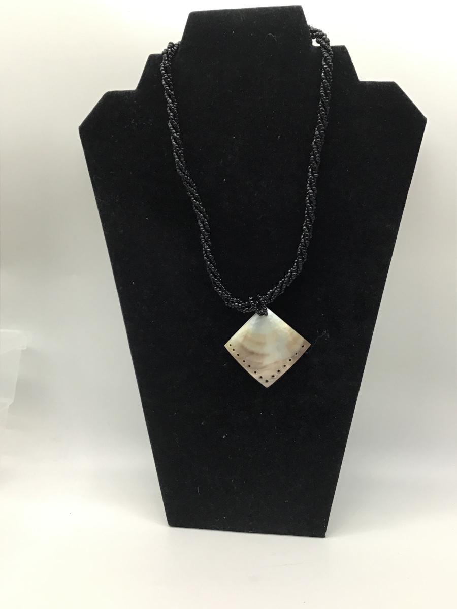 Shell Pendant black beaded necklace