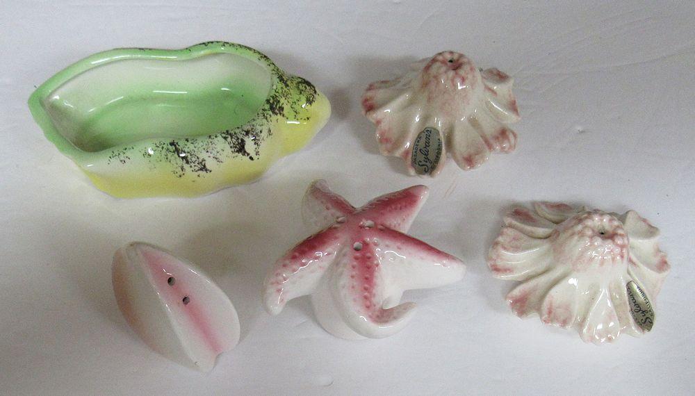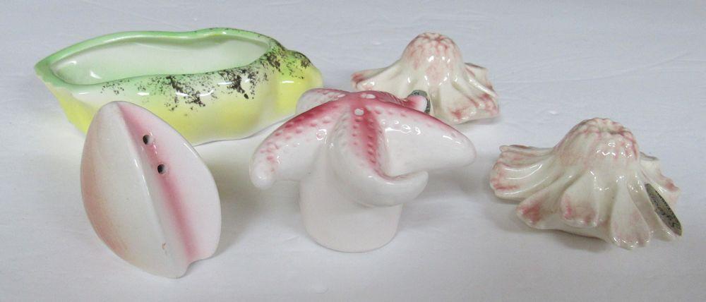 Shell Shaped Salt and Pepper and Sylvan Pottery of California Flowers Salt and Pepper