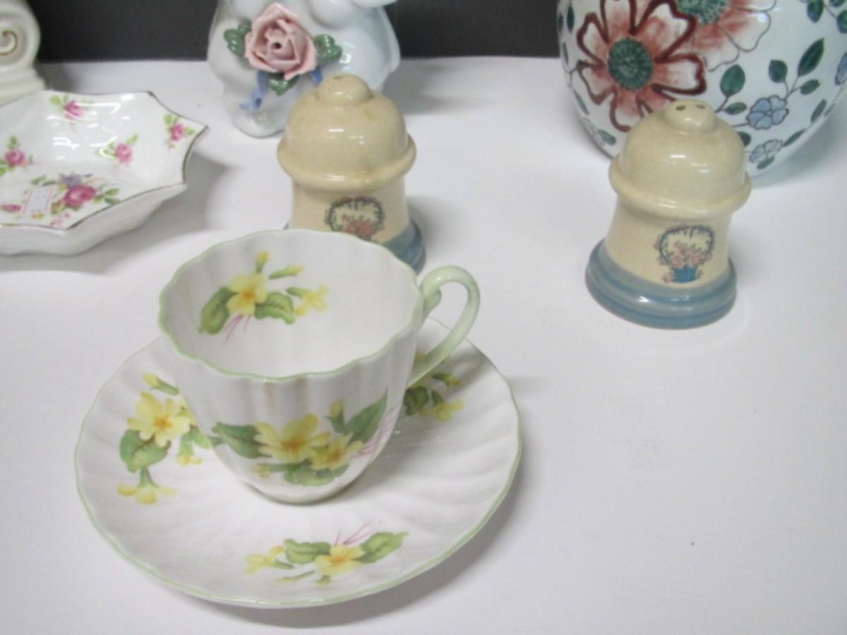 Shelley Primrose Yellow Flowers Pattern Green Accent 13430 Cup Saucer PS Limited Edition 1998 Clock Royal Standard Trinket Dish