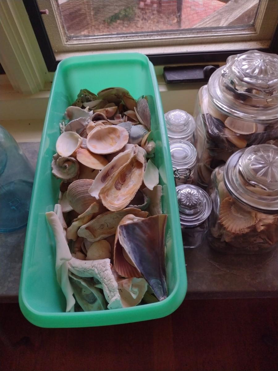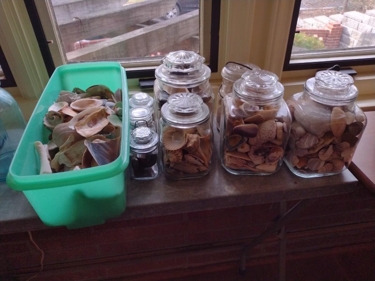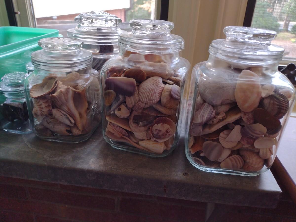 Collection of Lidded Glass Storage Jars with Shells