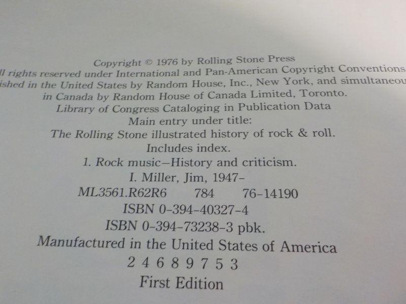 1st Edition of History of Rock and Roll by Rolling Stone Magazine 11 x 17 with 400 plus pictures of America's Great artists. These 11 x 17 photos can be framed . The binding not the greatest but all pictures and text in great shape