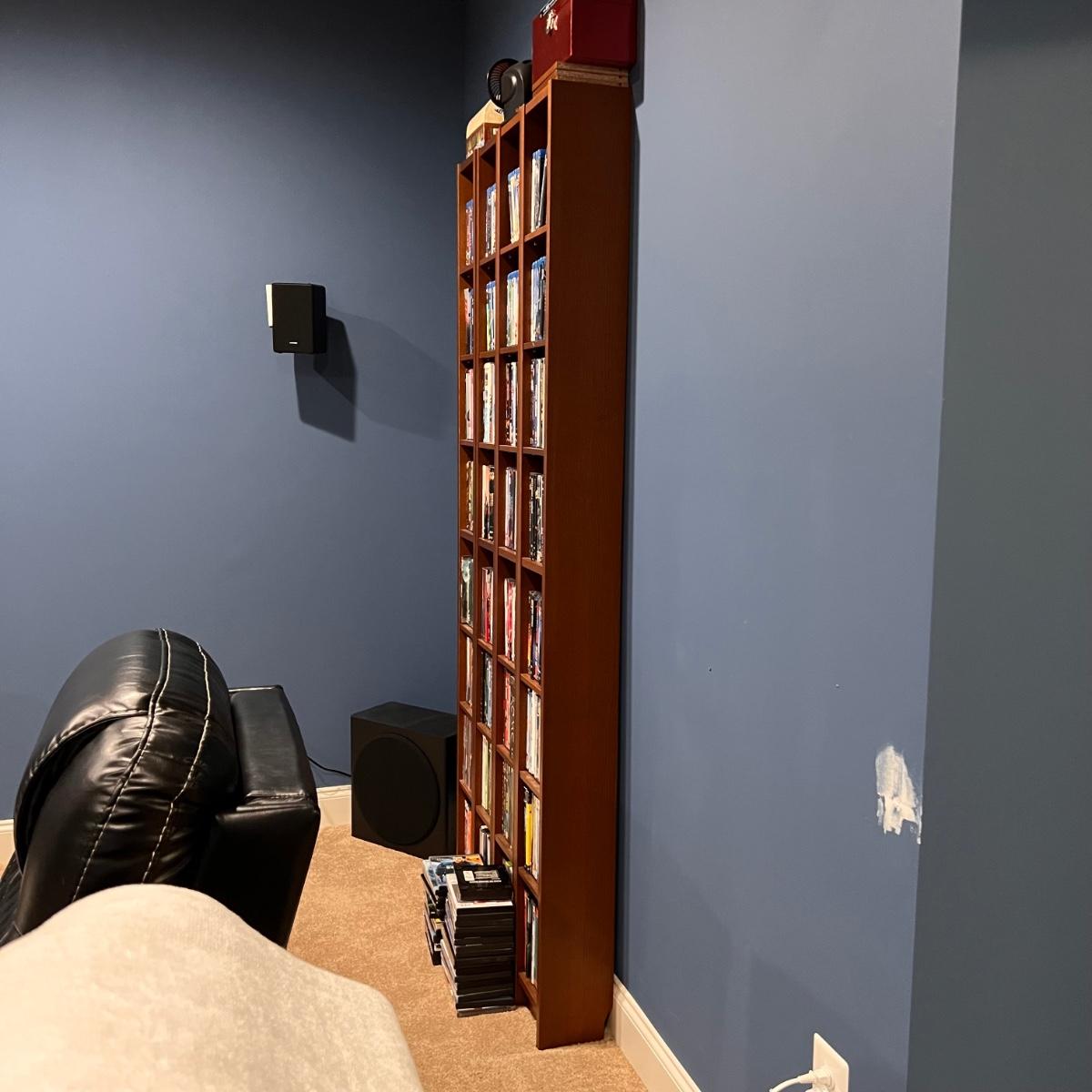 Shelves only. Comes with 2 more shelf inserts. You can customize how tall you want each shelf so it could be used for books, collectibles, etc., not just DVDs. In great condition. The DVDs and BlueRays are in lot 46. The other 2 shelves are in lot 82.