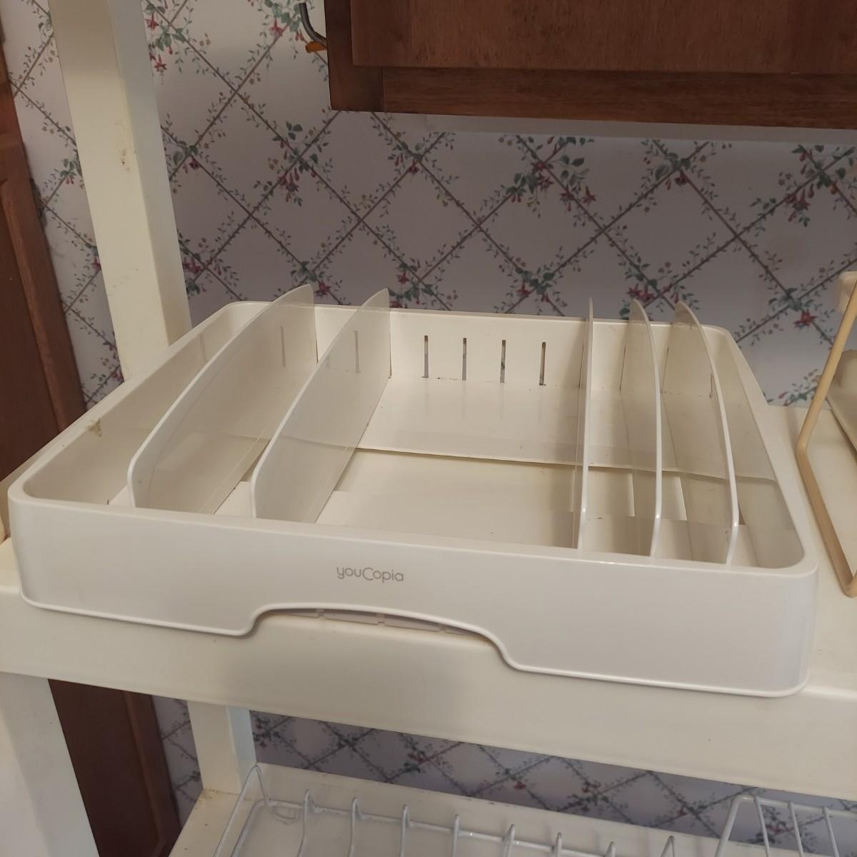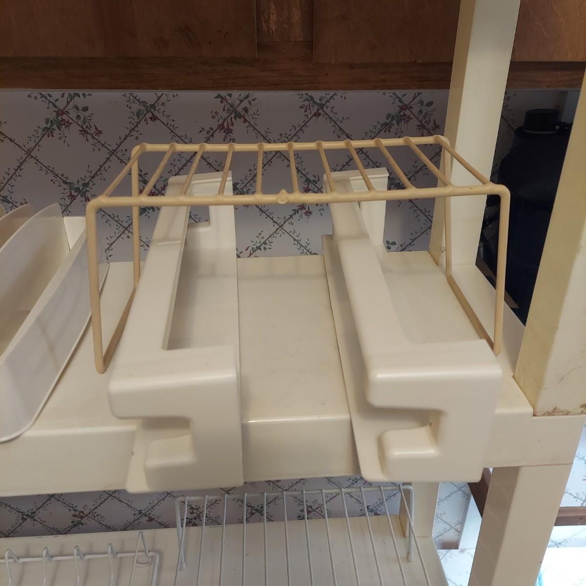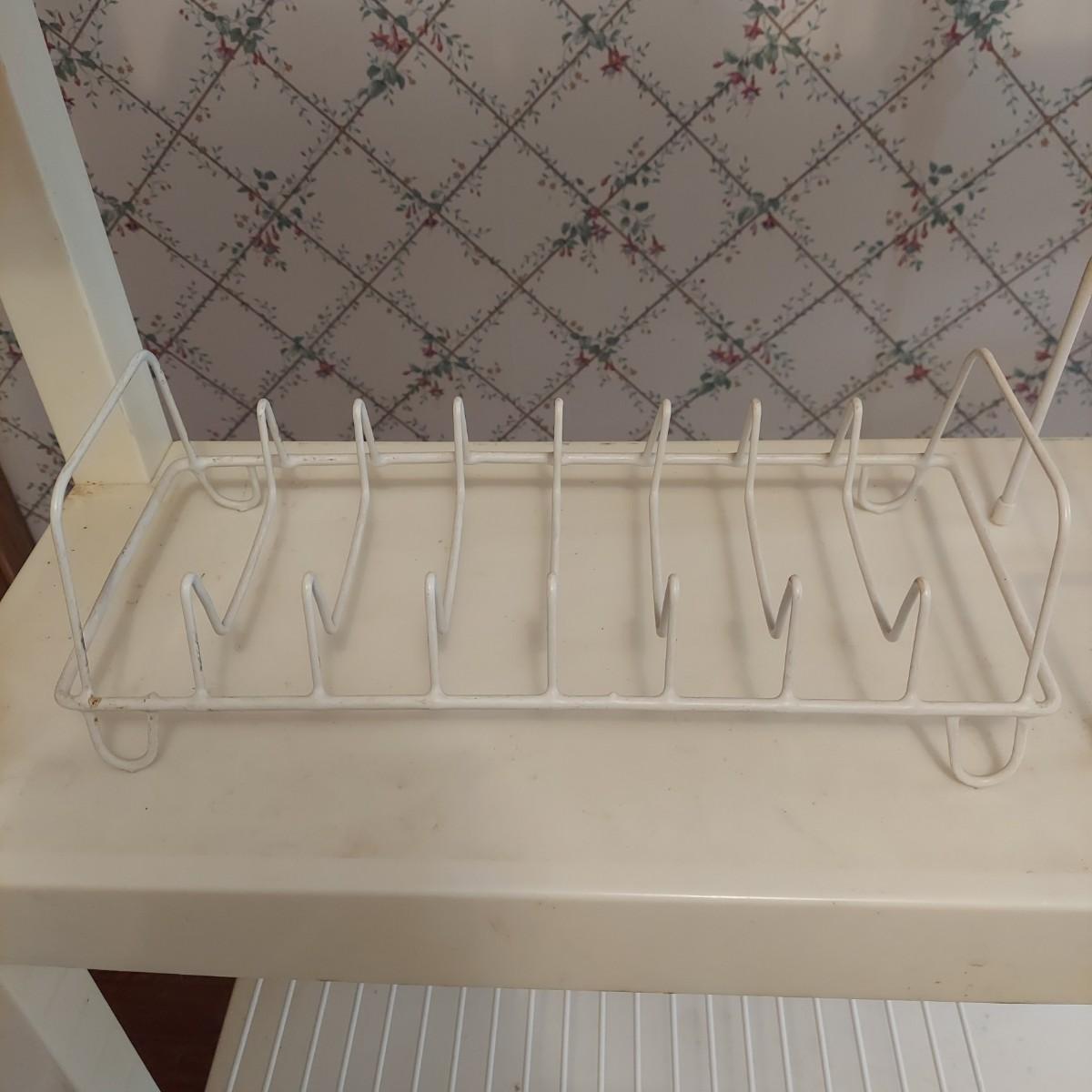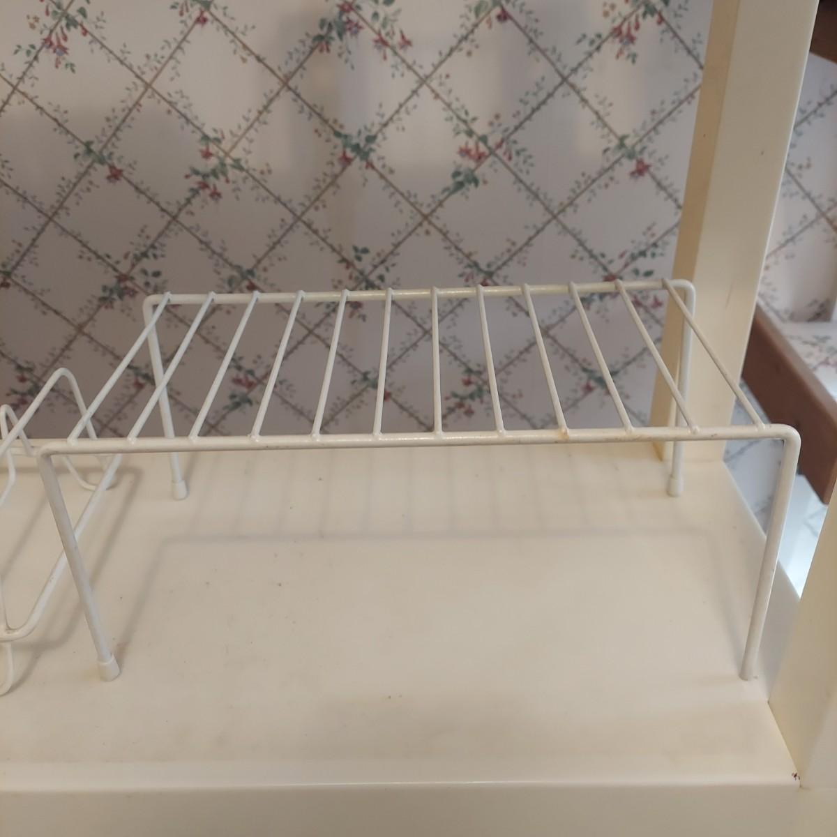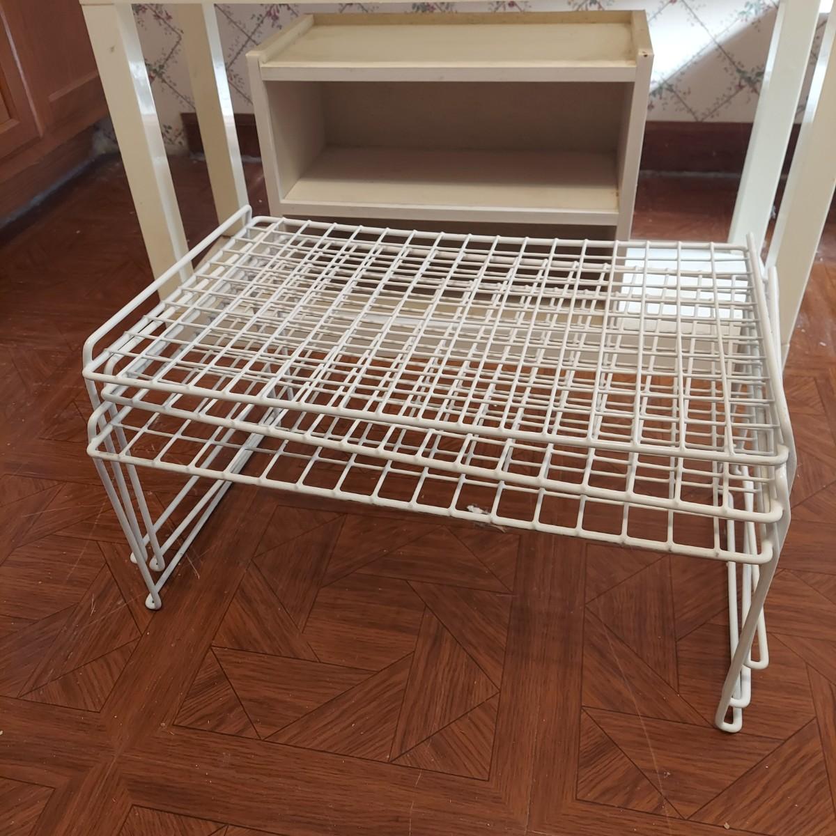 One set of plastic, pop together shelving. Plus several coated wire shelves for cabinet organization. The large shelf measures 30” x 10” x 66"H. Some surface debris. Items will need cleaned. Local Pickup Only