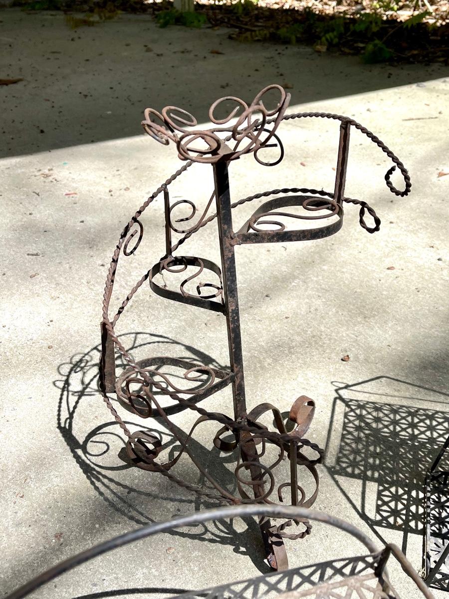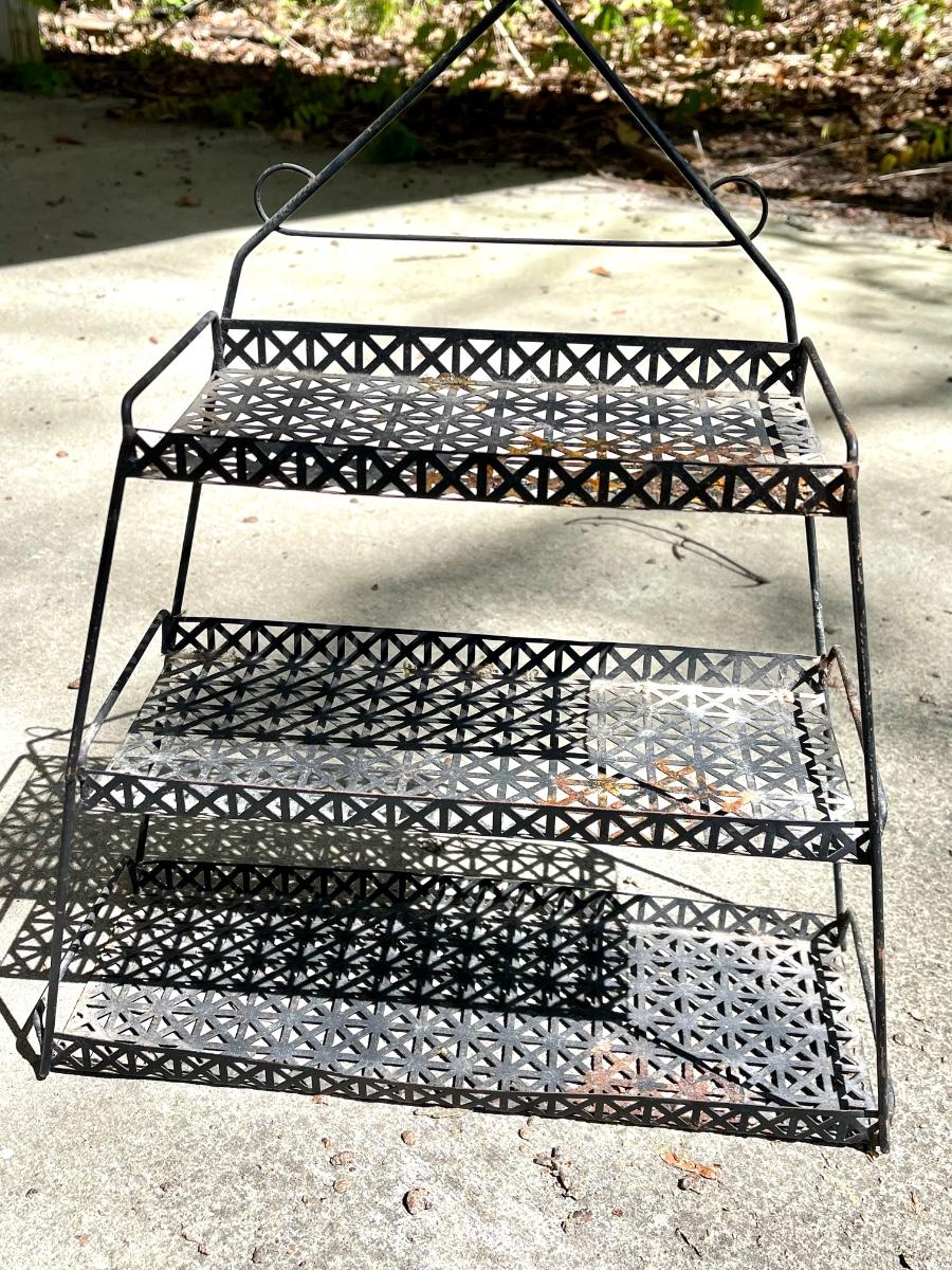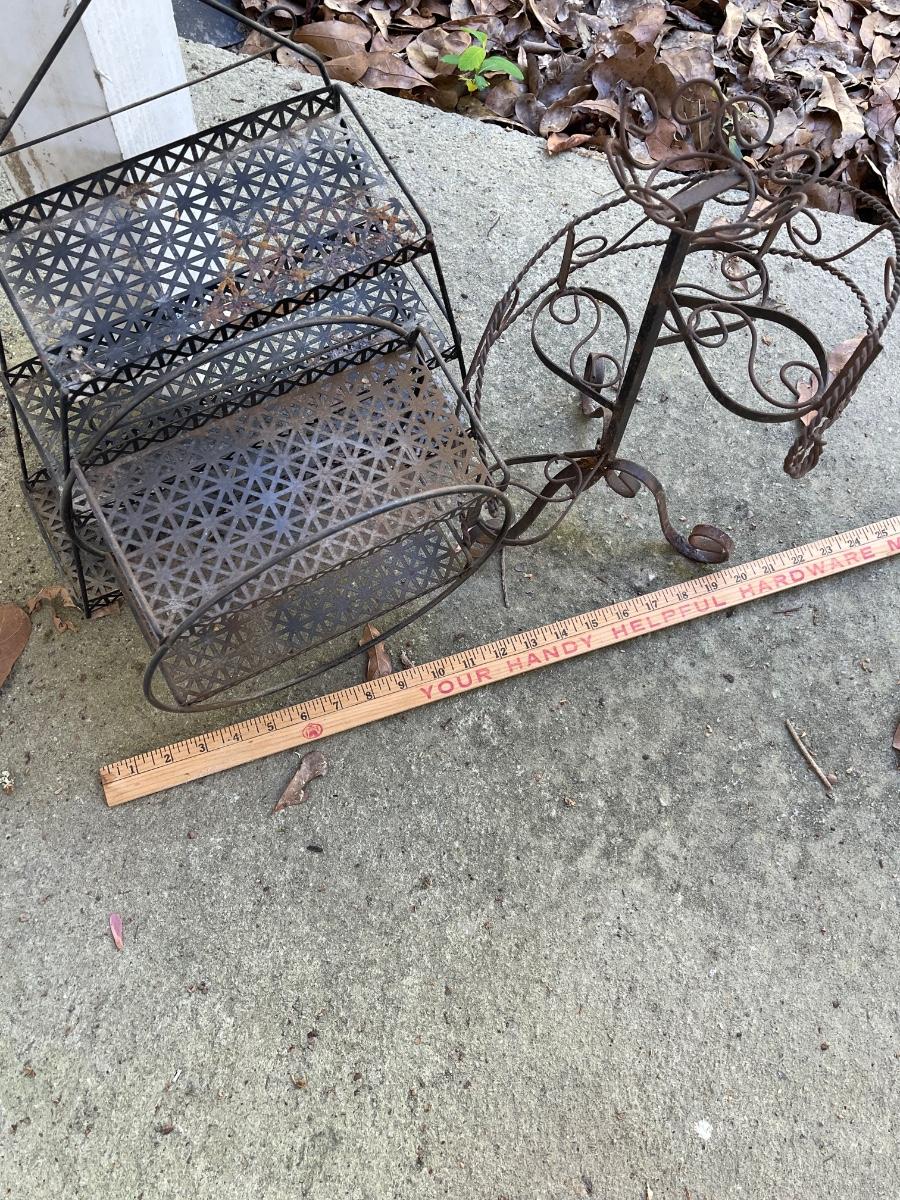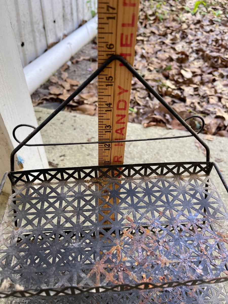 These are great little shelves for anywhere around the home. Two were wall shelves in the bathroom. One was in the den. I think it for small potted plants- succulents would be perfect in any of them. All the need is a wash and a coat of paint.