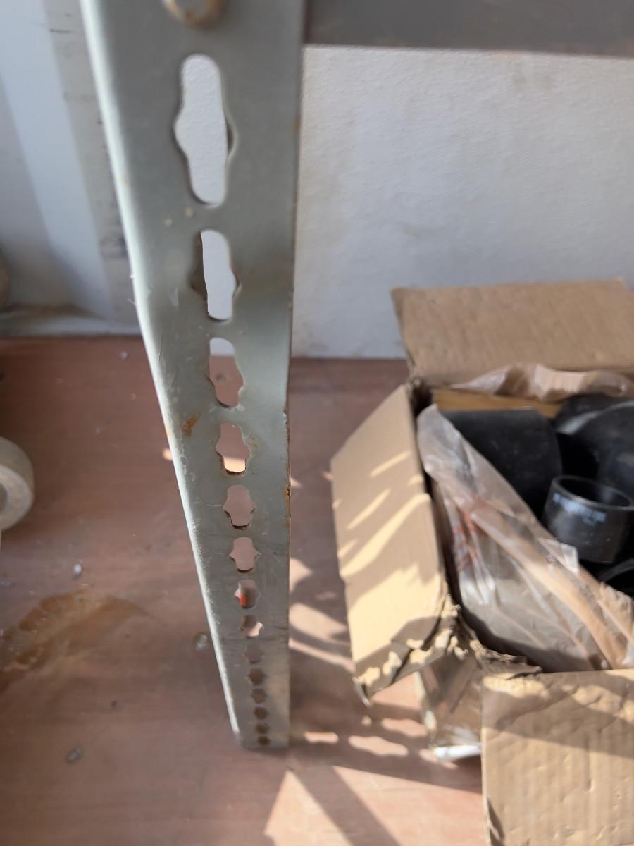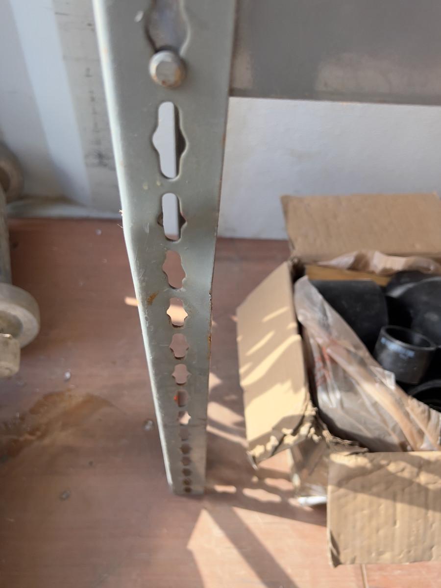 Measures 73 x 19 x 73 Used. Works Legs a little bent but works. Has Wood Shelves You will have to wait until the last day to collect it. Heavier - Bring Help
