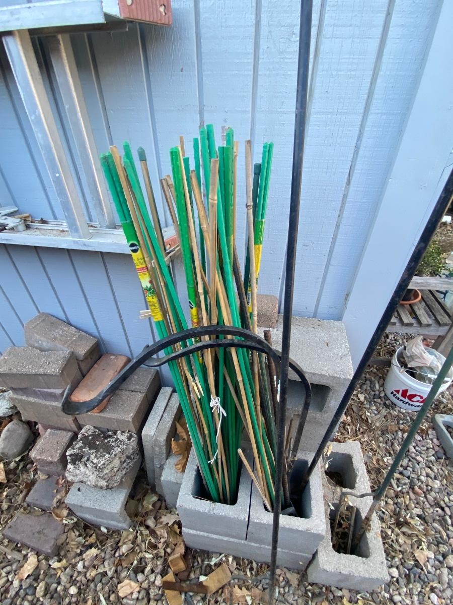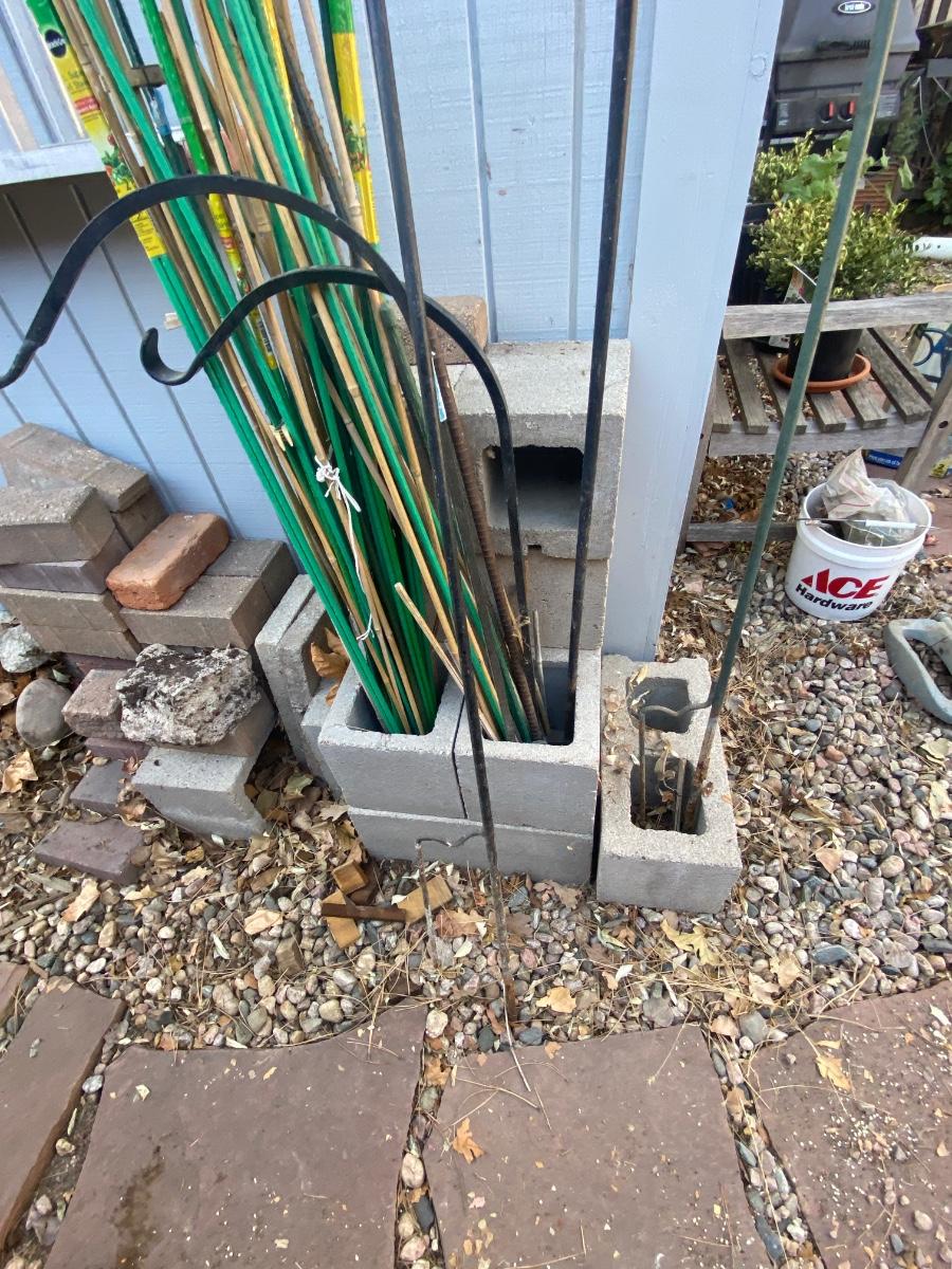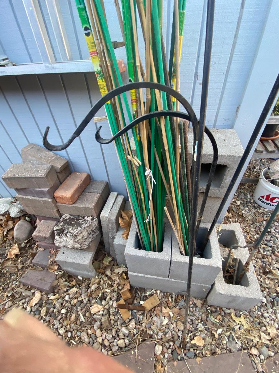 SHEPHERD HOOKS, CINDER BLOCKS, BRICKS AND PLANT STAKES