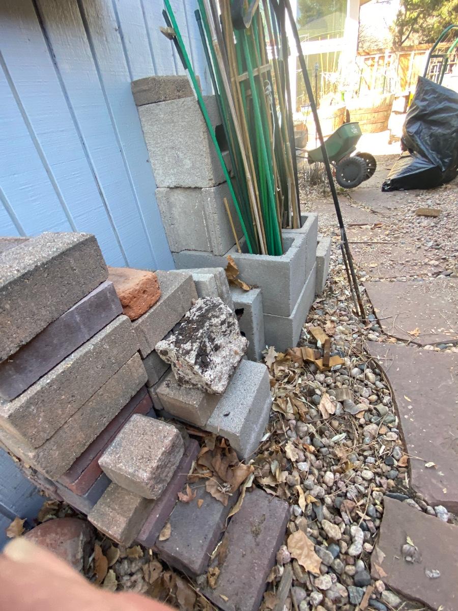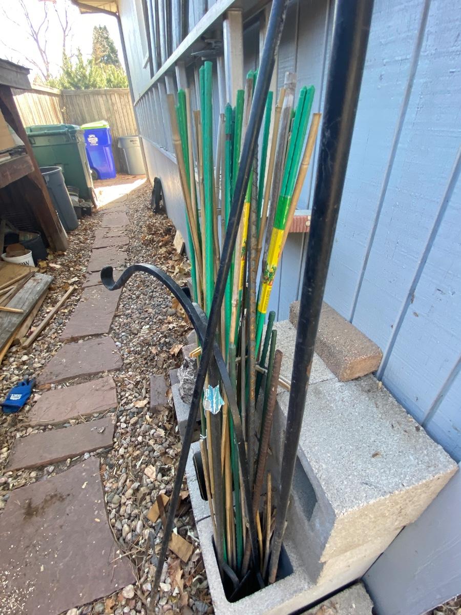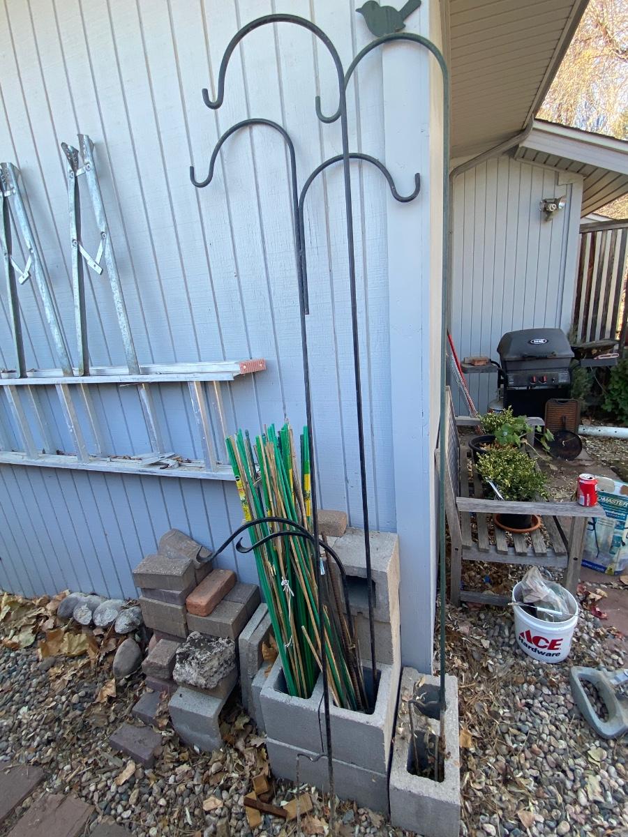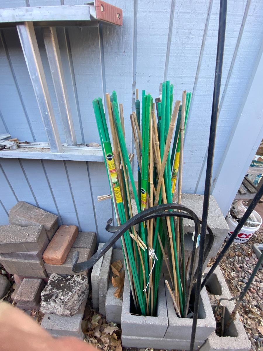 SHEPHERD HOOKS, CINDER BLOCKS, BRICKS AND PLANT STAKES