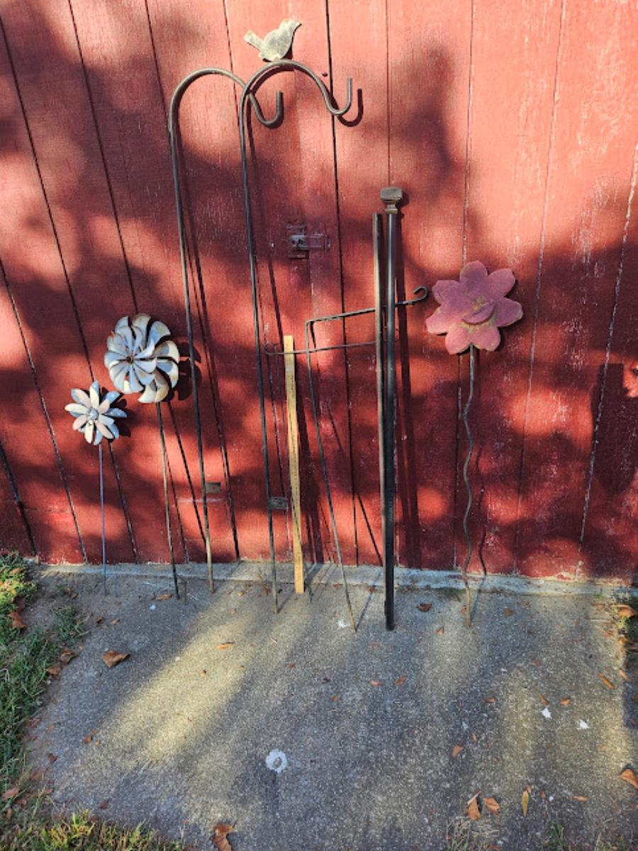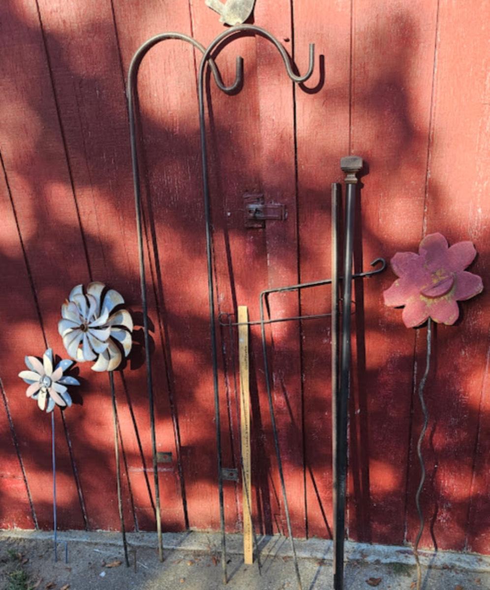Shepherd's hook lot, 2 large hooks over 5' tall, 6 pieces total