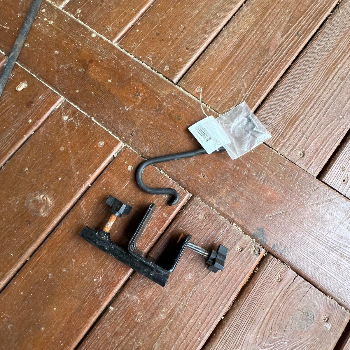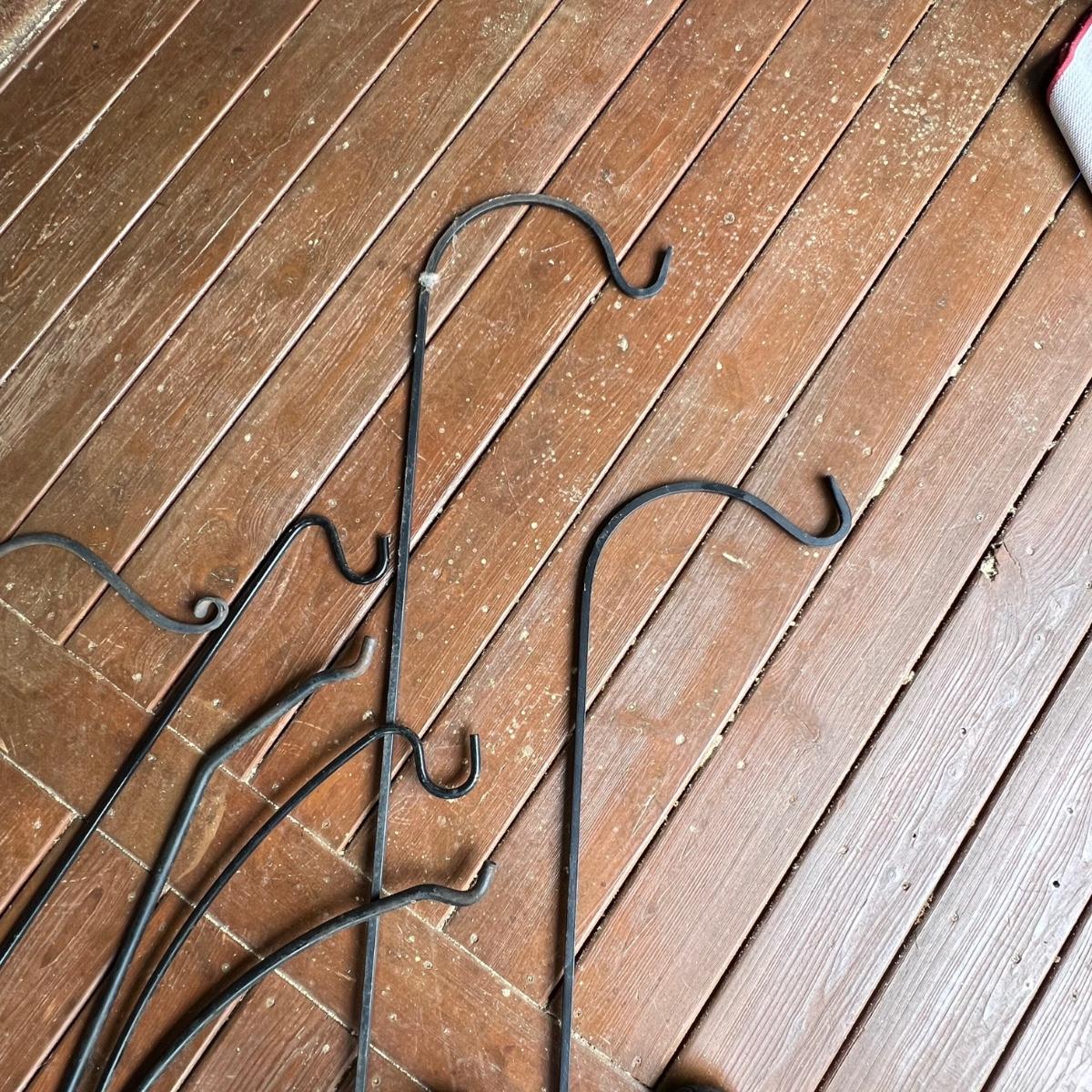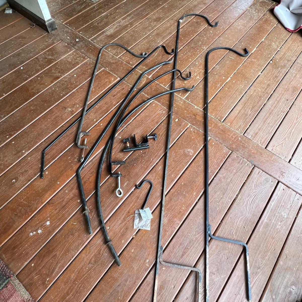 A nice assortment of hooks for bird feeders and hanging plants that includes tall ones (84” H) that stake into the ground plus an assortment that attach to your deck rails. Ten items total.