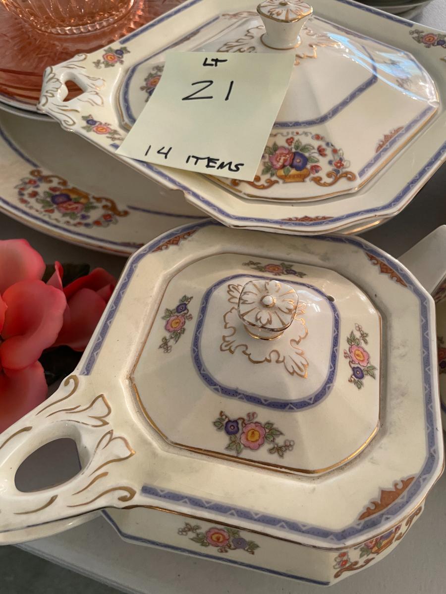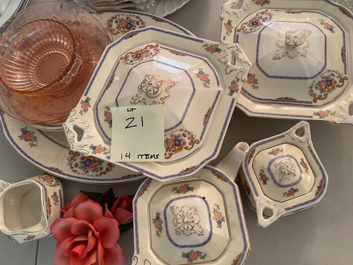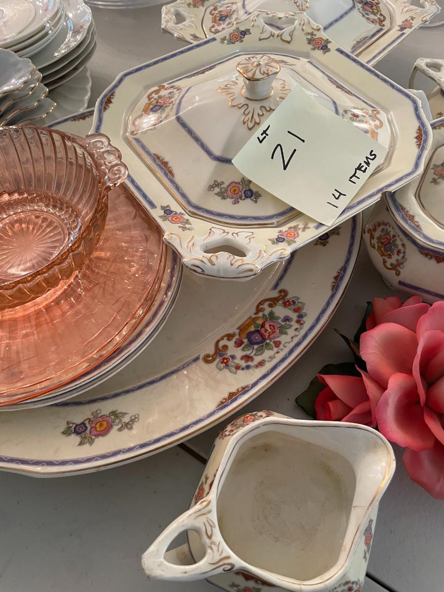 Sheraton Ivory Tea Set & Serving pieces along with Depression glass plus.