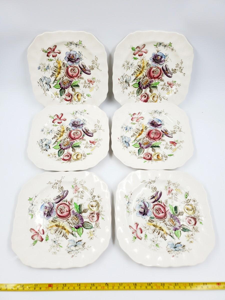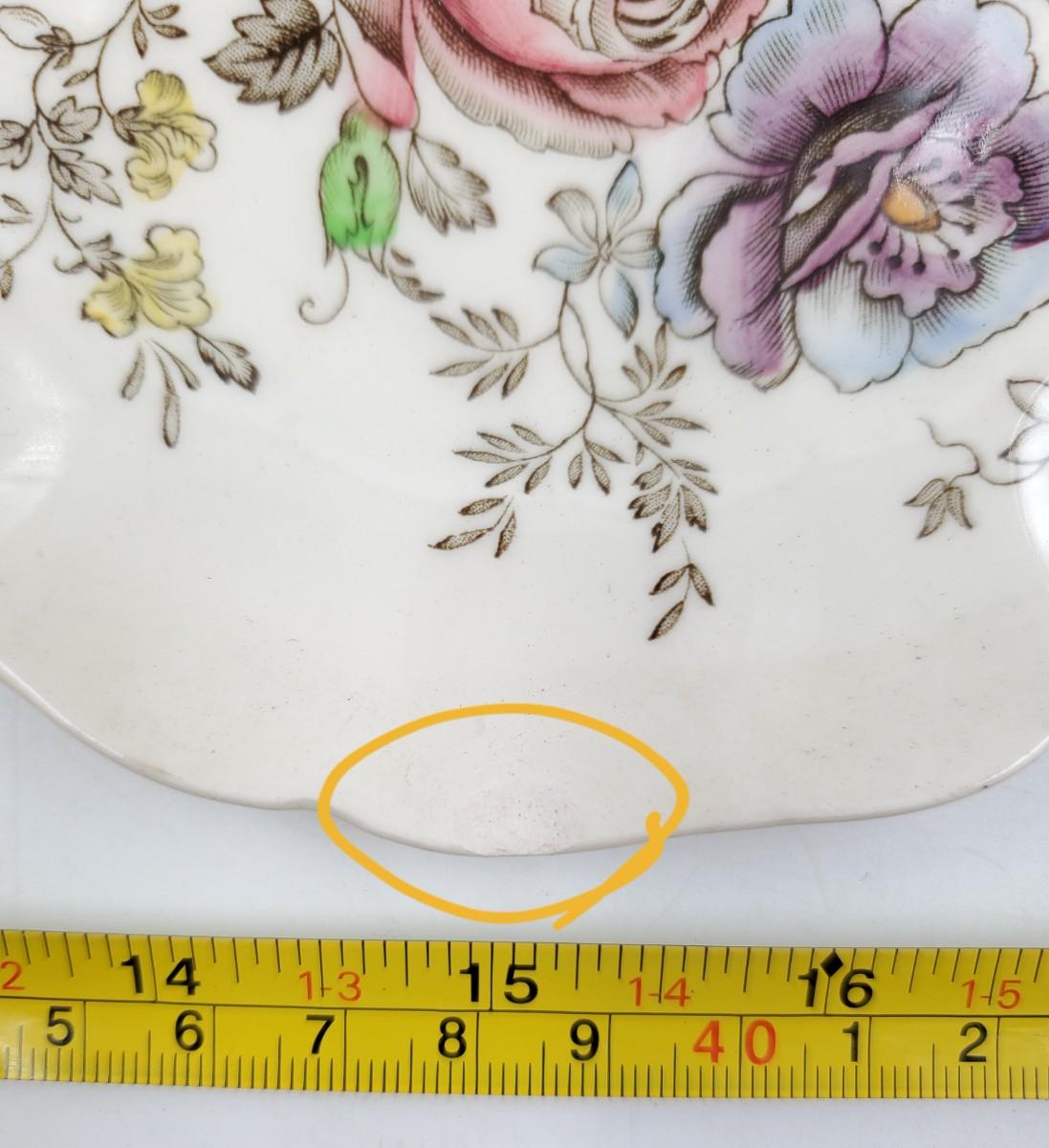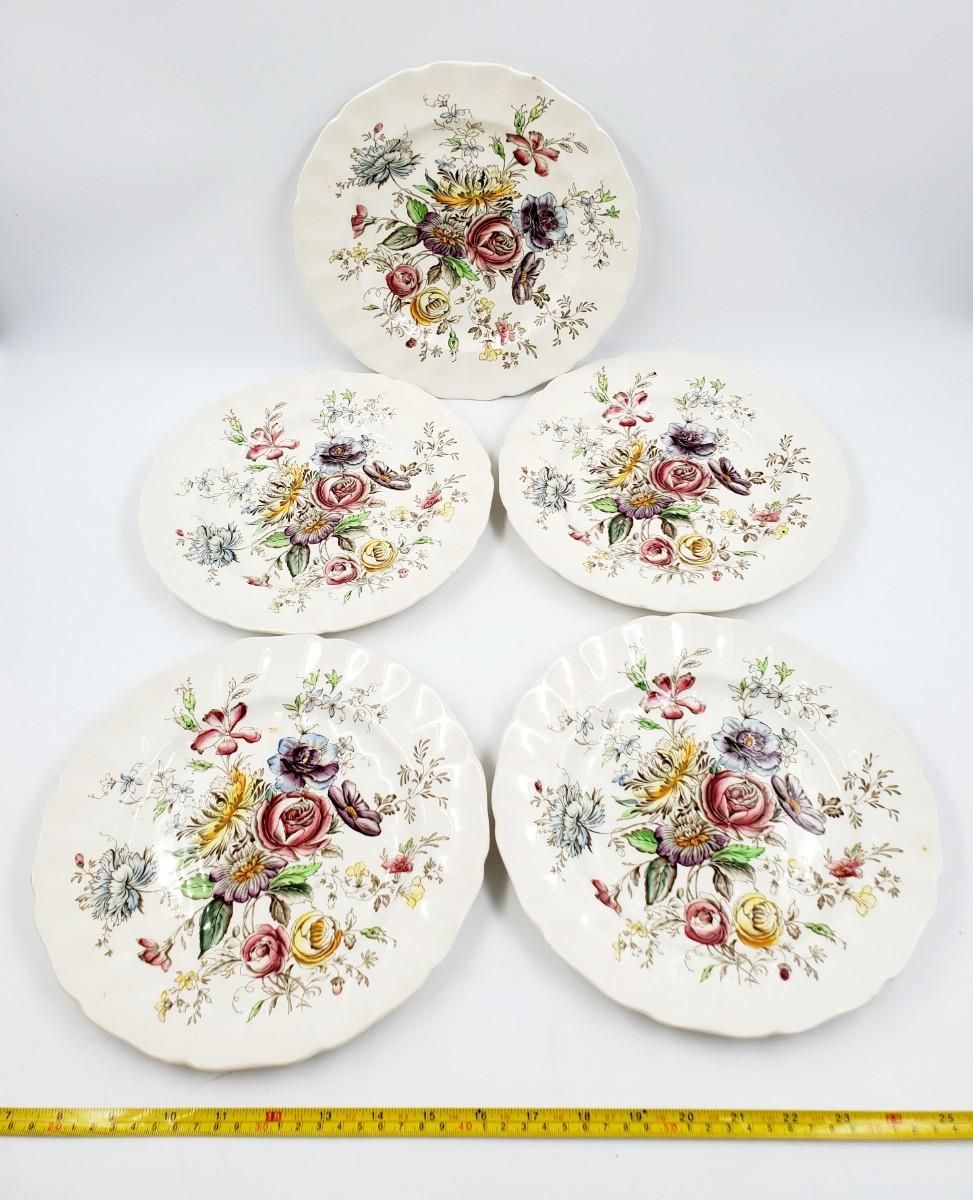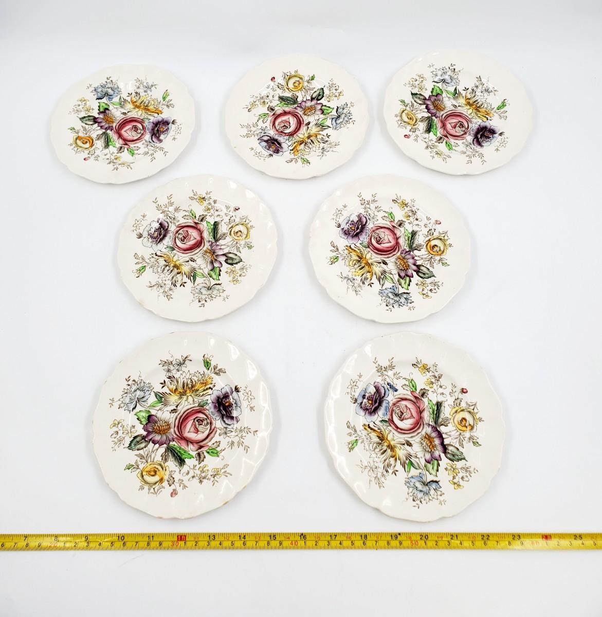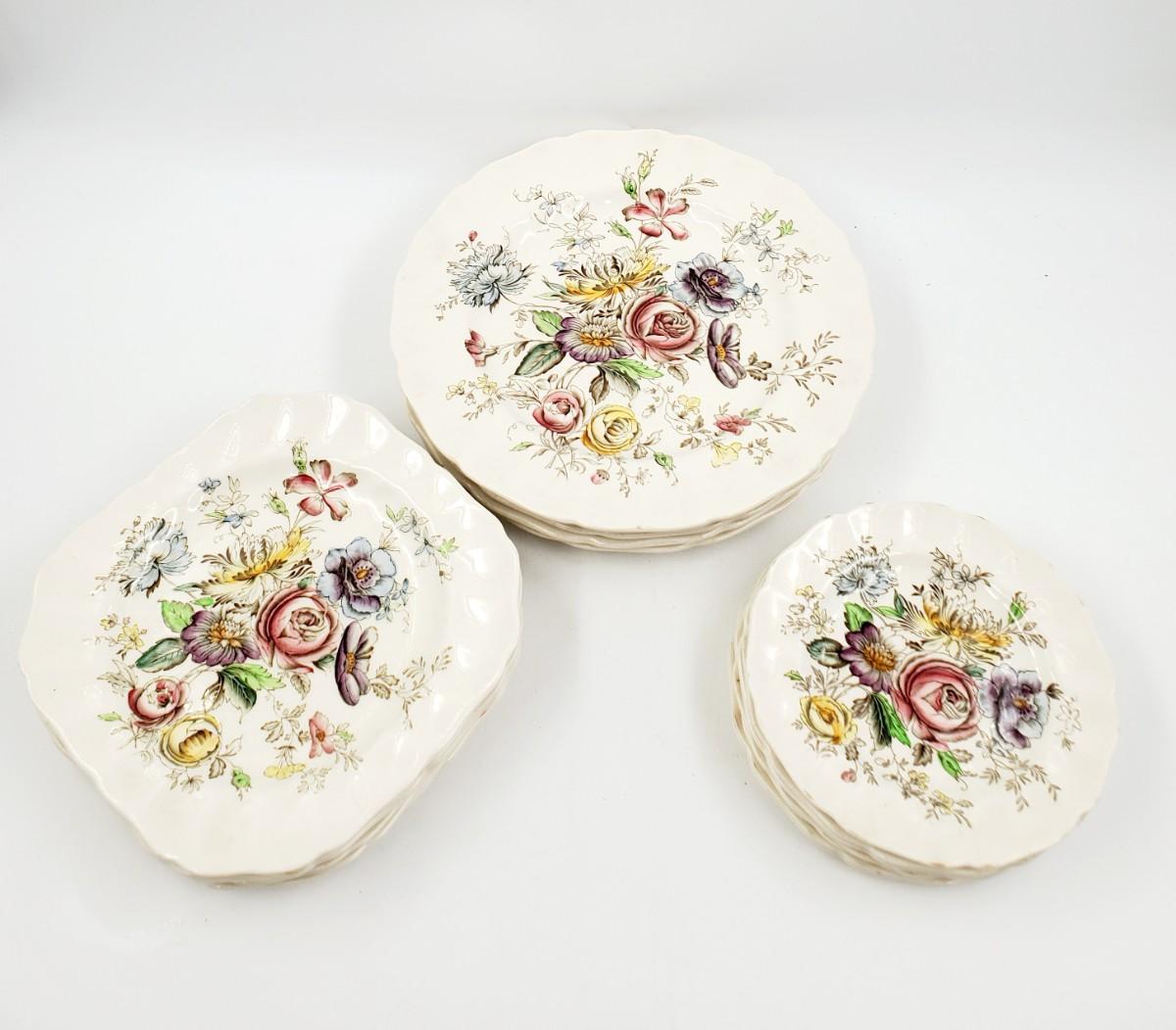 Very pretty floral pattern, one of the smaller plates has a chip on the edge, see photos. Some of these may have some crazing but I did not notice much of it. Very pretty set in overall good condition.