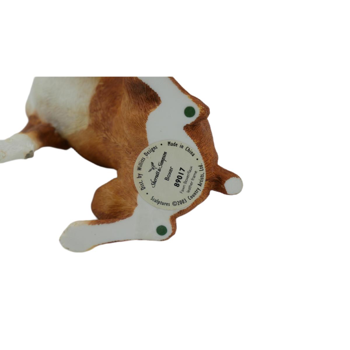 Sheratt & Simpson fawn boxer statue #89017. Good condition, does not have original frame. Measures L 4" x H 7", weighs 1 lb 1 oz. (C128)