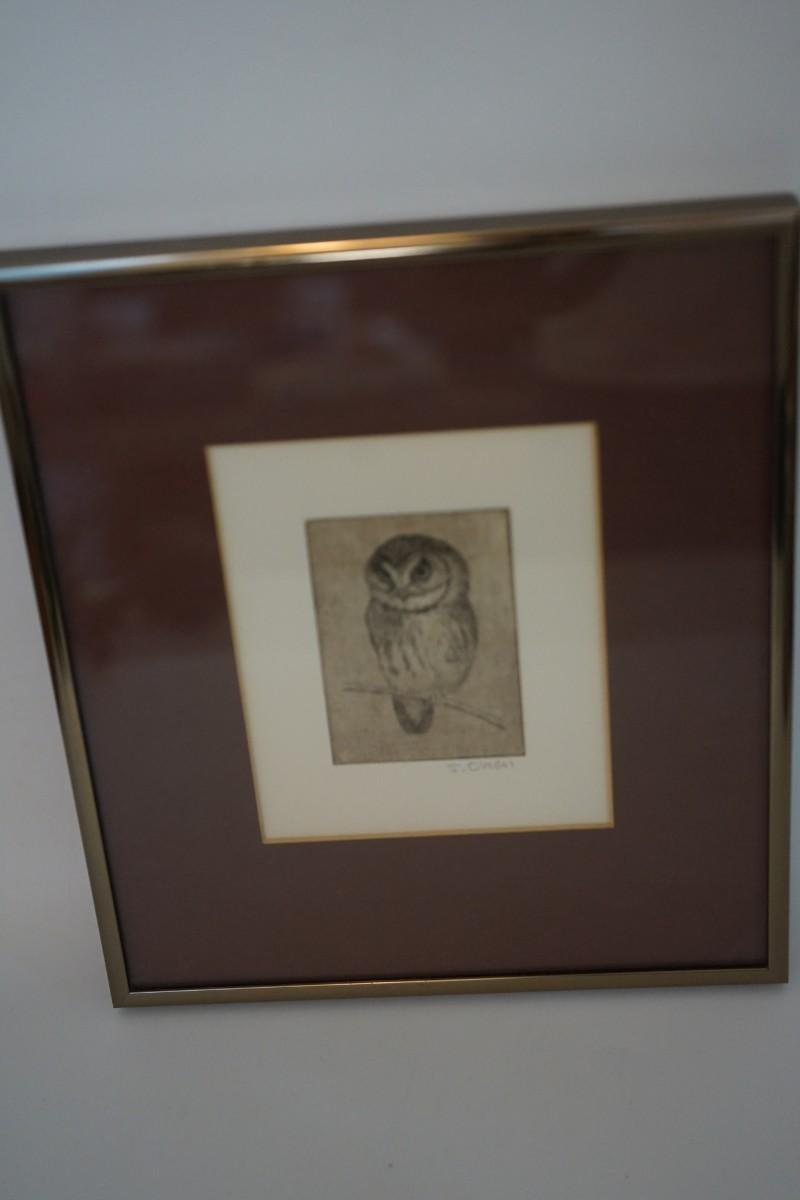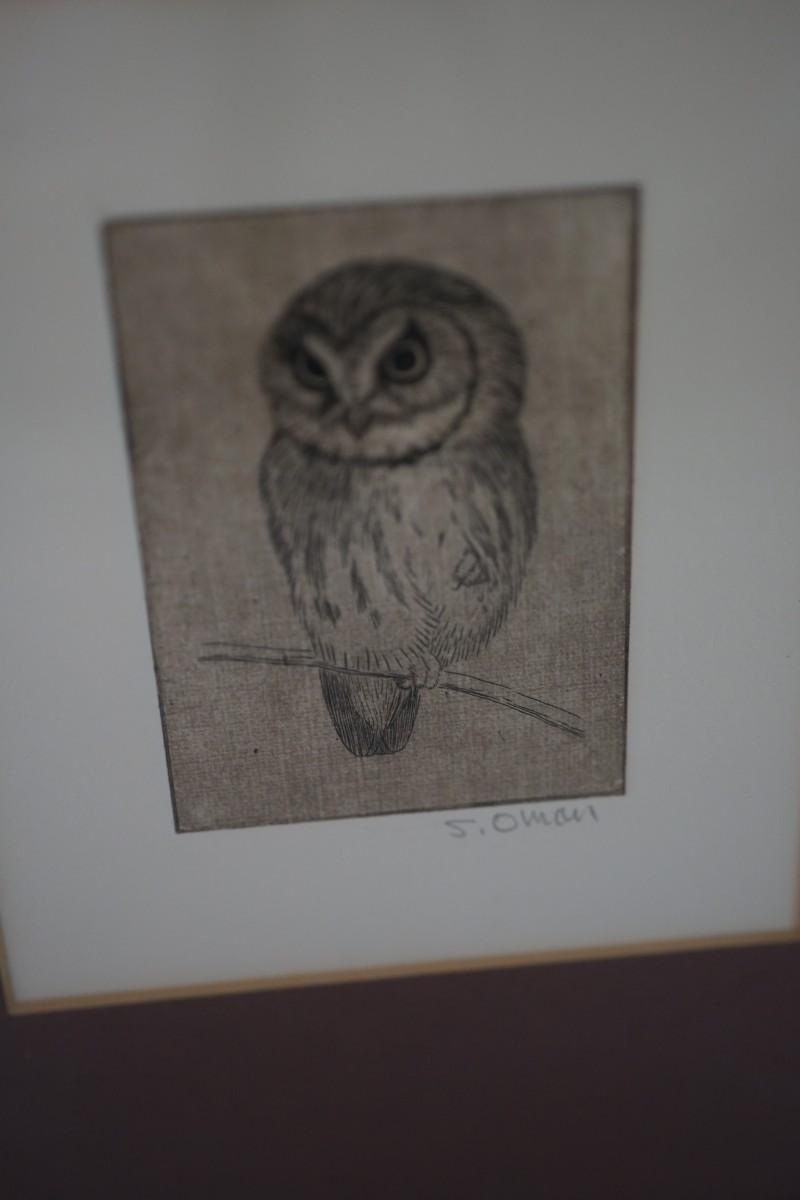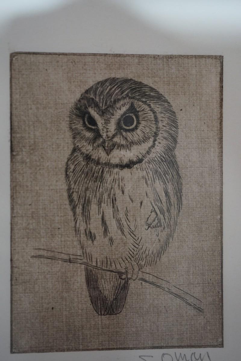 SHERIDAN OMAN 1926-1997 ETCHING/AQUATINT OF OWL