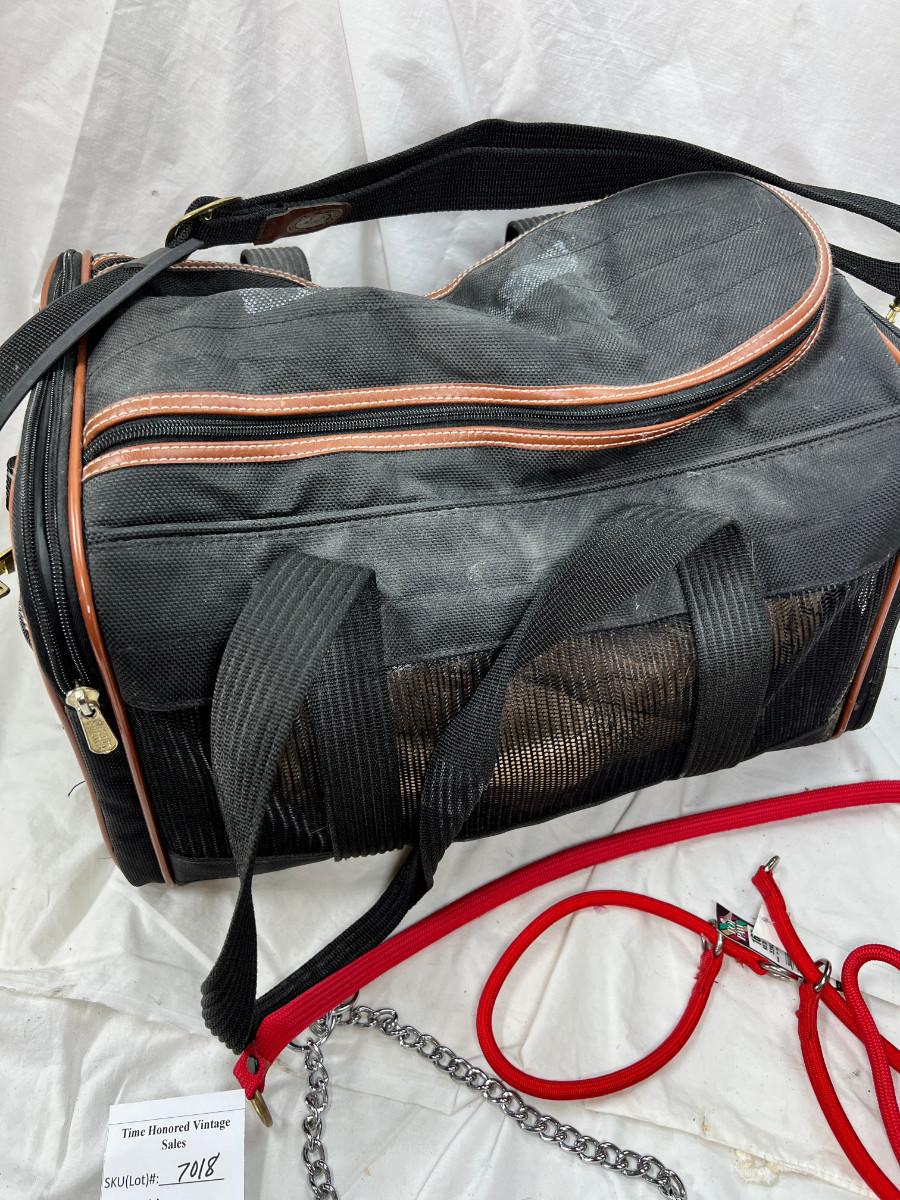Holds up to a 12 pound dog ventilated travel under the seat of the airplane as carry on. I used to fy with my Pomeranian in this bag.Its nice to have a soft sided .Very sturdy in good conition.