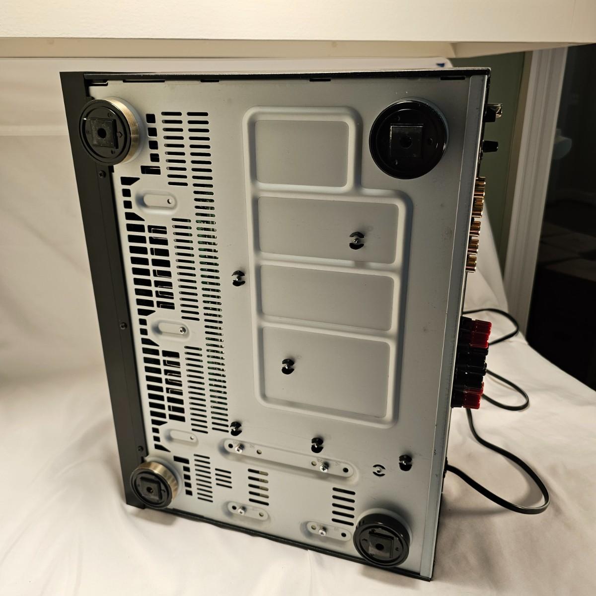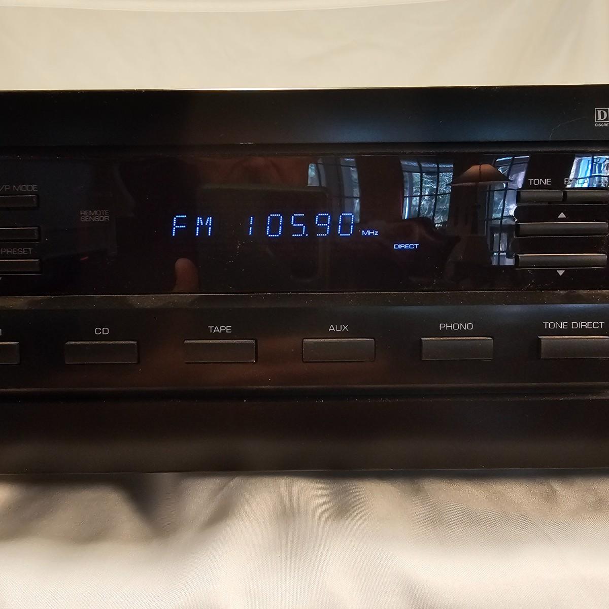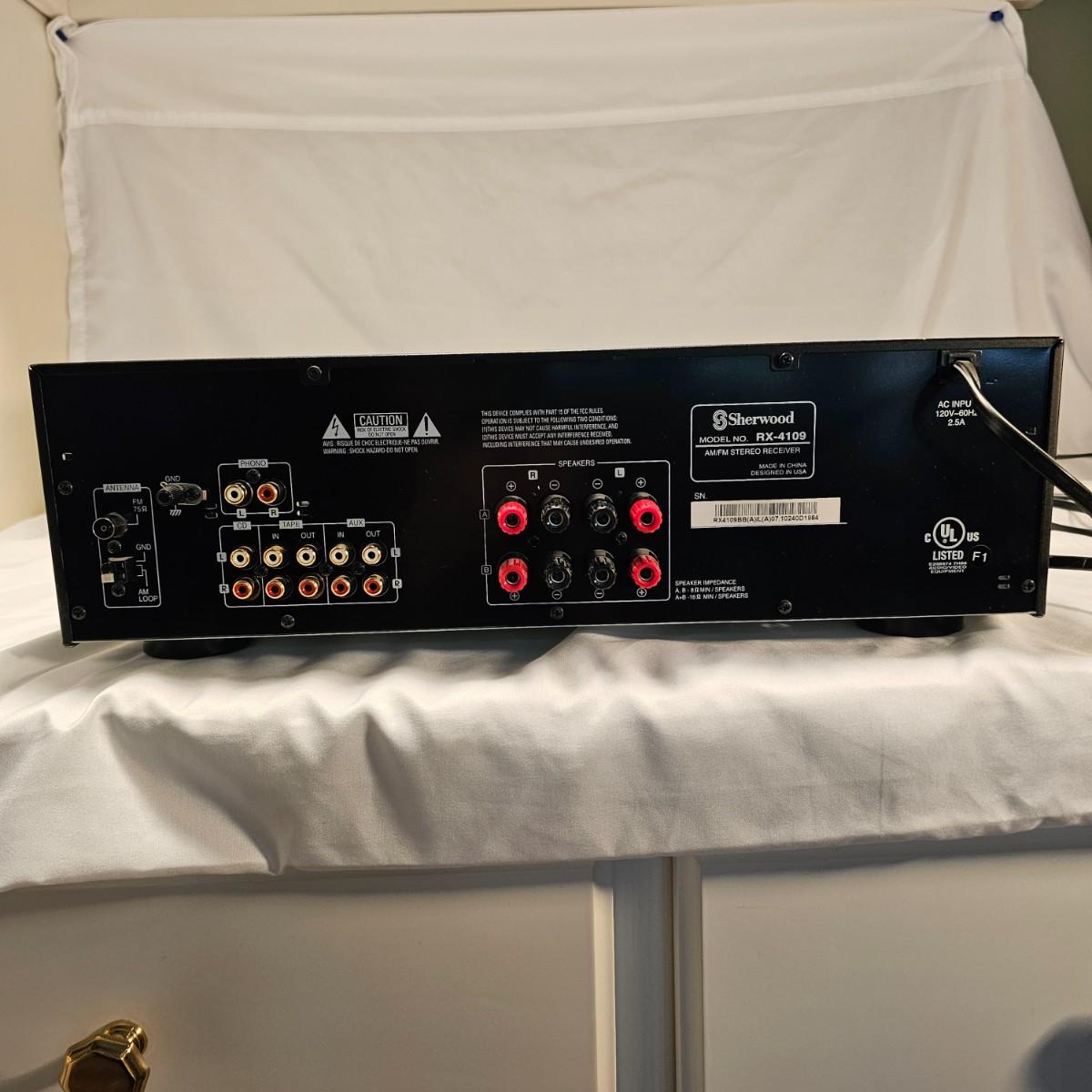 200W Sherwood stereo receiver. AM/FM, CD, Tape, Phono, Aux inputs. Will handle two sets of speakers. Includes two antennas and original box. Measures 13" x 17.5" x 5.5"H. Unit powered on when plugged in. See photos for details. Shipping available.