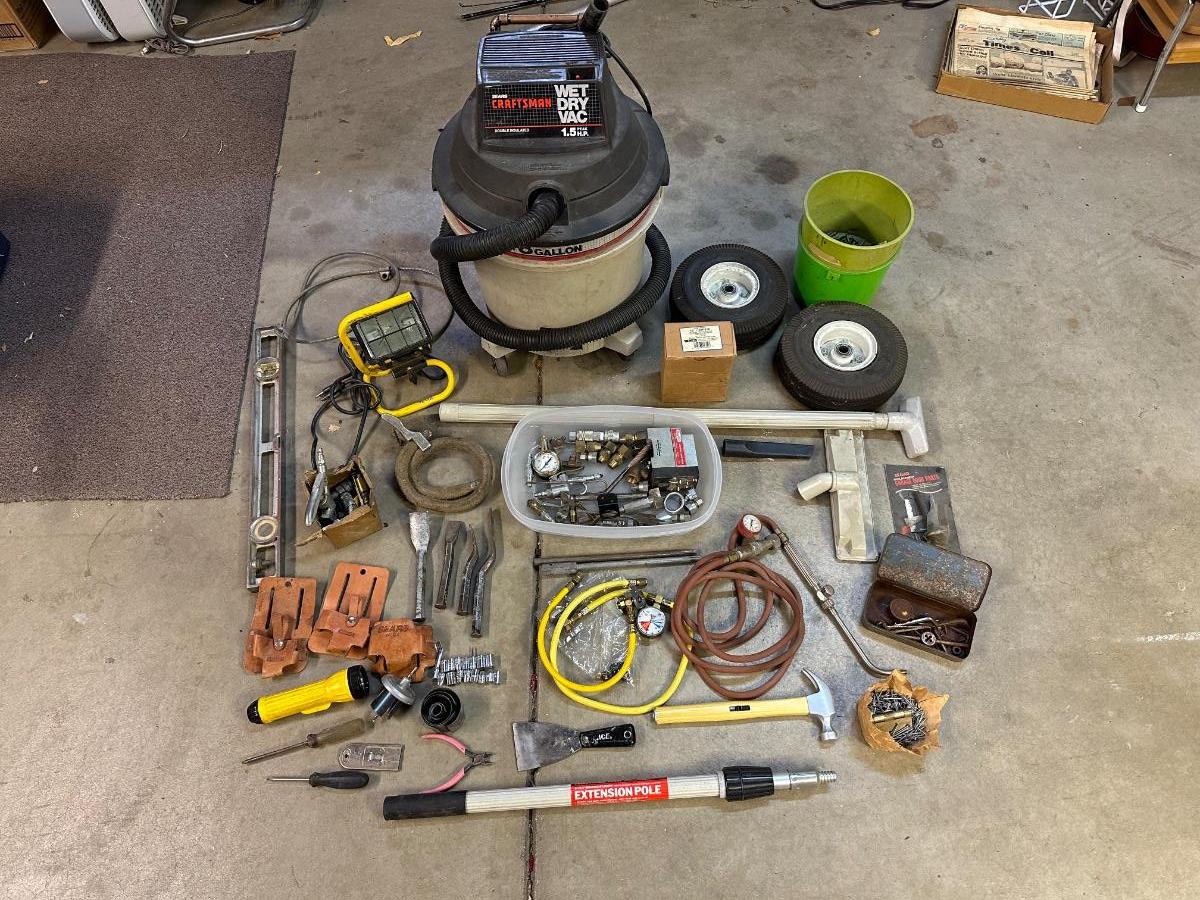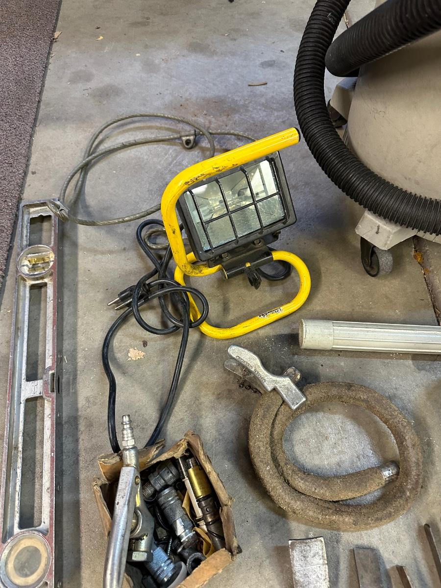 SHHOP VAC, HALOGEN LAMP, HAND TOOLS AND MORE