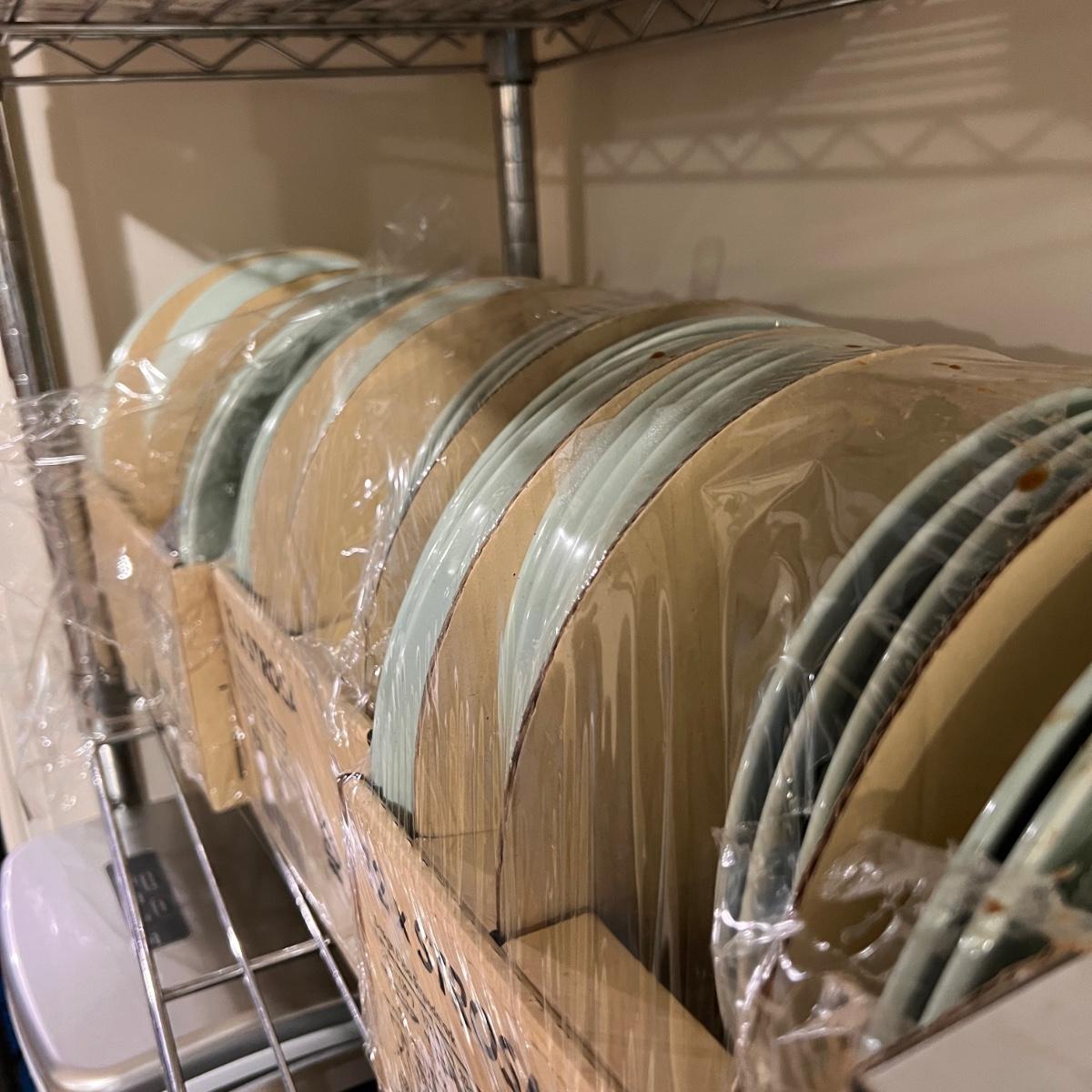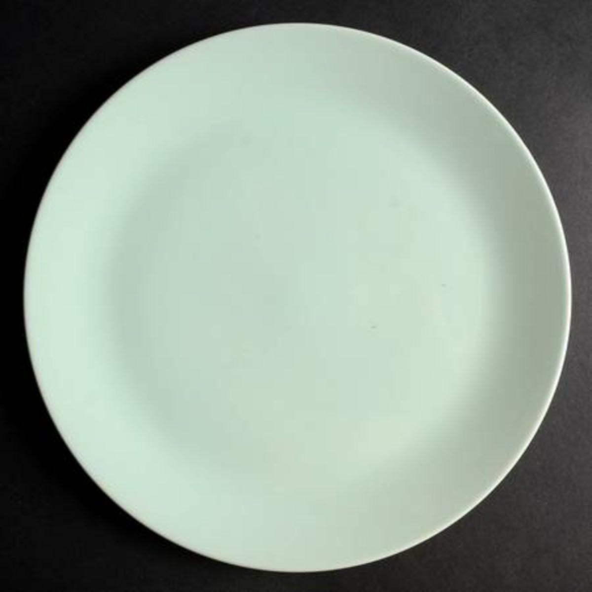 3 sets new in packaging. Each set includes 4 dinner plates, 4 small plates and 4 bowls. Light Green, discontinued so they're hard to find!
