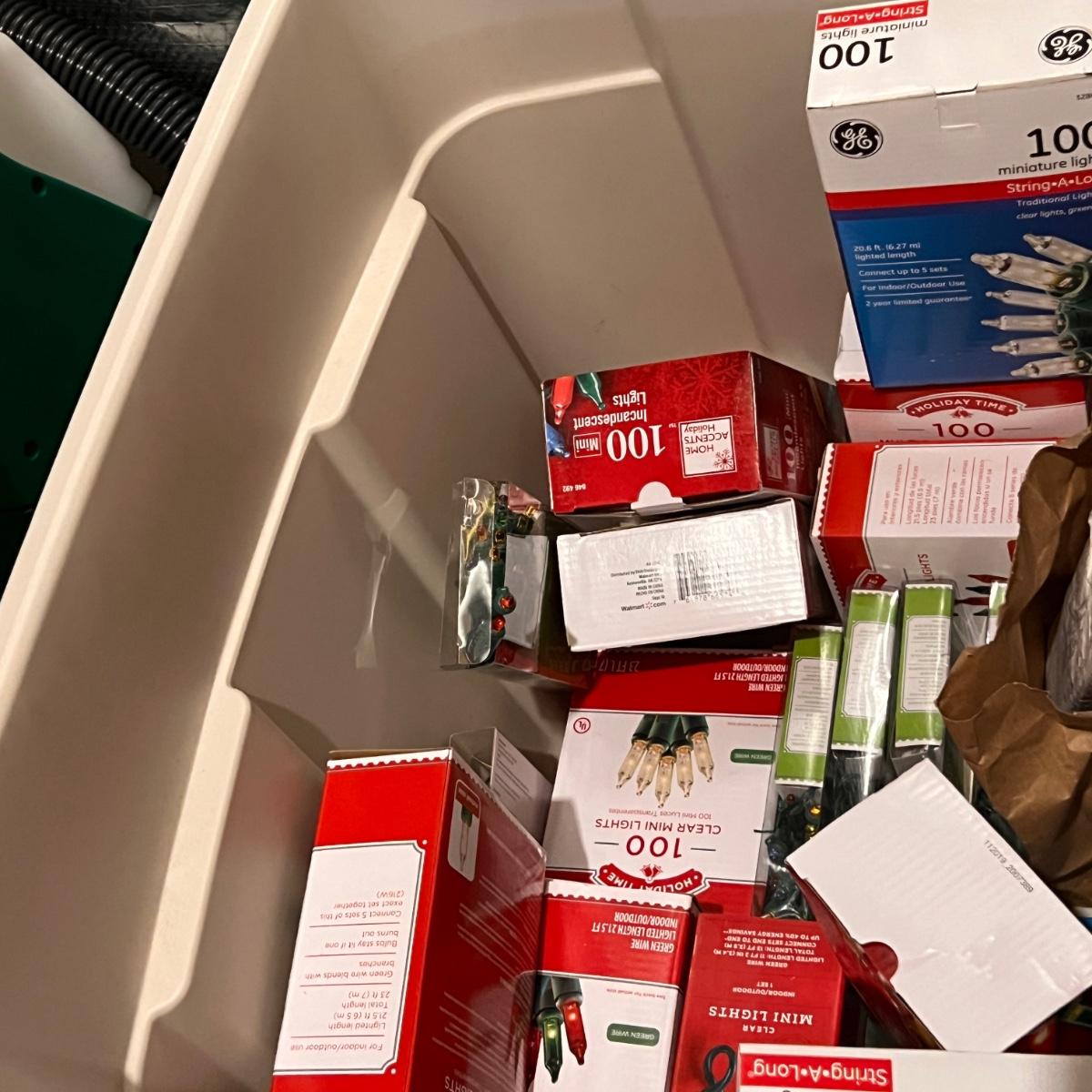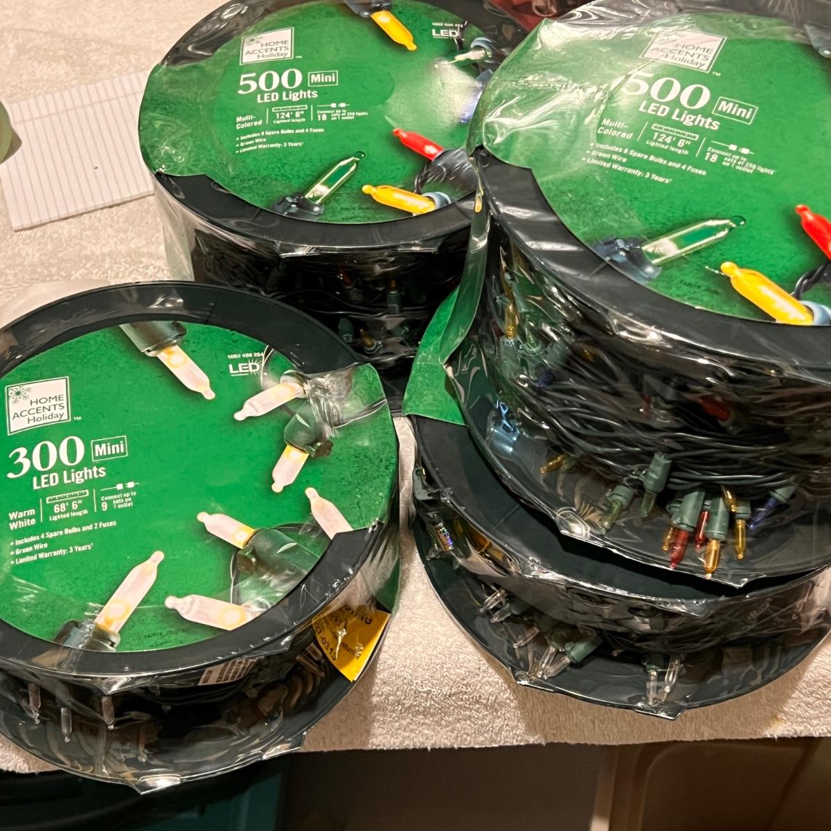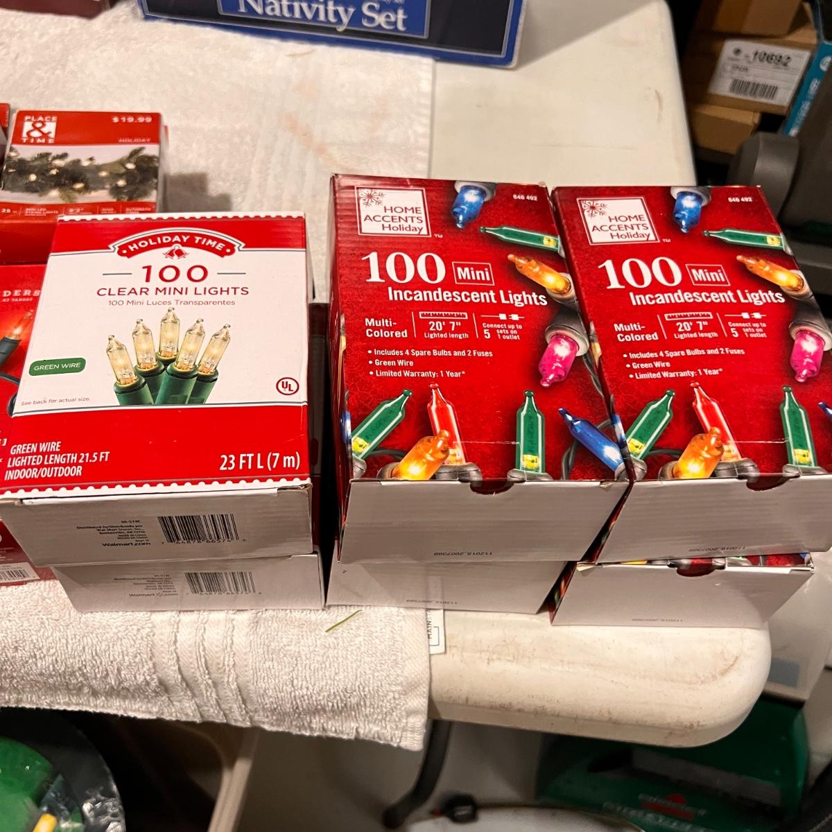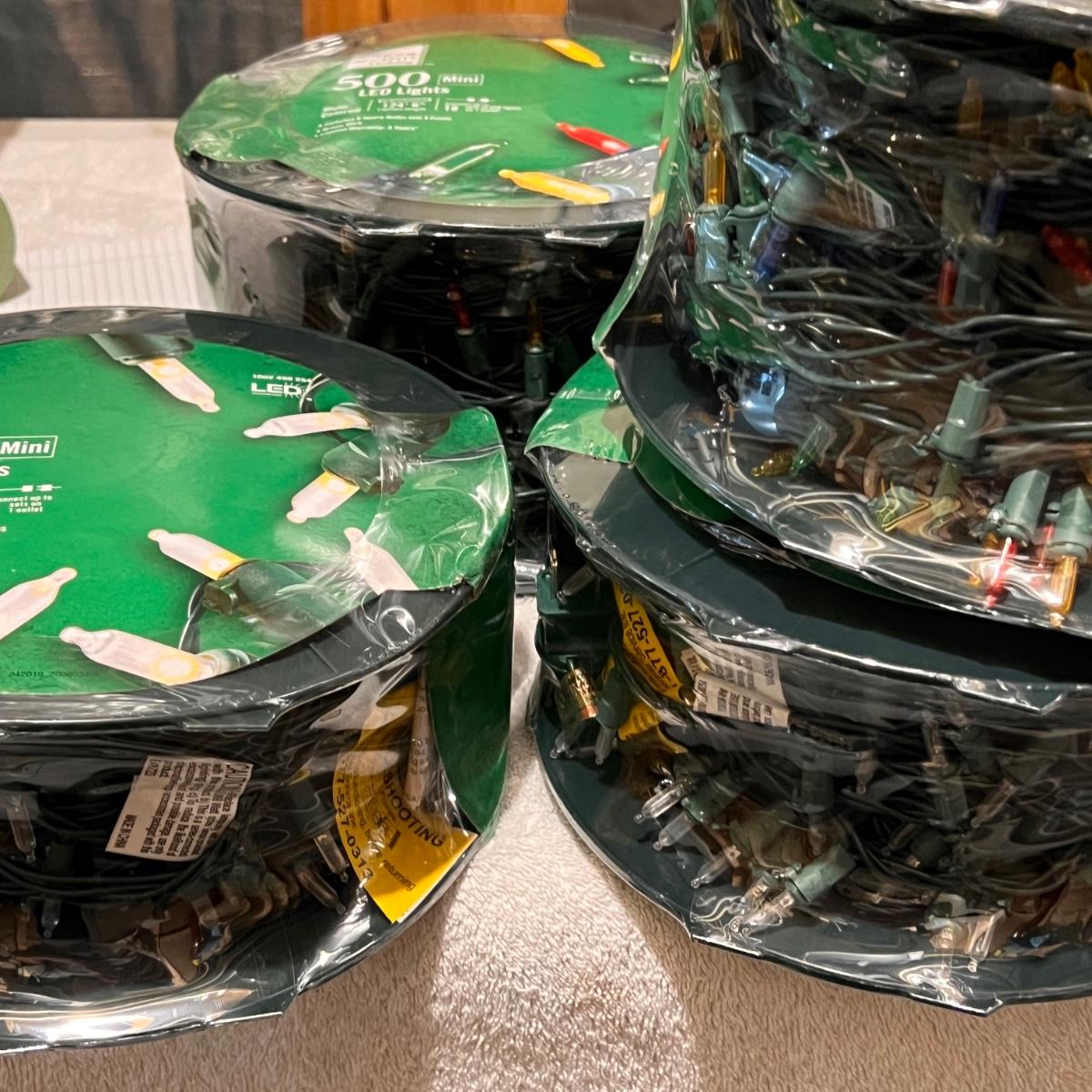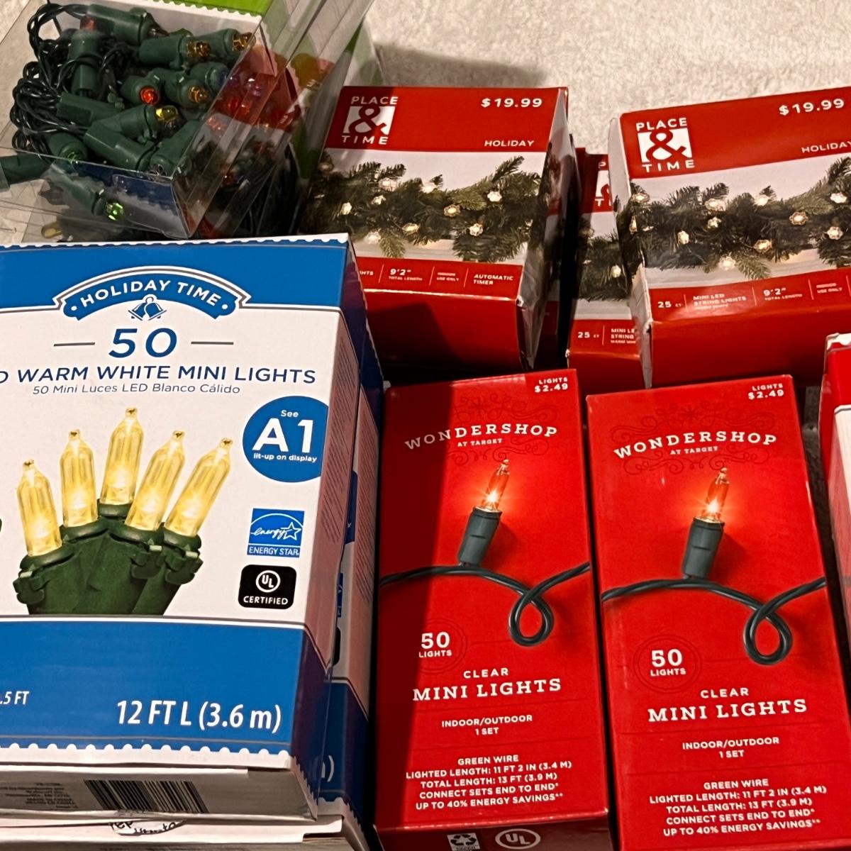 6 new Christmas lights wheels, tons of boxes of strands of lights, mini lights, white, multicolored.