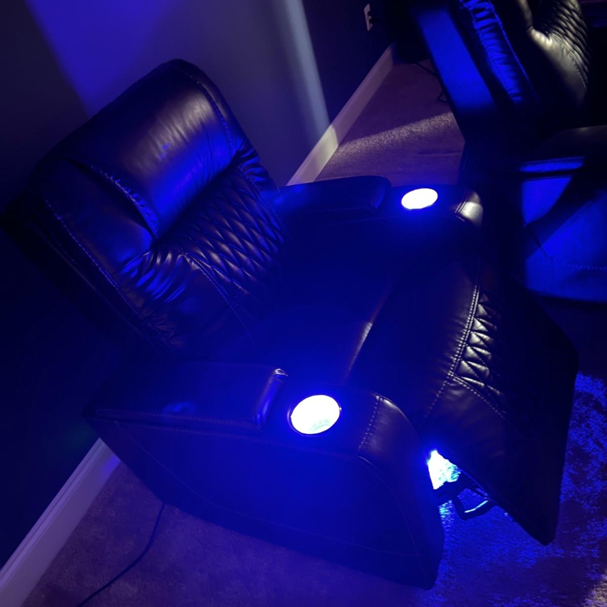 "Create the home theater you've always dreamed of with my Showtime Home Theater Power Recliner! The Bob-O-Pedic Memory Foam cushions will make it even comfier than the seats at the movie theater - while the power recline and power headrest give it a state of the art feel! The breathable fabric will help keep it durable and feeling top notch. Plus, the USB-A port in the power button will definitely come in handy. Not to mention the LED floor lights and lighted cup holder will surely be eye-catching, as well as convenient. There's even hidden storage in each arm rest! That's a lot of features for just one recliner! If you ask me, this sounds like an untouchable value!"