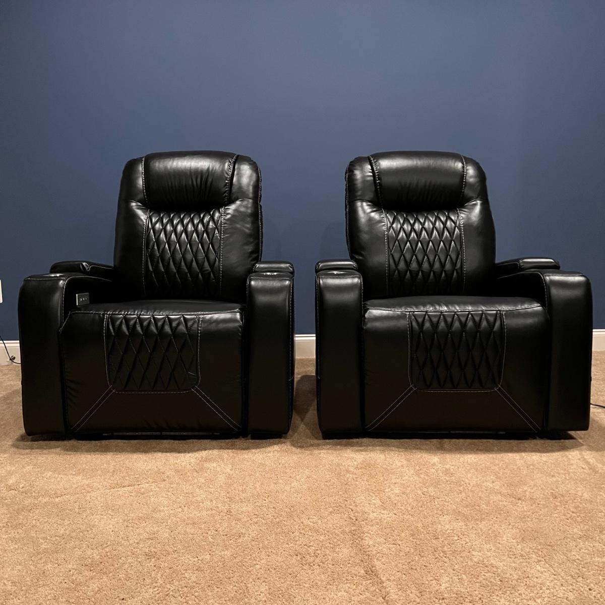 Barely used if at all! Purchased in 2021. Excellent condition. Overall Dimensions 42"W x 36.5"D x 43"H. This lot is for 2 recliners. There are a total of 6 in the sale. See lots #54 and #55.