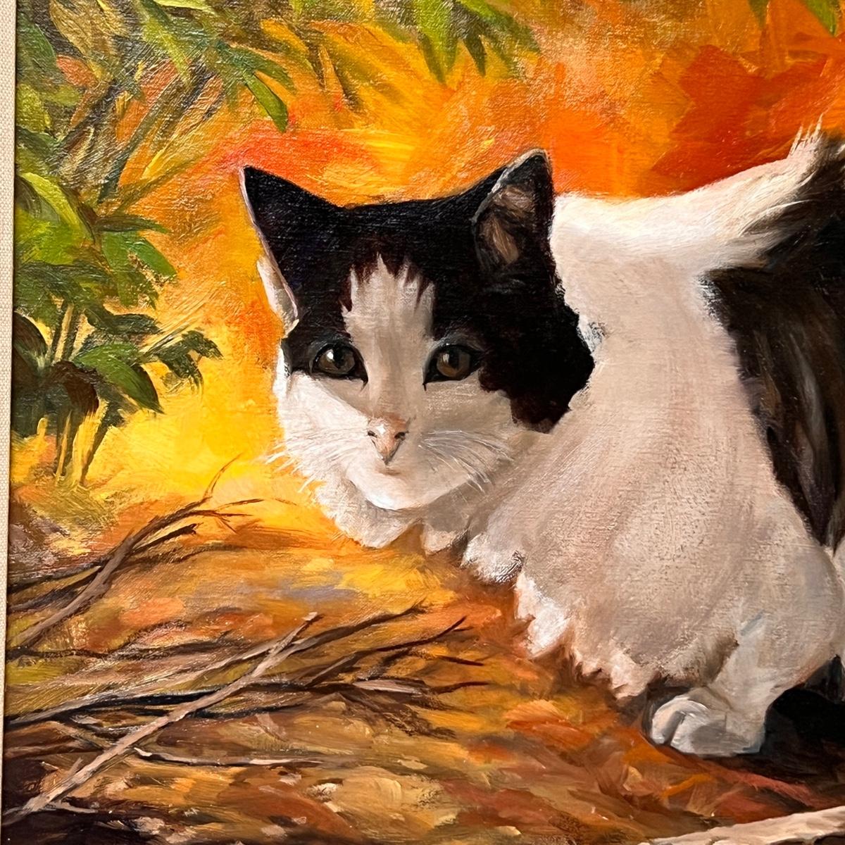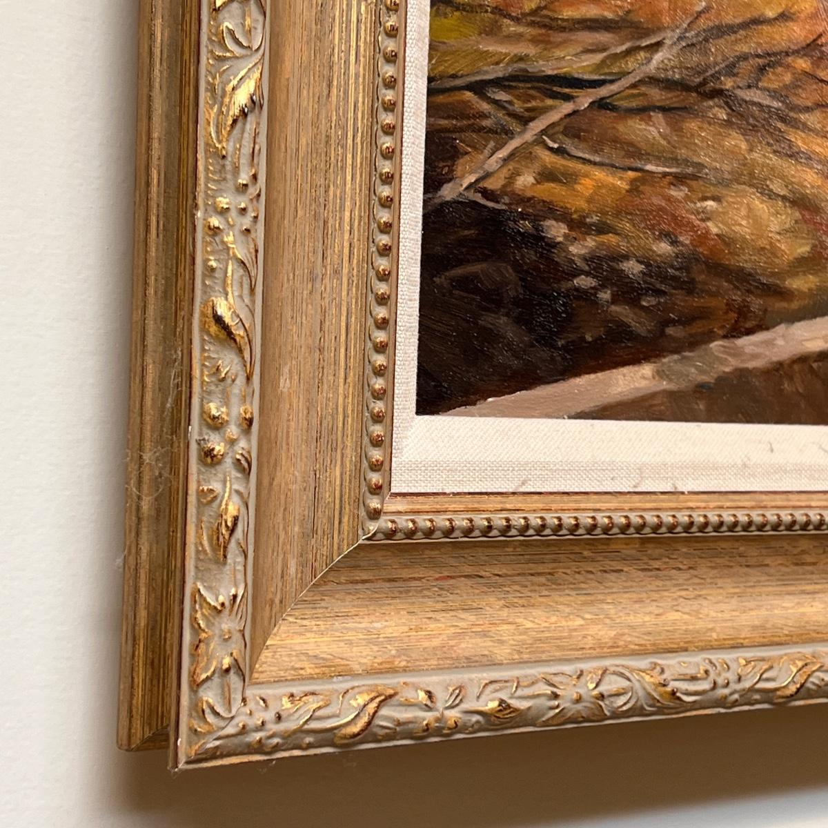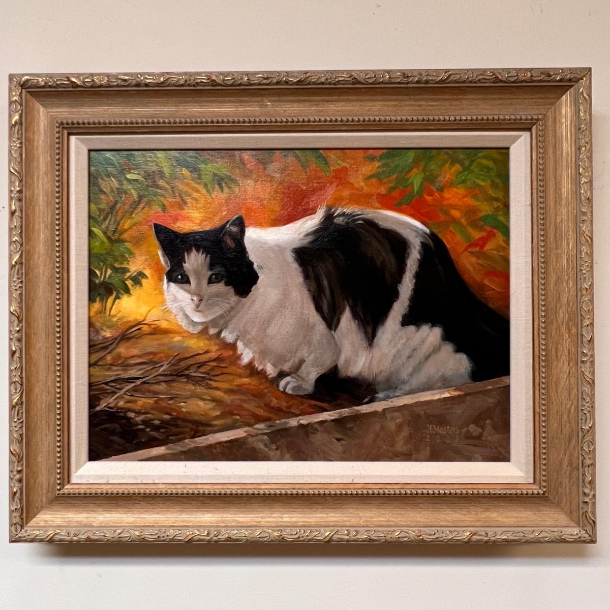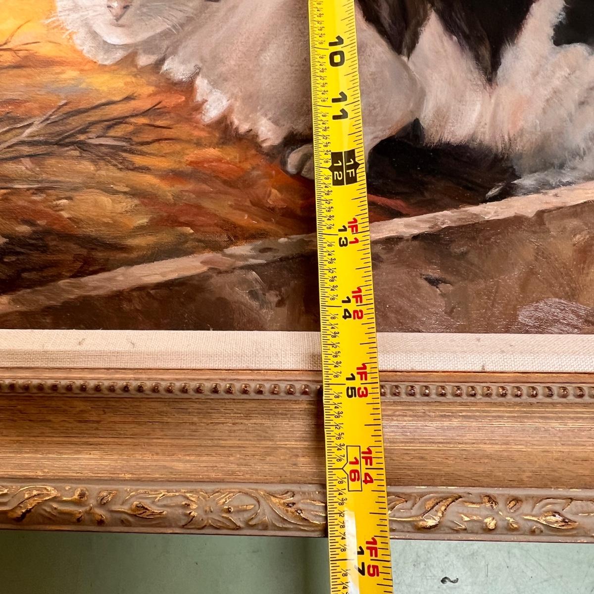 Professionally framed with linen liner cat oil painting. See the picture of the carved wooden frame up close. The details are gorgeous.