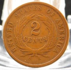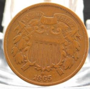 Shield and Wreath 1865 Two Cent Piece Circulated (R2)