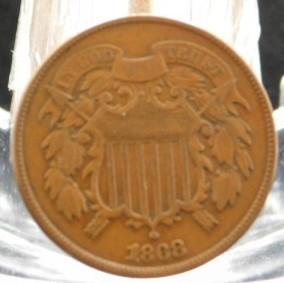 Shield and Wreath 1868 Two Cent Piece Circulated (R3)