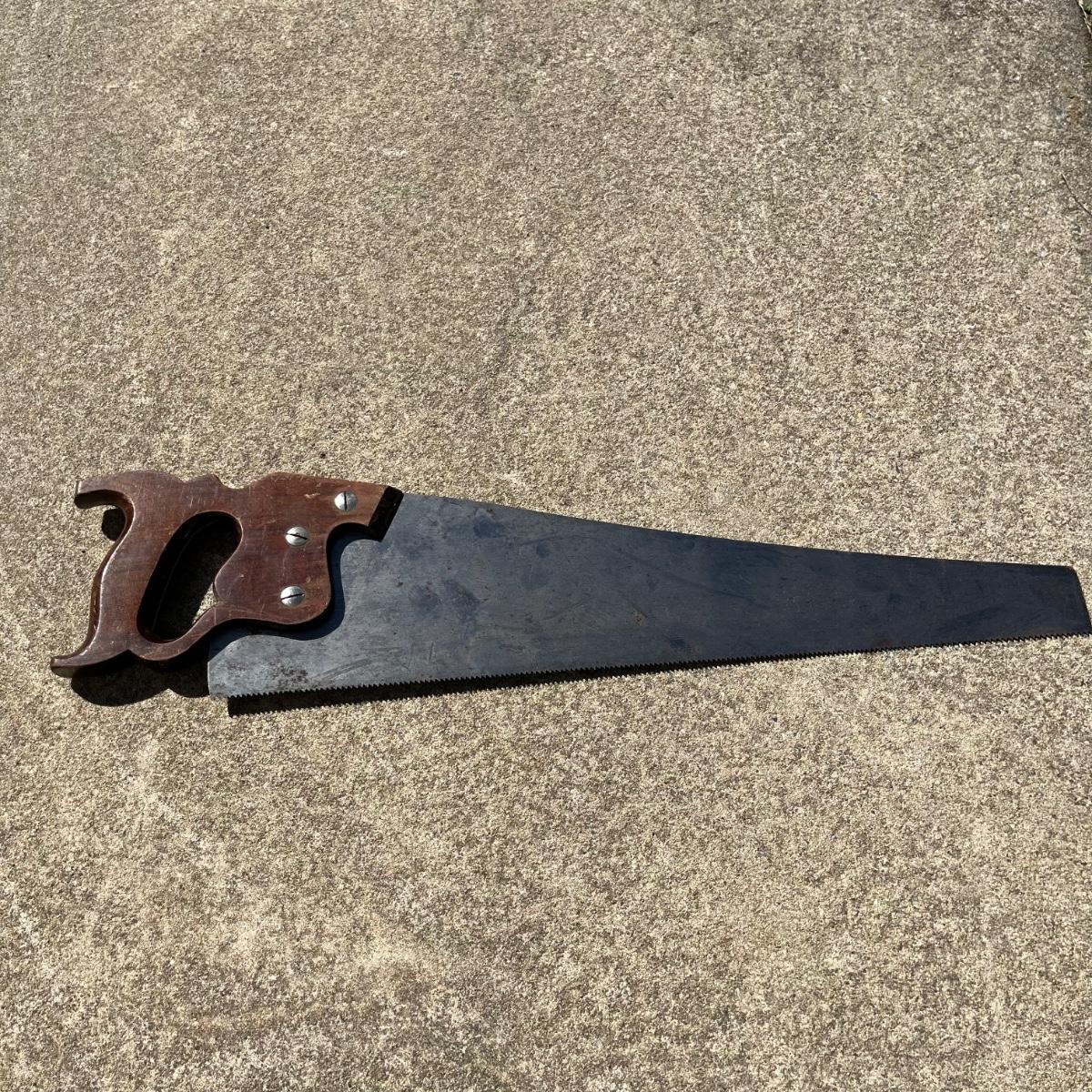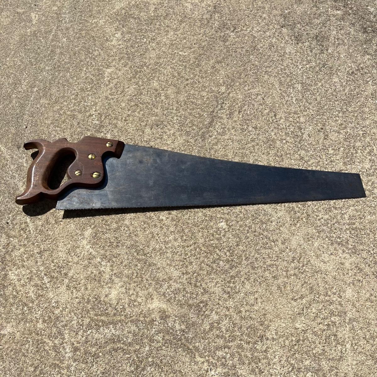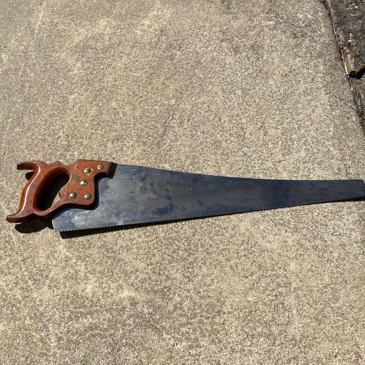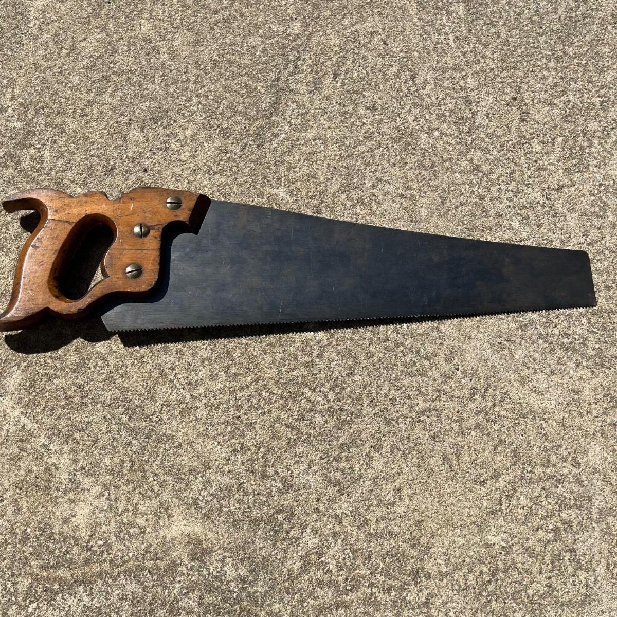 Lot includes a Shields and Miller 28” blade saw, Simonds 26” blade saw, Craftsman 26” blade saw and three Disston saw with blades of 16”, 20” and 22”