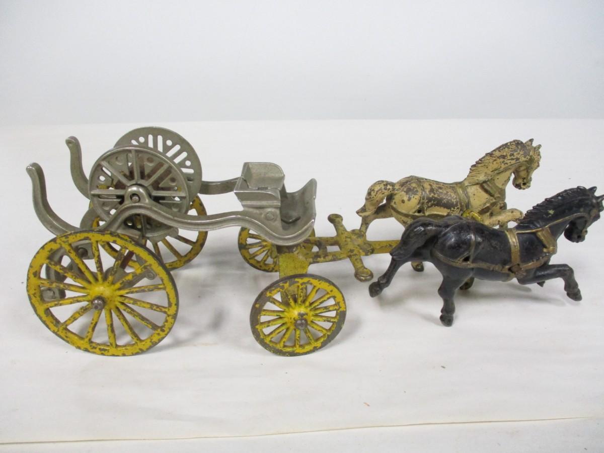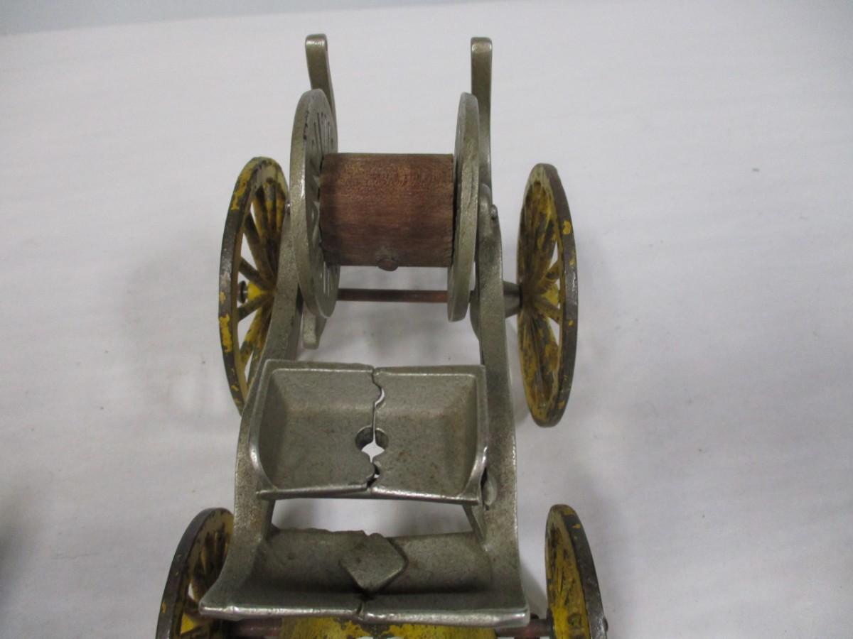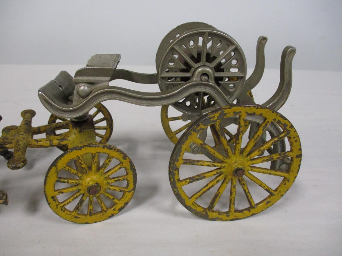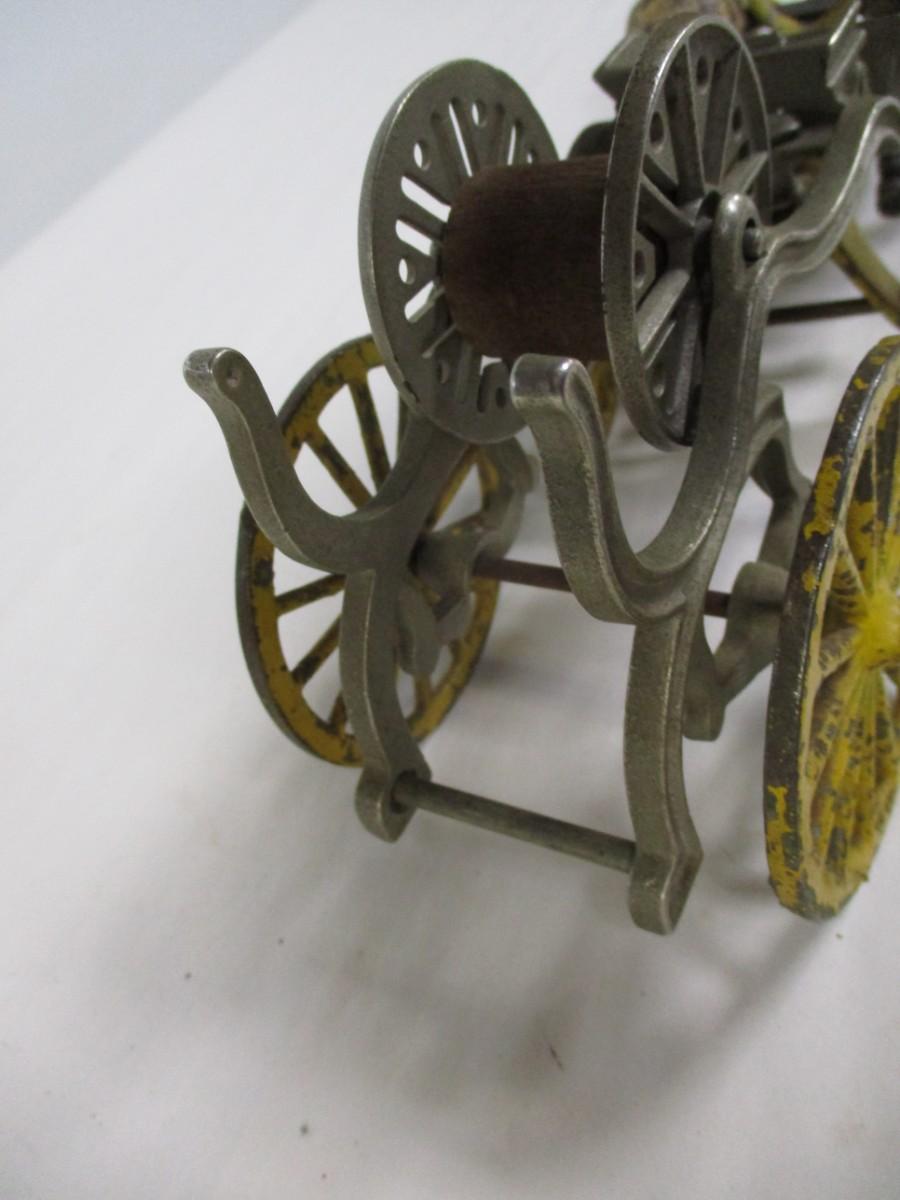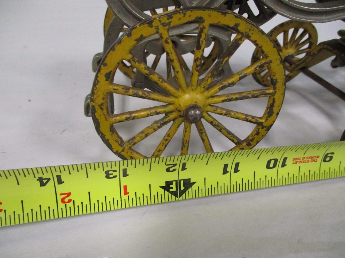 Vintage Shimer Cast Iron Horse Drawn Fire Hose Reel Wagon