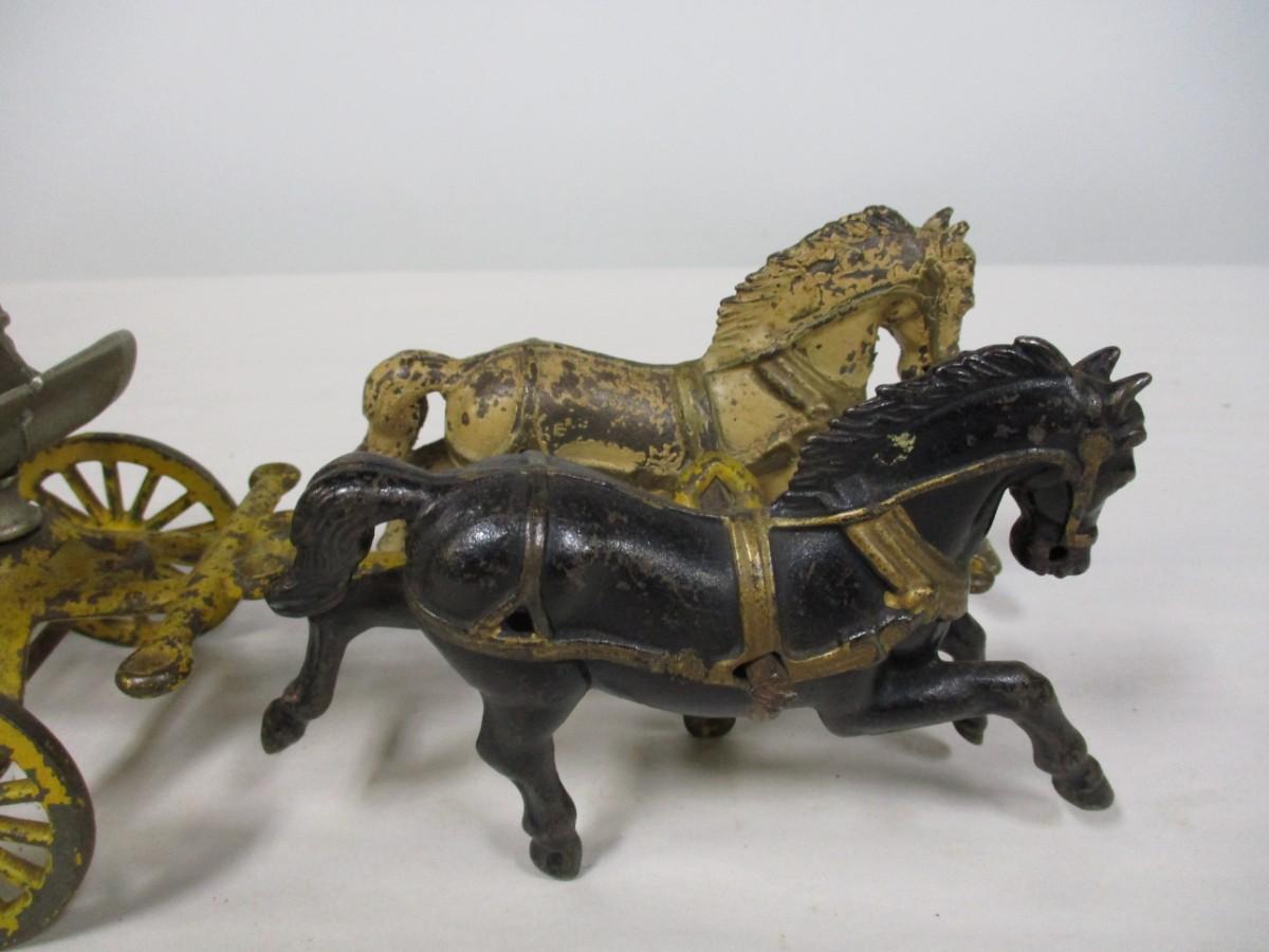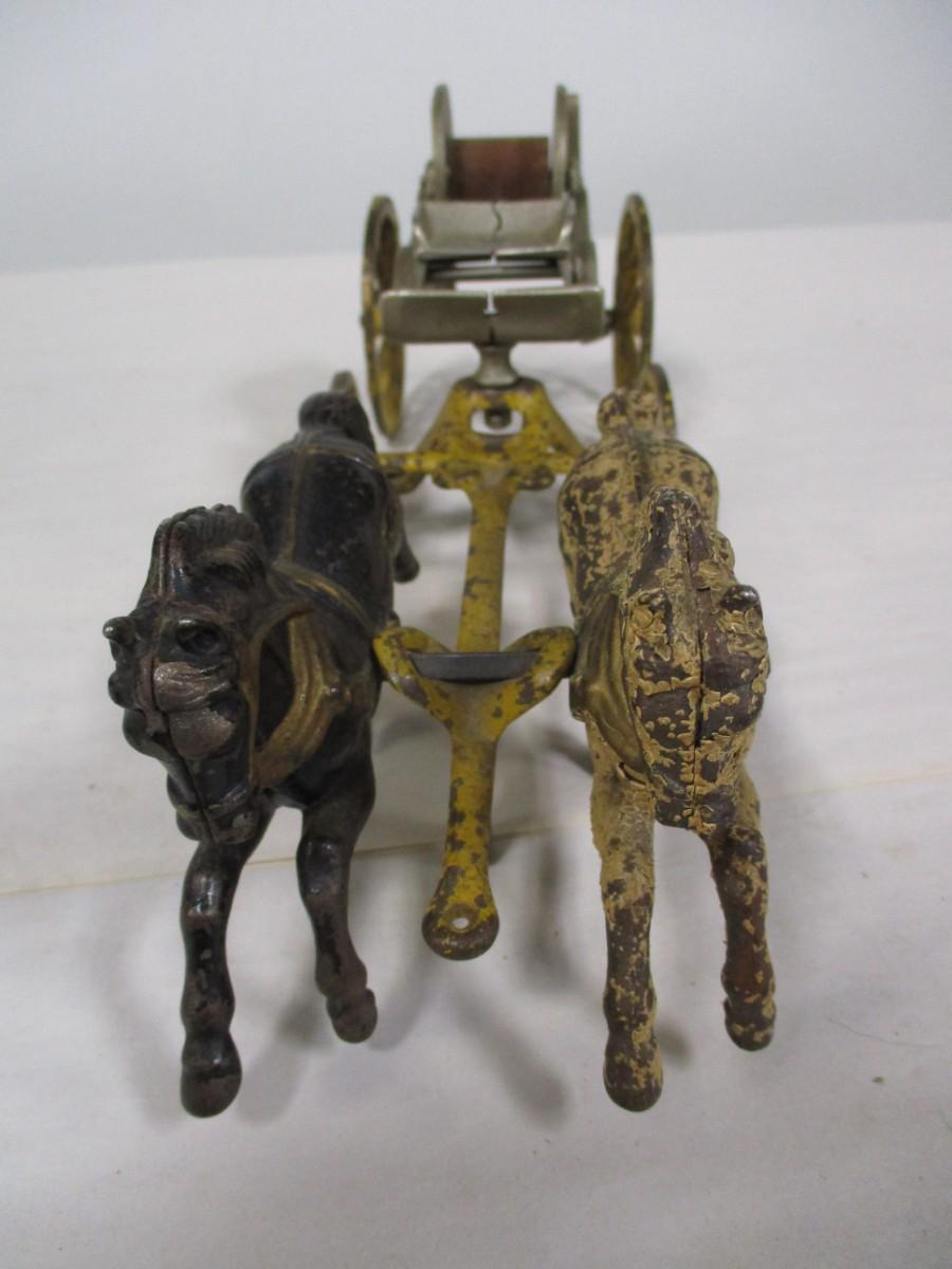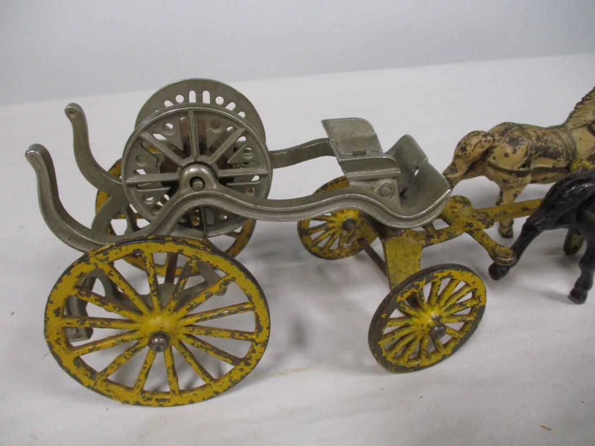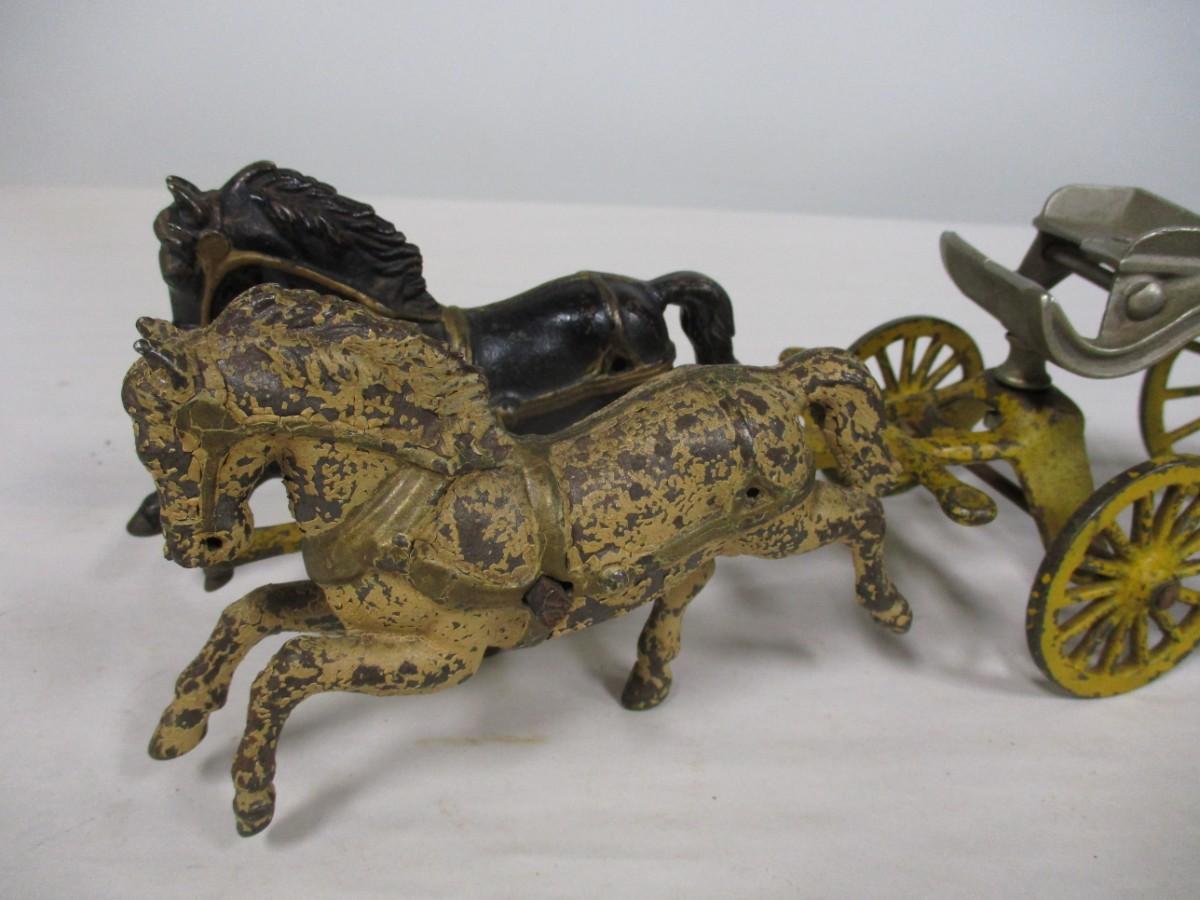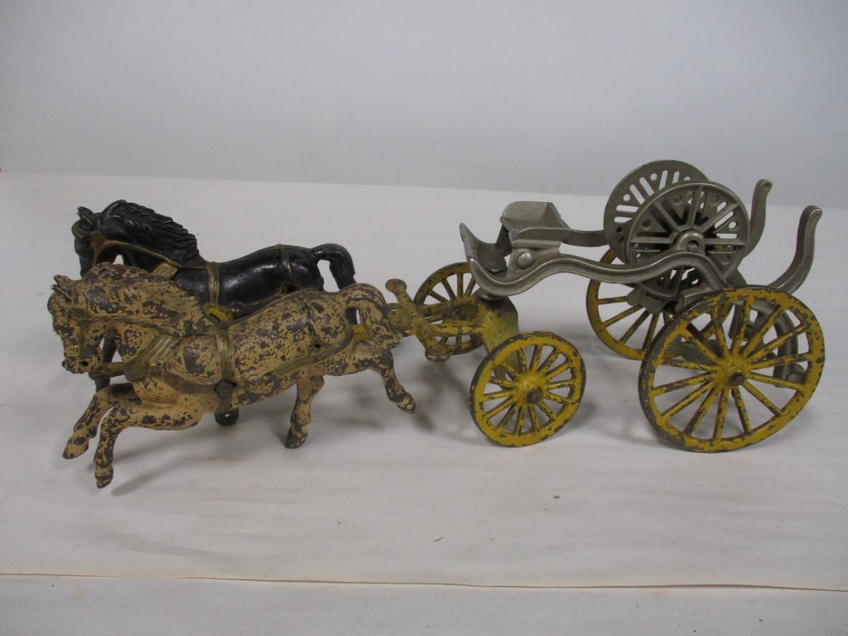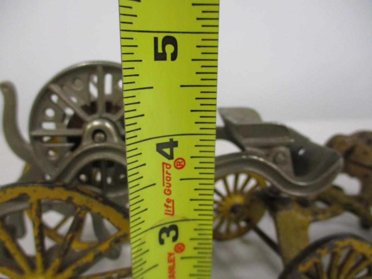 Vintage Shimer Cast Iron Horse Drawn Fire Hose Reel Wagon