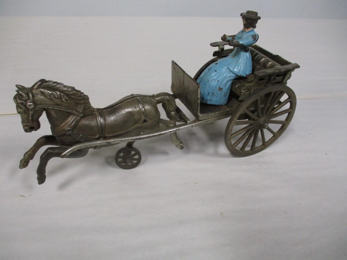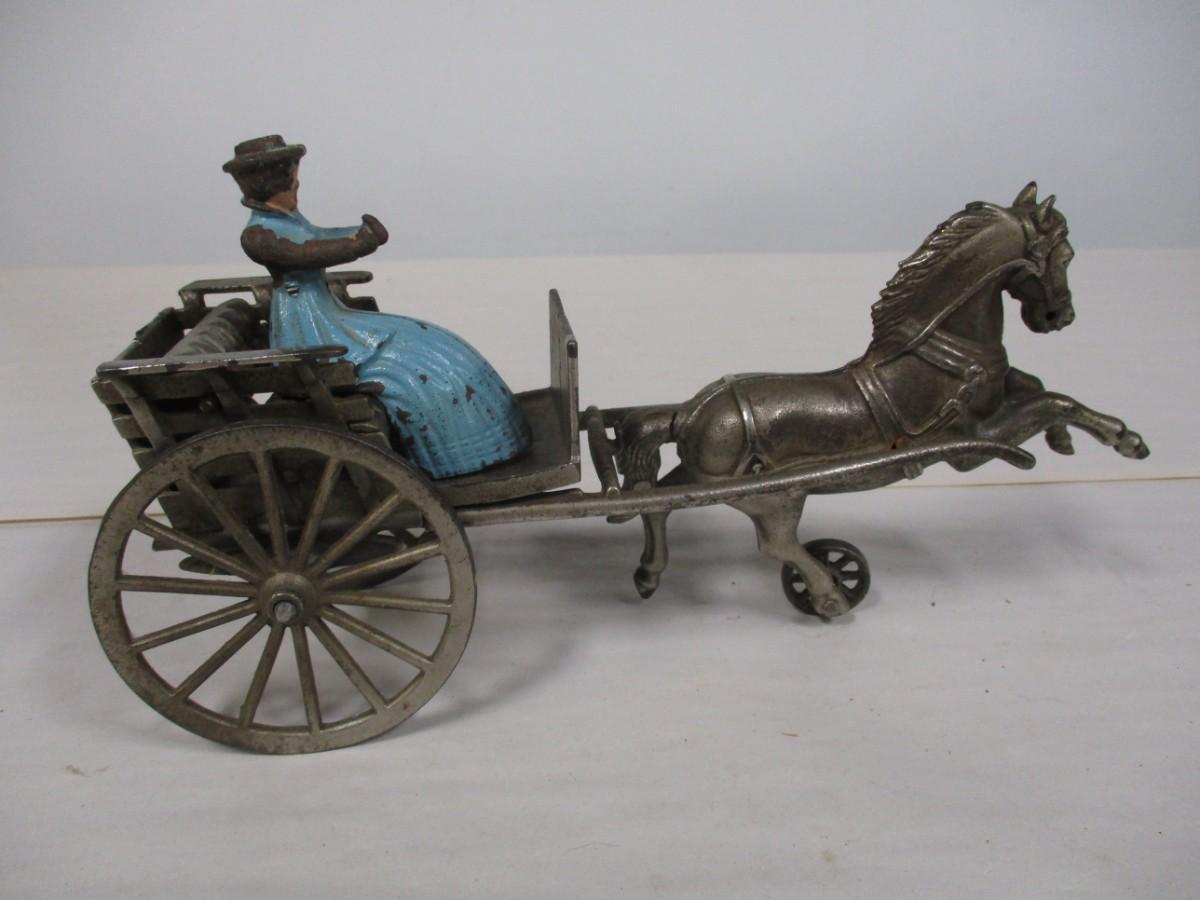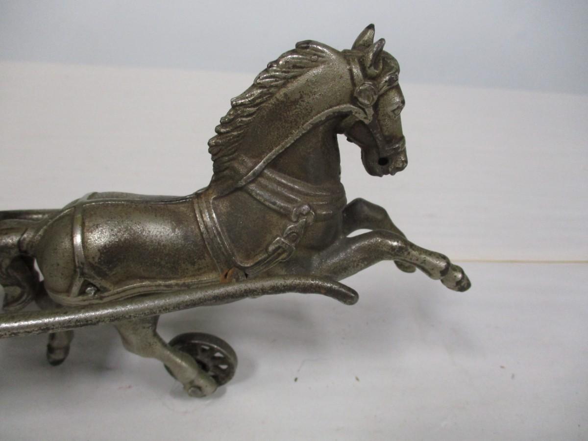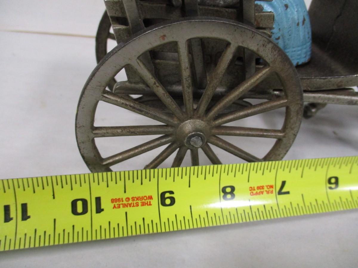 Vintage Shimer & Sons Nickel Plated Horse Drawn Wagon Pull Toy with Original Rider