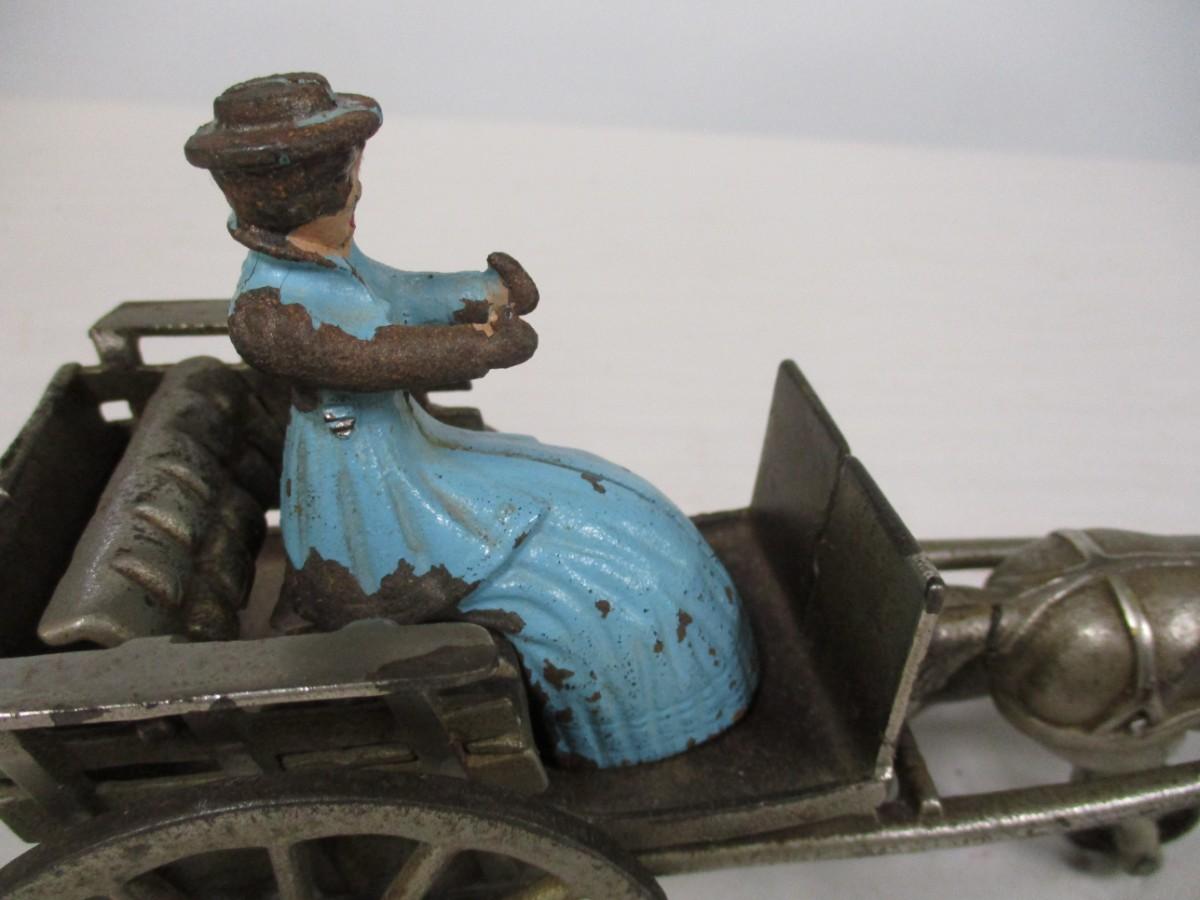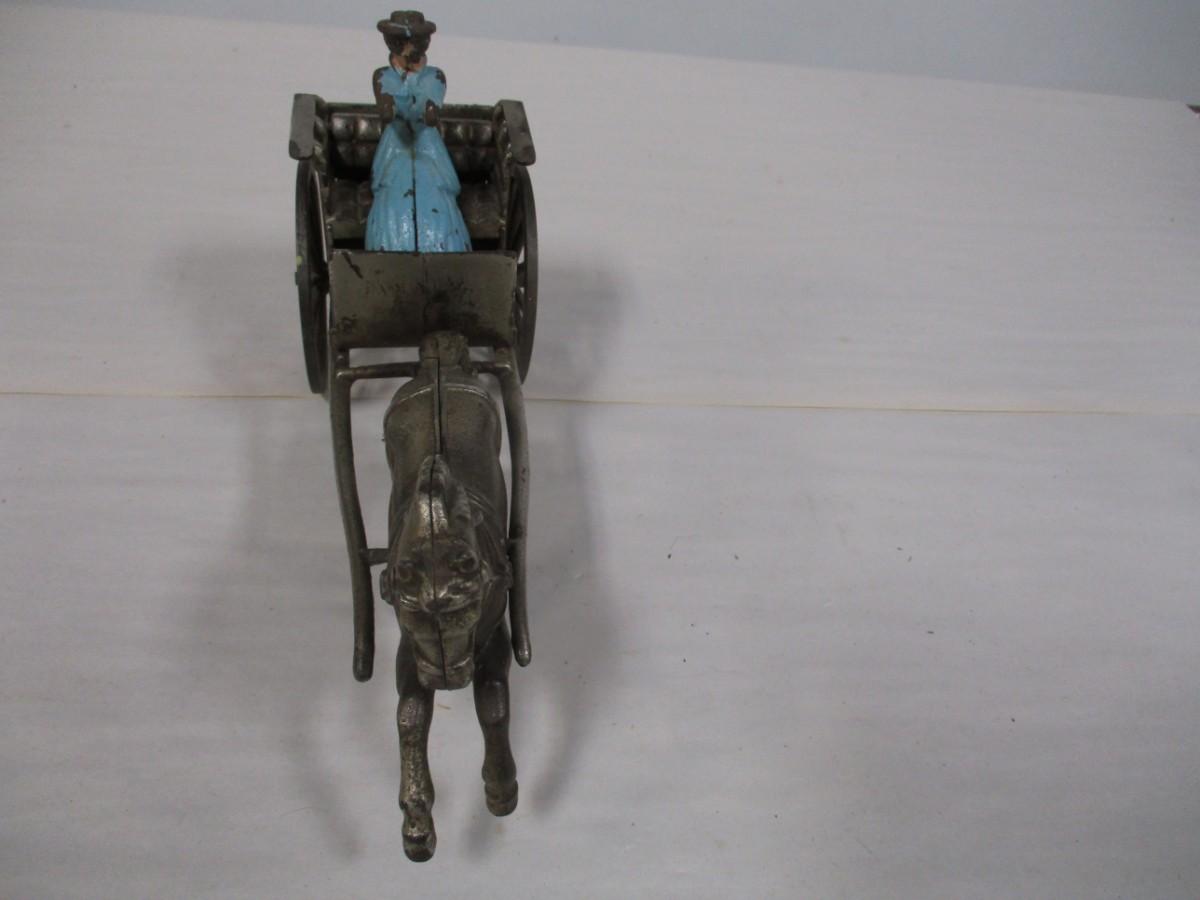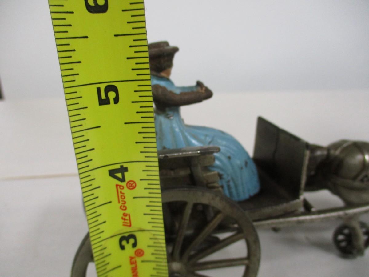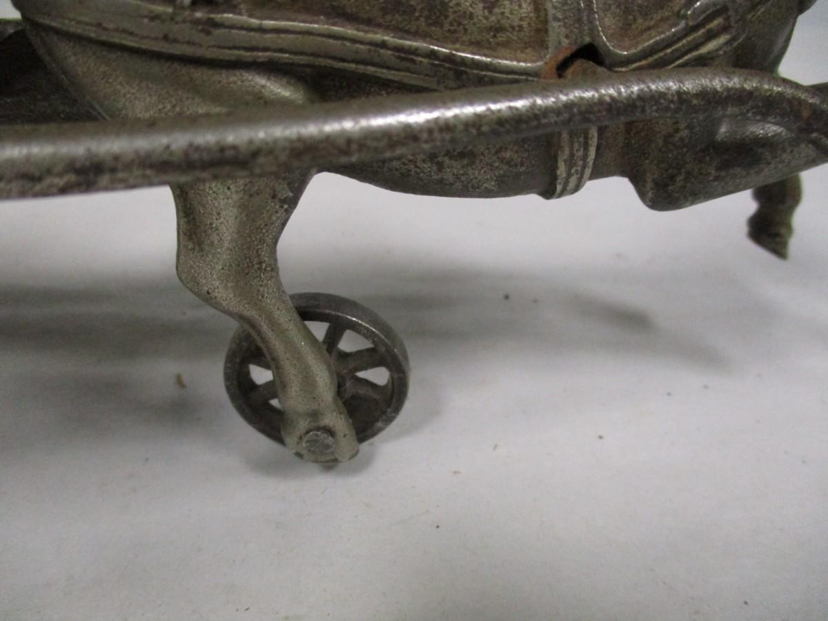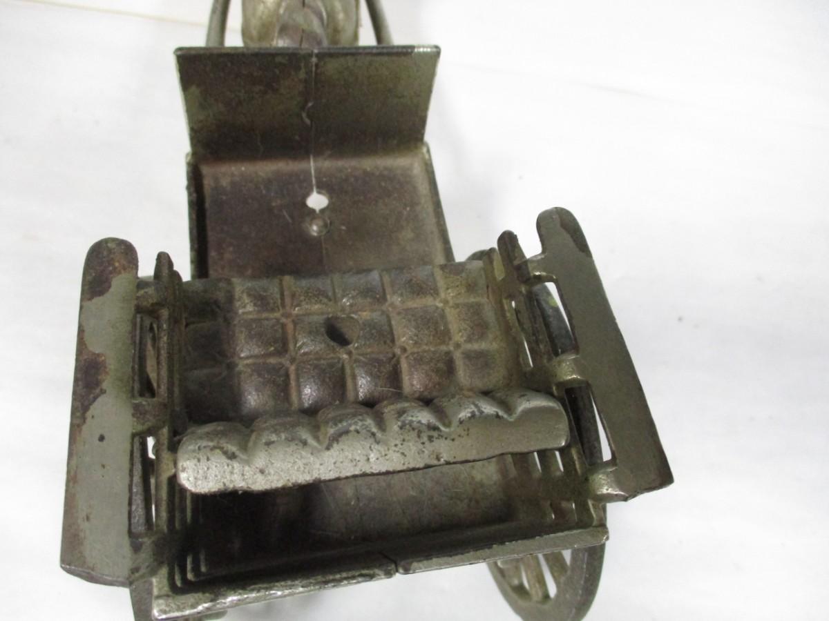 Vintage Shimer & Sons Nickel Plated Horse Drawn Wagon Pull Toy with Original Rider