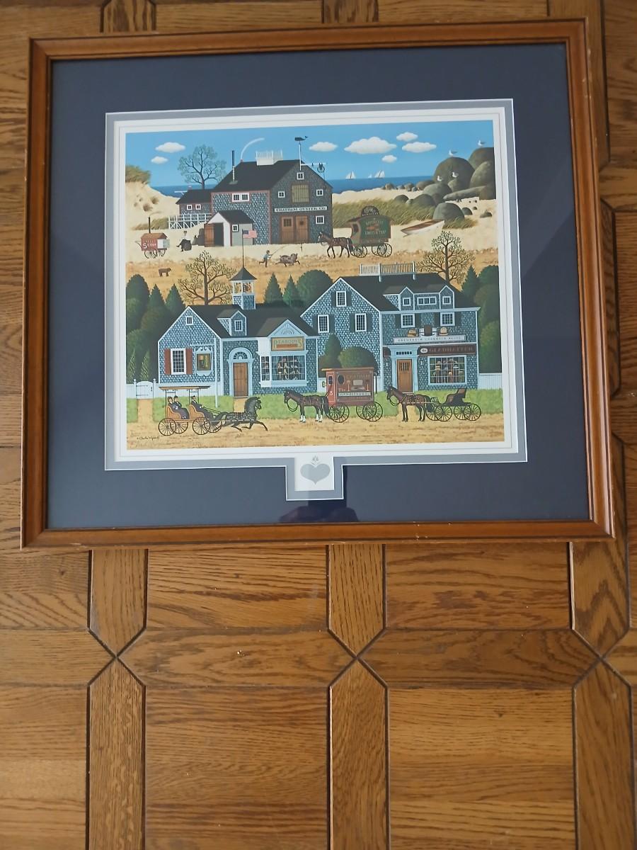 Shingled Beach Village Scene by Charles Wysocki signed & numbered in glazed frame