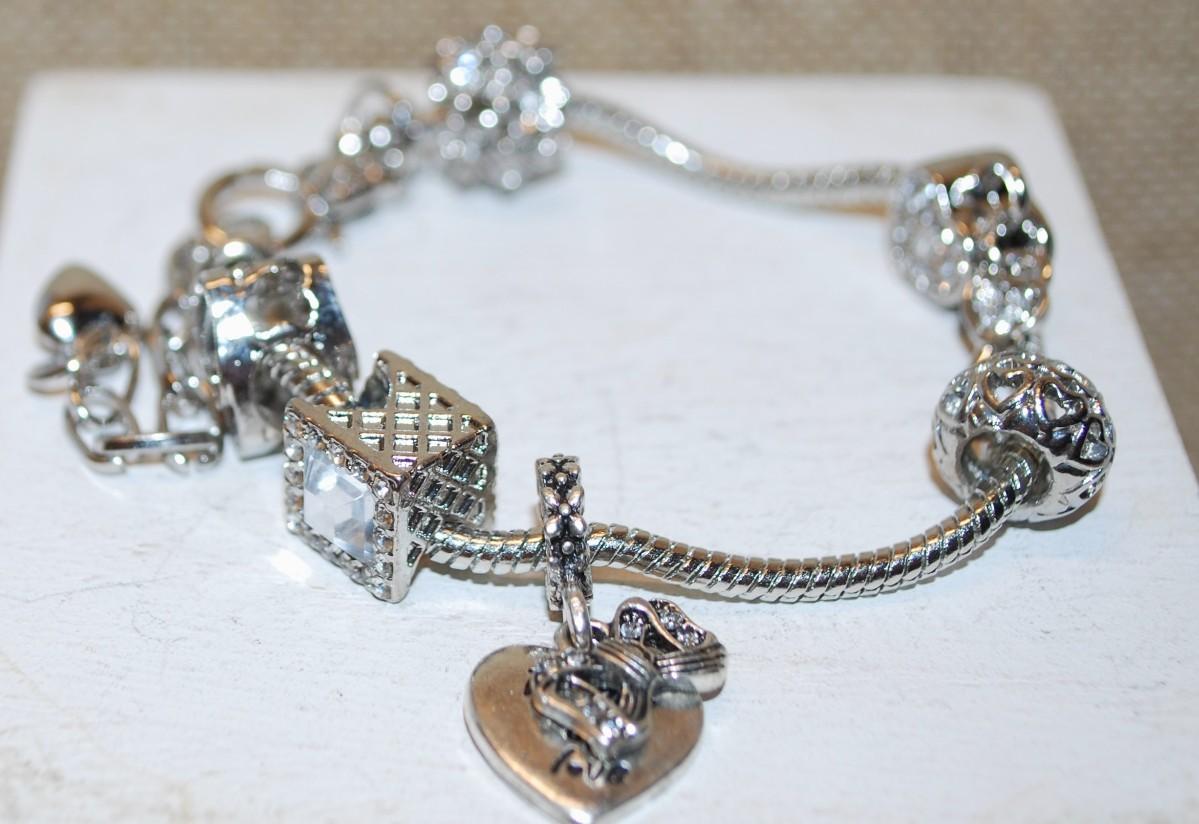 Shiny & Reflective Charm Bracelet with Boxes, Locket, Hearts & Baubles 2¼" Diameter