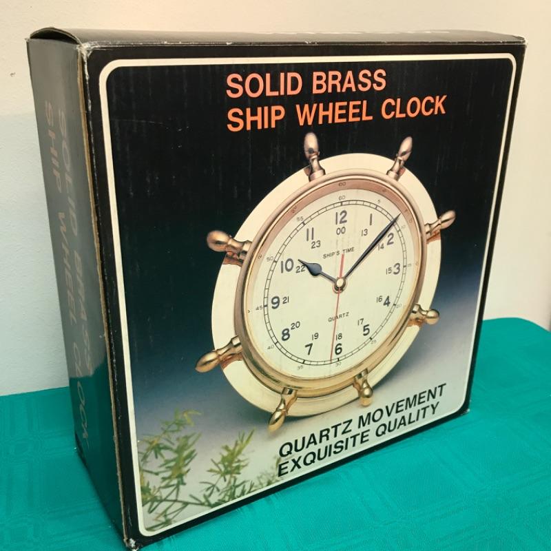 Ships Wheel Nautical Themed Clock Solid Brass BNIB