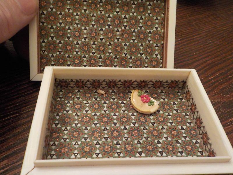 Made in Iran, A wooden box in lay of brass, wood, camel bone and the sz. 6.5 x 4" x 1.3.