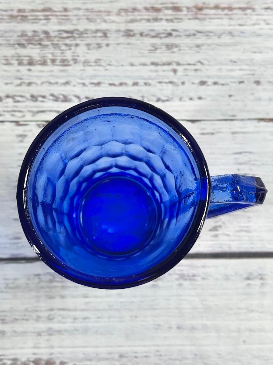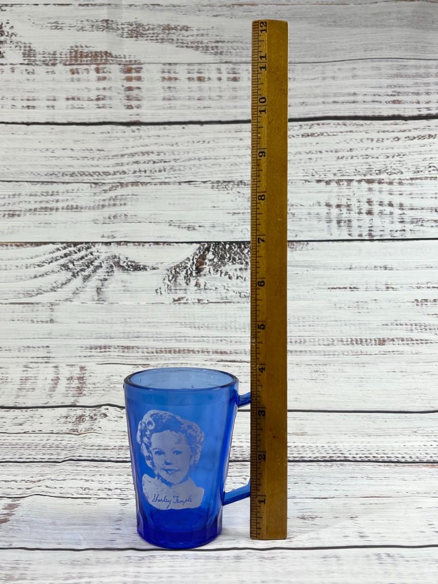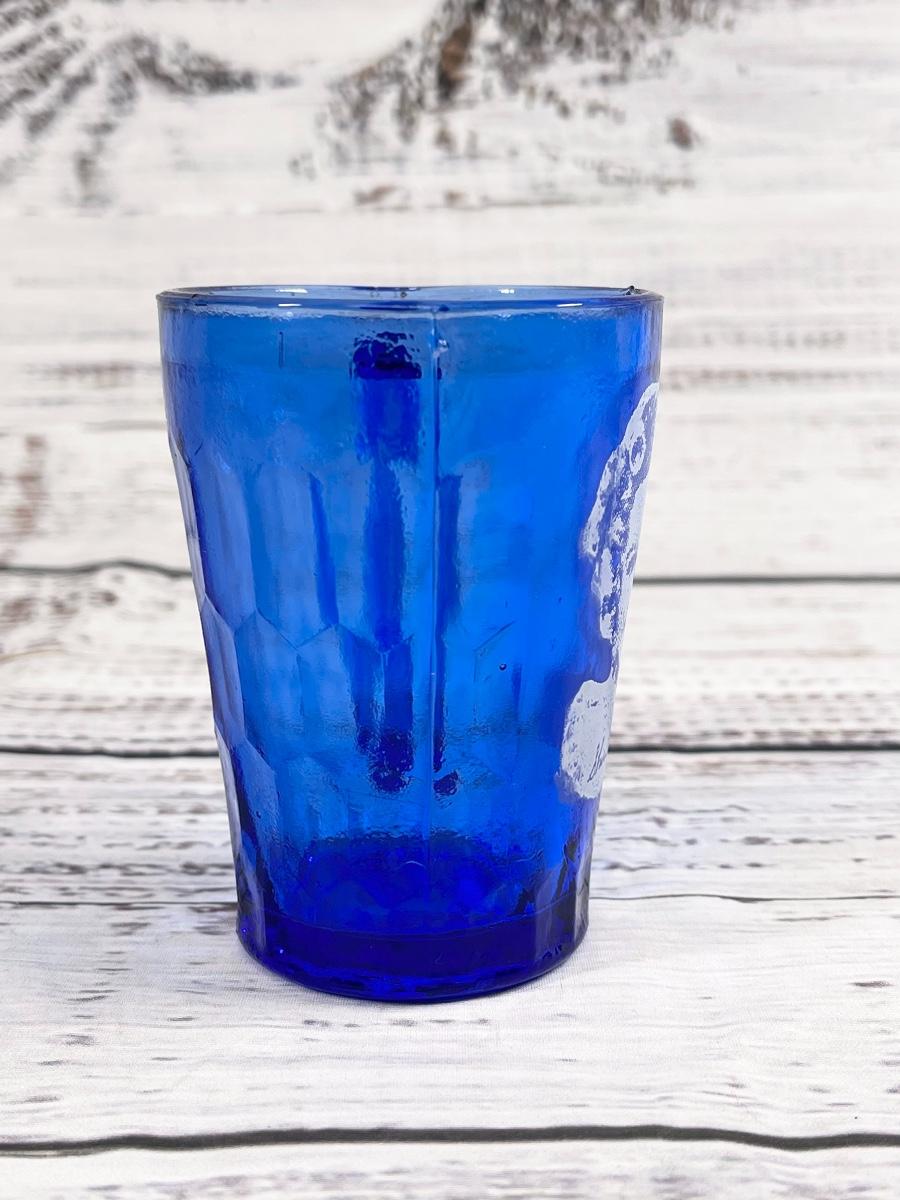 Has some air bubbles. Good condition. Glass cup is about 4” tall.