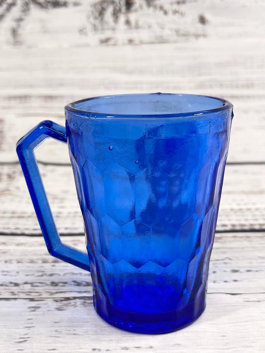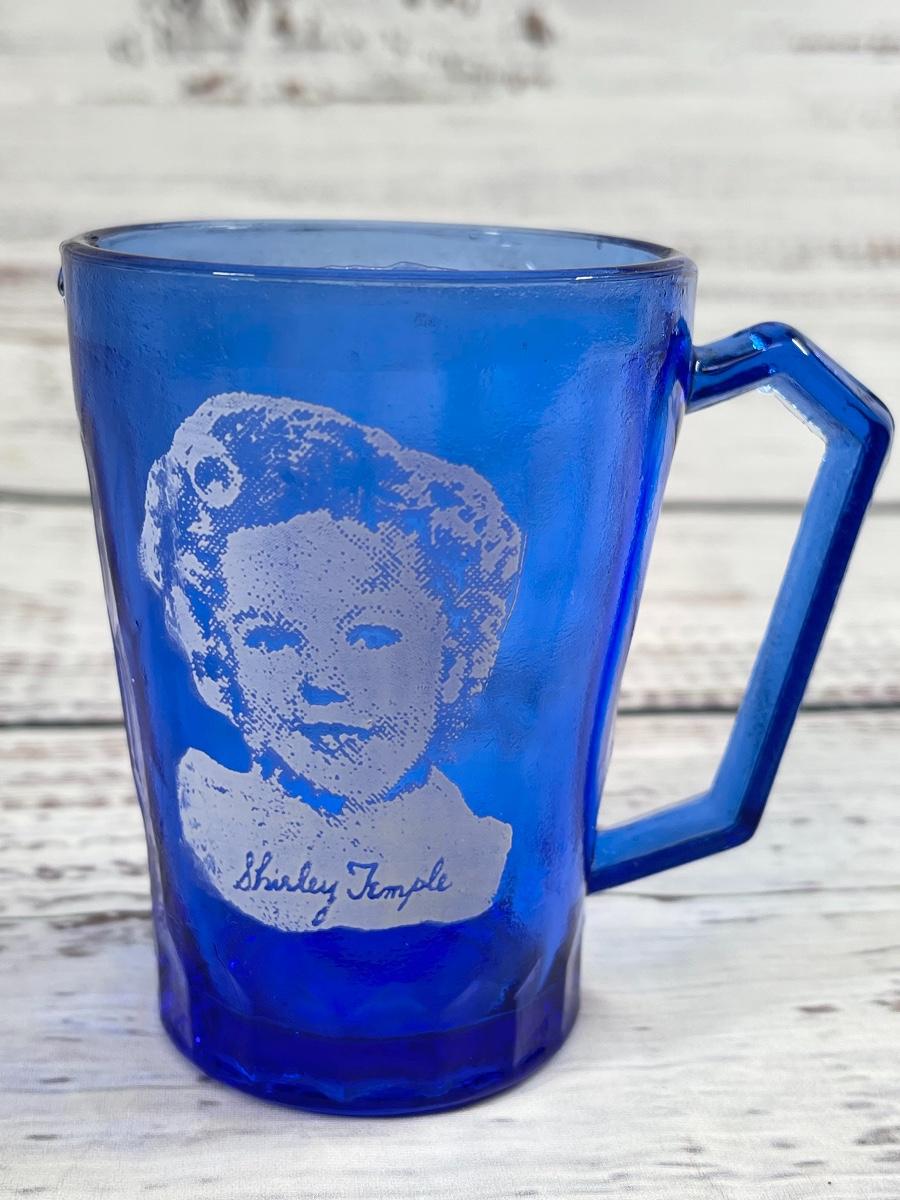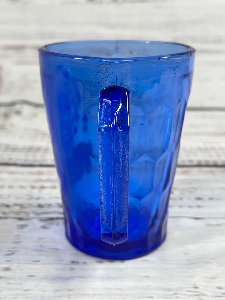 Has some air bubbles. Good condition. Glass cup is about 4” tall.
