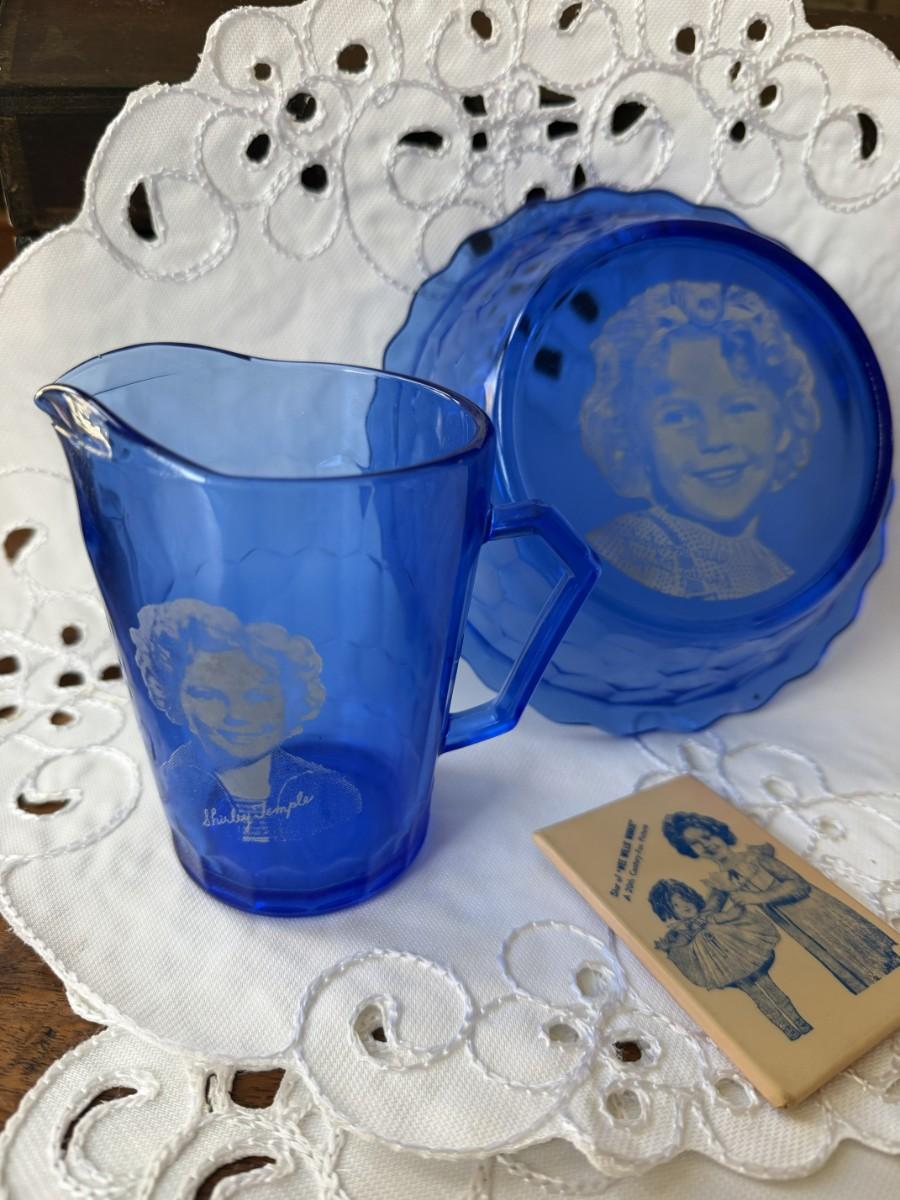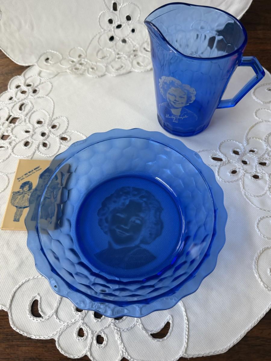 Shirley Temple Cobalt Blue Atlas Bowl and Creamer