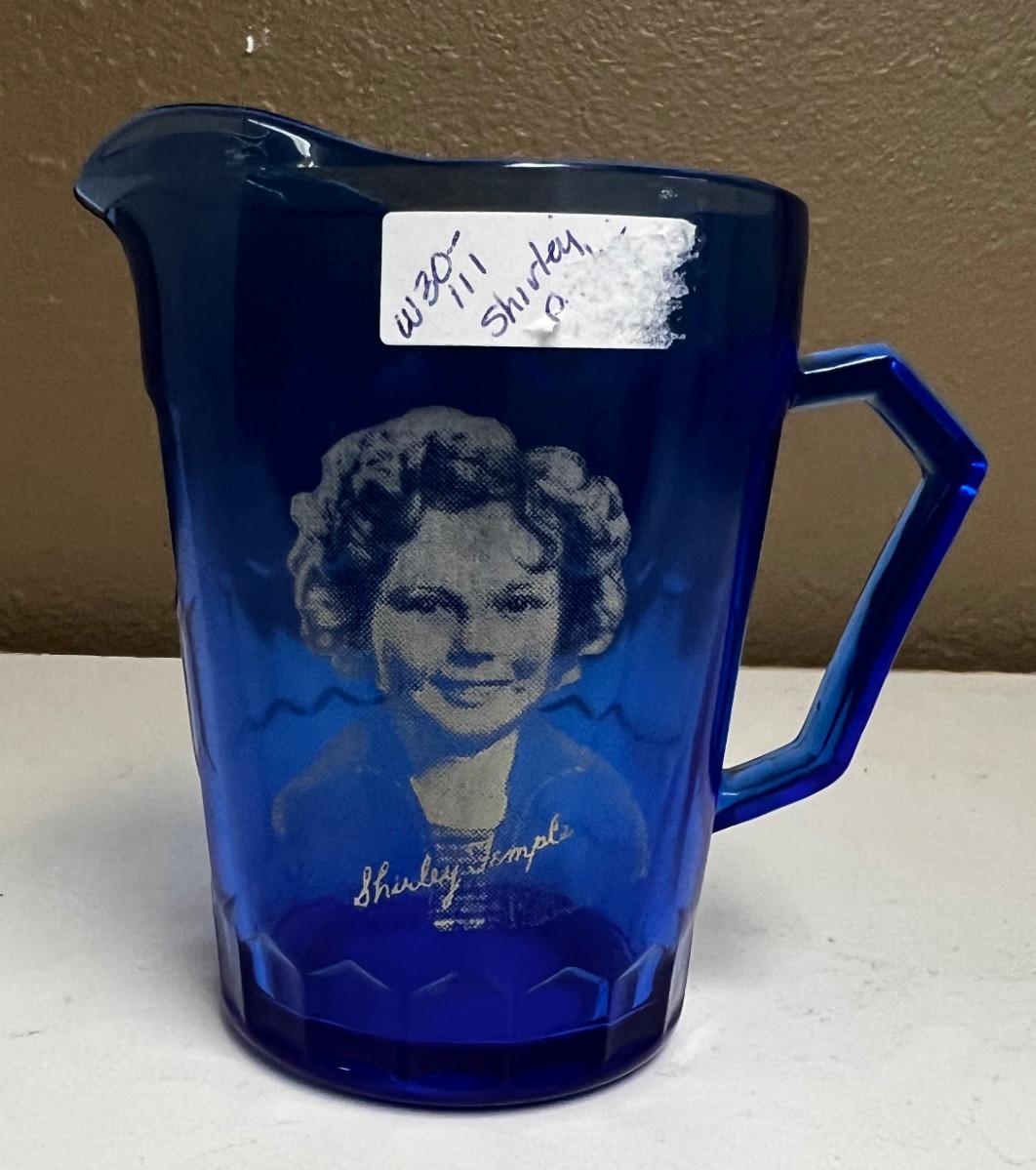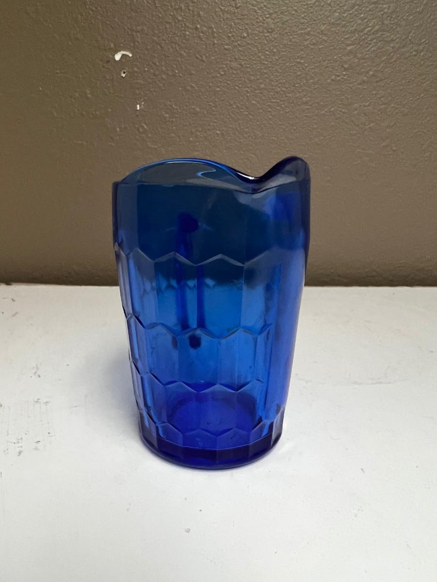 Shirley Temple Cream Pitcher, Blue Glass